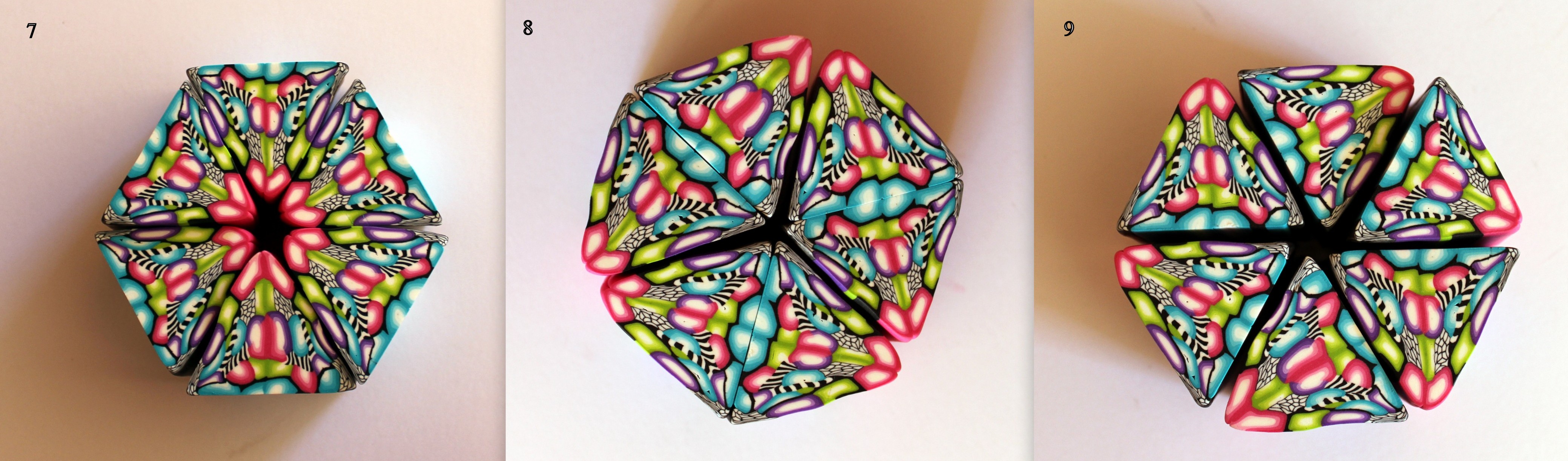 Réassemblez les cubes tranchés pour former des rayures en prenant garde à placer l’angle noir au centre comme sur la photo 3.