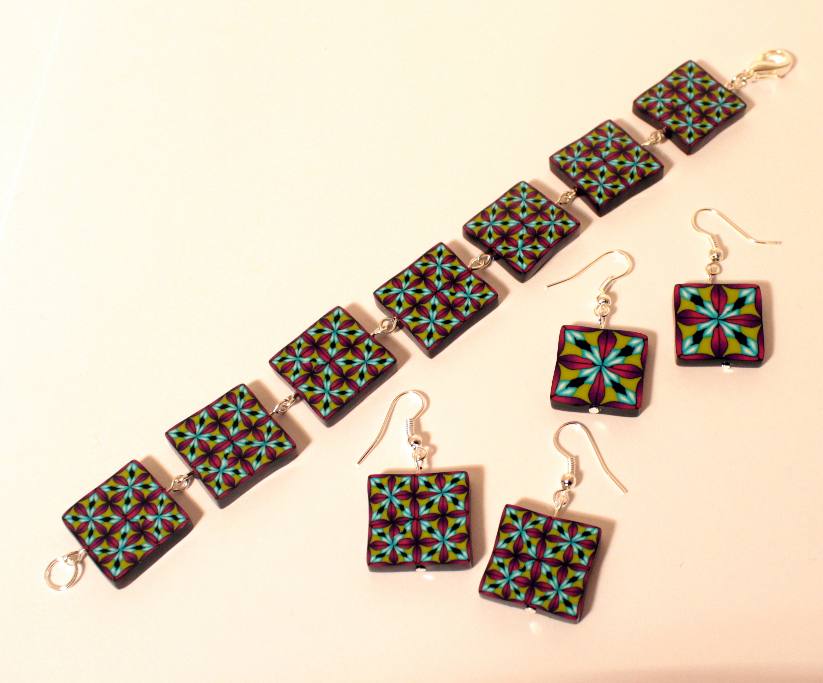 Comment ça, vous vous ennuyez un peu ? Vous ne savez pas quoi fimoter pour Noël ? Bon, d’accooooooord, je vous donne un nouveau p’tit tuto qui fait son effet ! Aujourd’hui, dévoilons les étapes qui permettent de réaliser une cane mosaïque comme celle qui m’a permis de fabriquer ces bijoux :