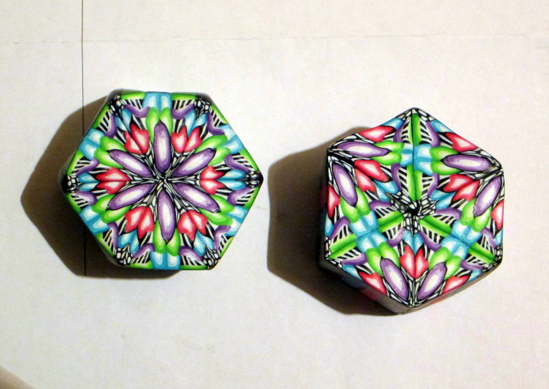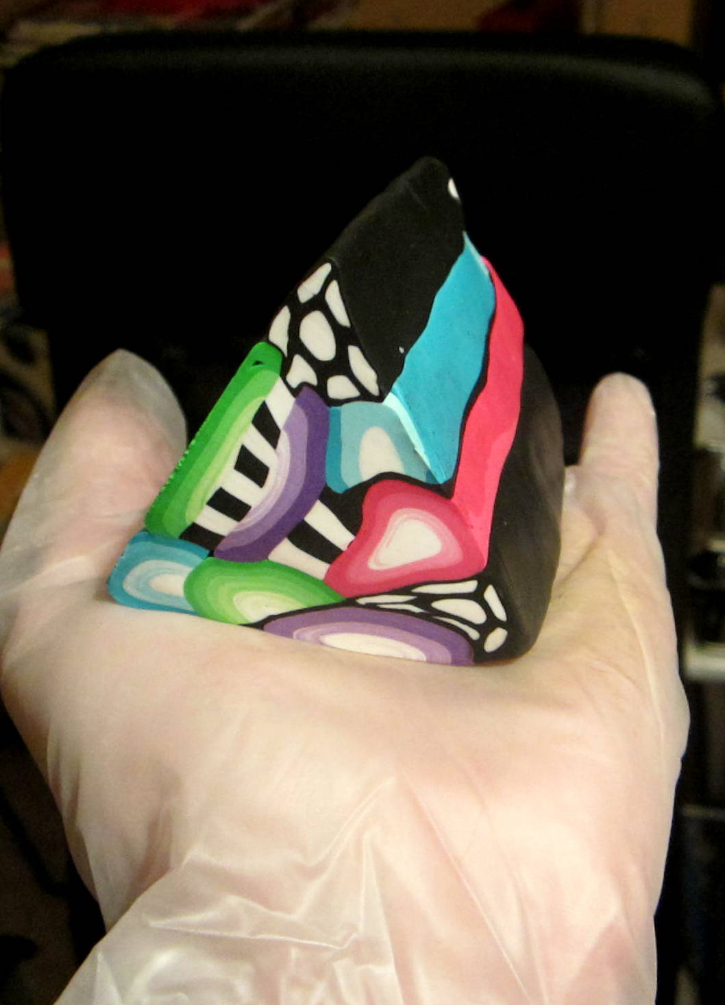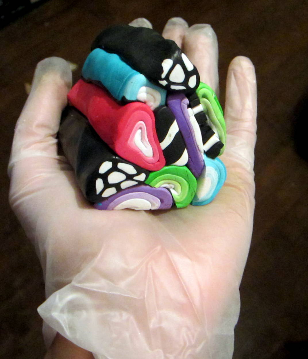 Cela dit, j’ai retrouvé ces photos en faisant du rangement dans mon pc. Je sais que vous connaissez la cane kaléidoscope mais ça fait toujours plaisir d’en voir une se réaliser. Alors voici les vielles photos de la toute première cane kaléidoscope que j’ai réalisée il y a plus d’un an à partir de chutes de canes dégradées et de canes noires et blanches.