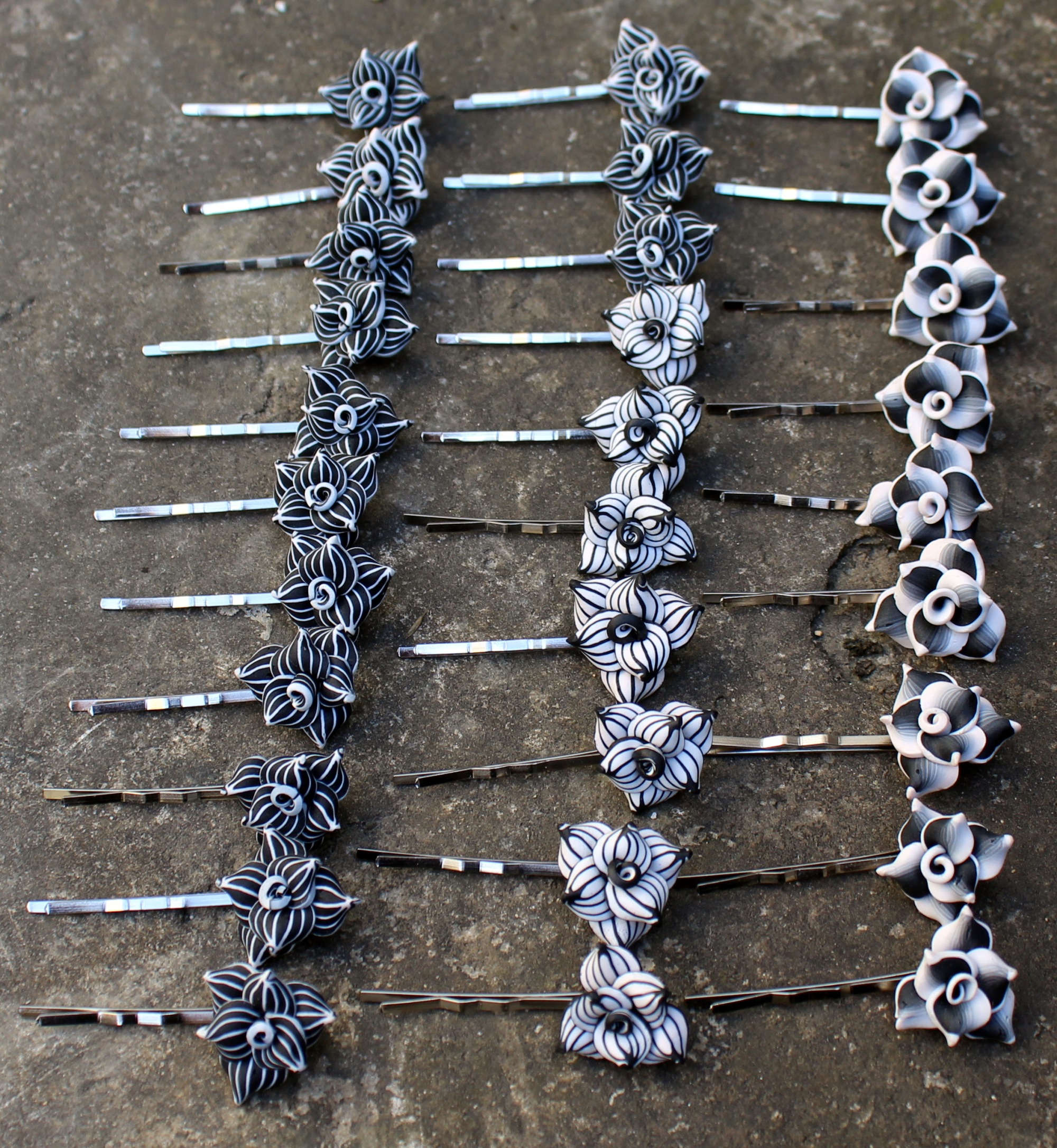 Je sais que la météo n’est pas vraiment clémente avec les estivaliers mais la période actuelle reste celle des mariages. Mes petites fleurs toutes simples en volume ont plu à de nombreuses personnes, si bien qu’on m’en a commandé une centaine en noir et blanc pour un mariage. Comme vous pouvez le constater, il m’en reste à faire…