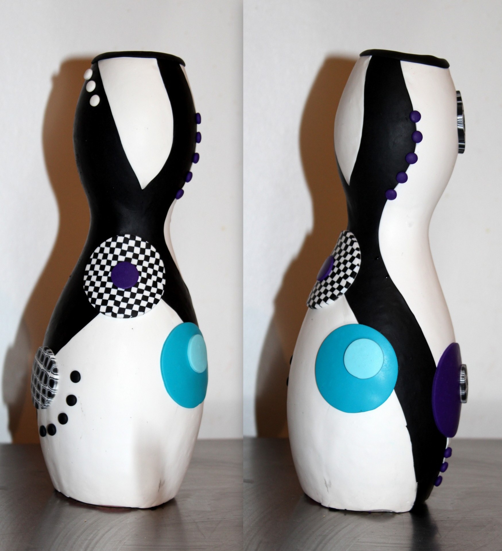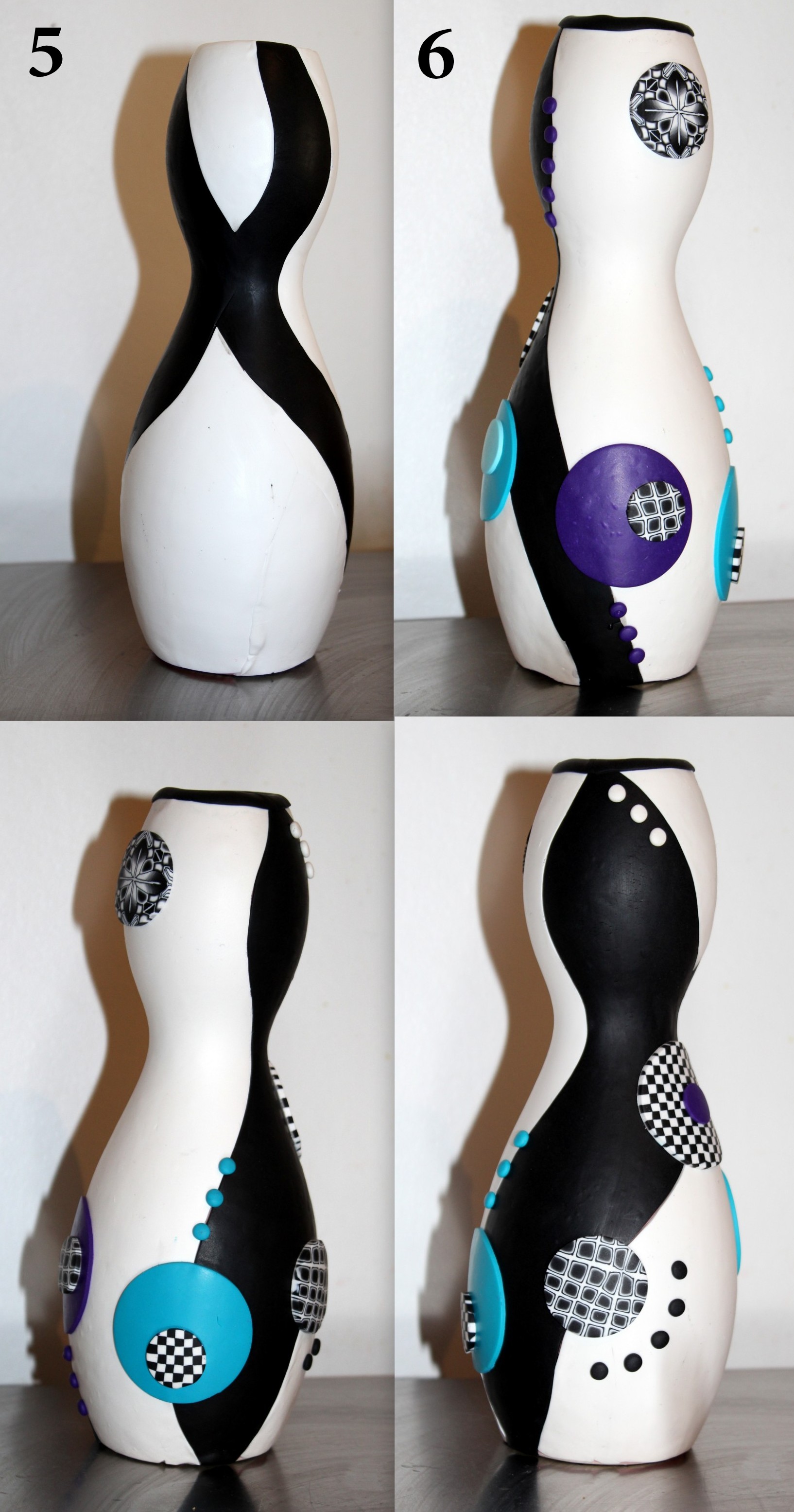 Et voici les centres de table avec 3 fleurs (2 de couleurs à l’ordre des pétales inversé et une noire et blanche) :