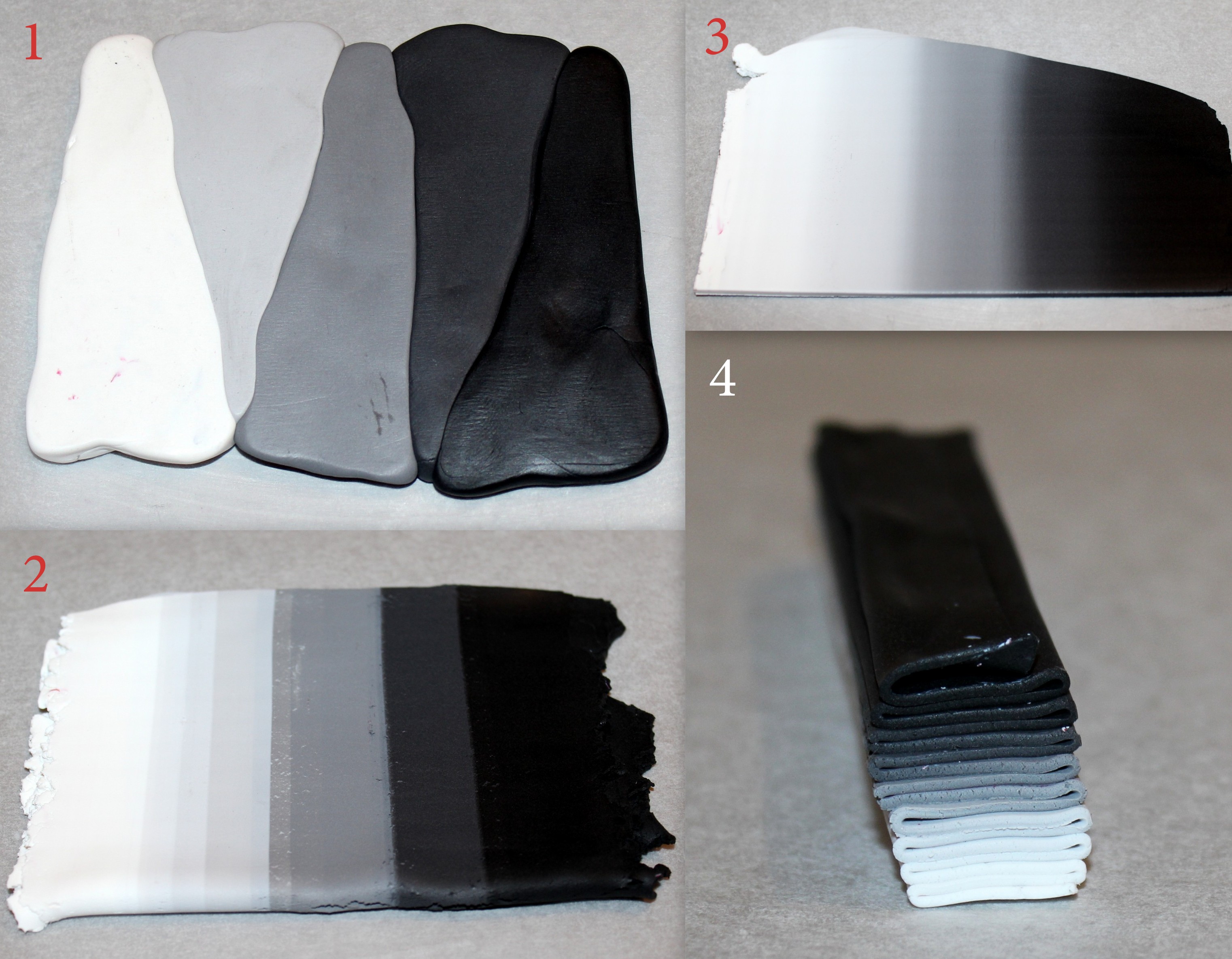 Photos 1 à 4 : Pour ne pas changer, commençons par réaliser des canes dégradées !