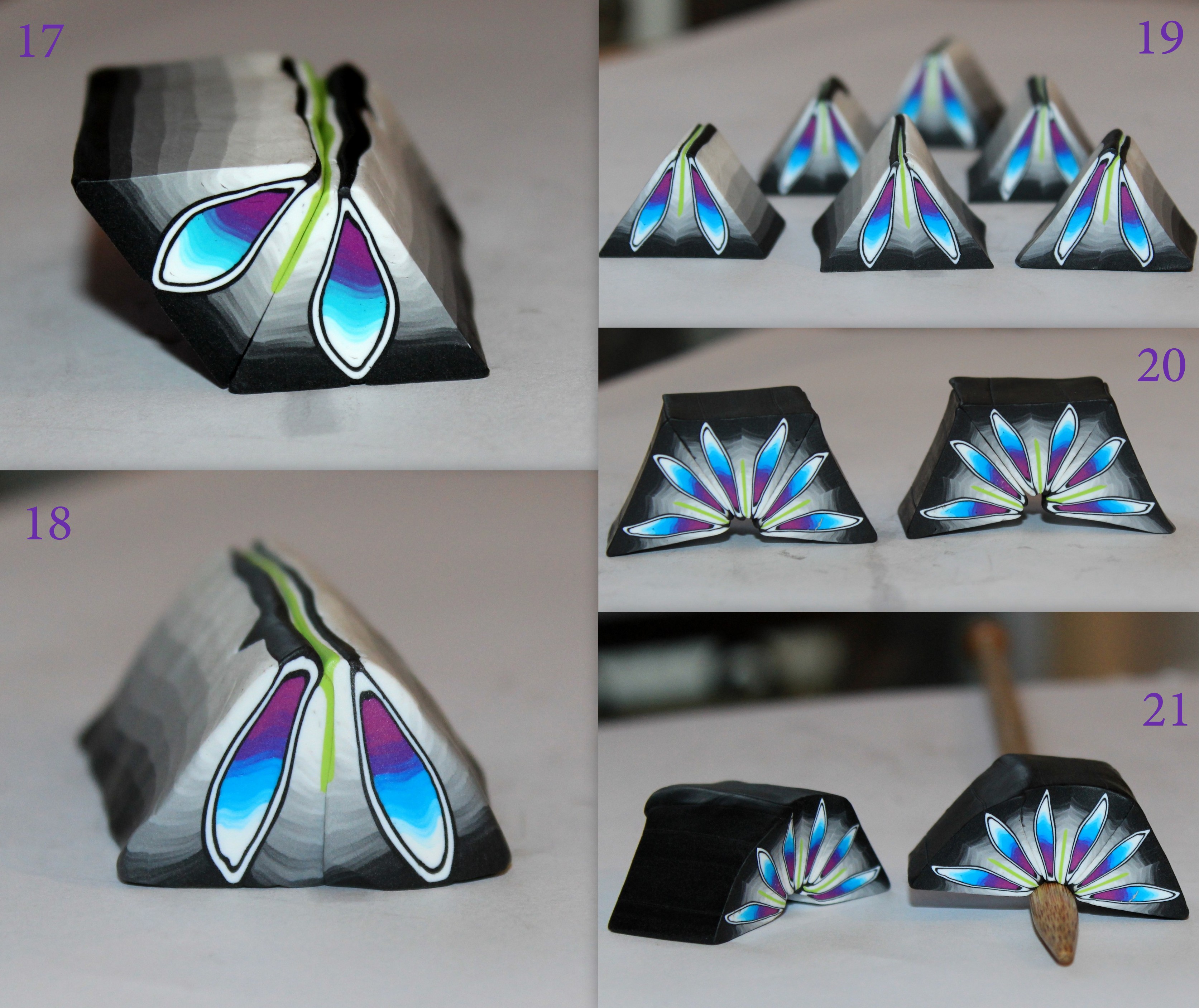 Il existe évidemment des pâtes polymères translucides colorées qui sont très bien. Oui mais voilà, moi, je ne sais jamais en avance quelle couleur je veux et quand j’ai décidé, c’est que j’en veux PLEIN ! Du coup, j’achète de la pâte translucide neutre et je la colore. ATTENTION à ne mettre qu’un TOUT PETIT PEU de pâte colorée dans votre mélange sous peine de voir votre pâte s’opacifier complètement…