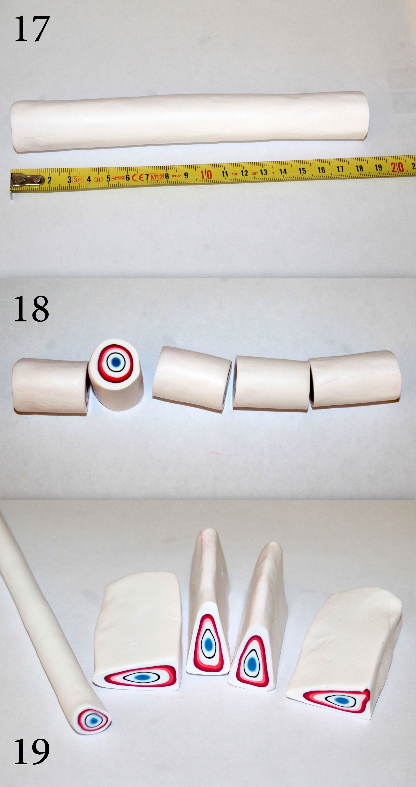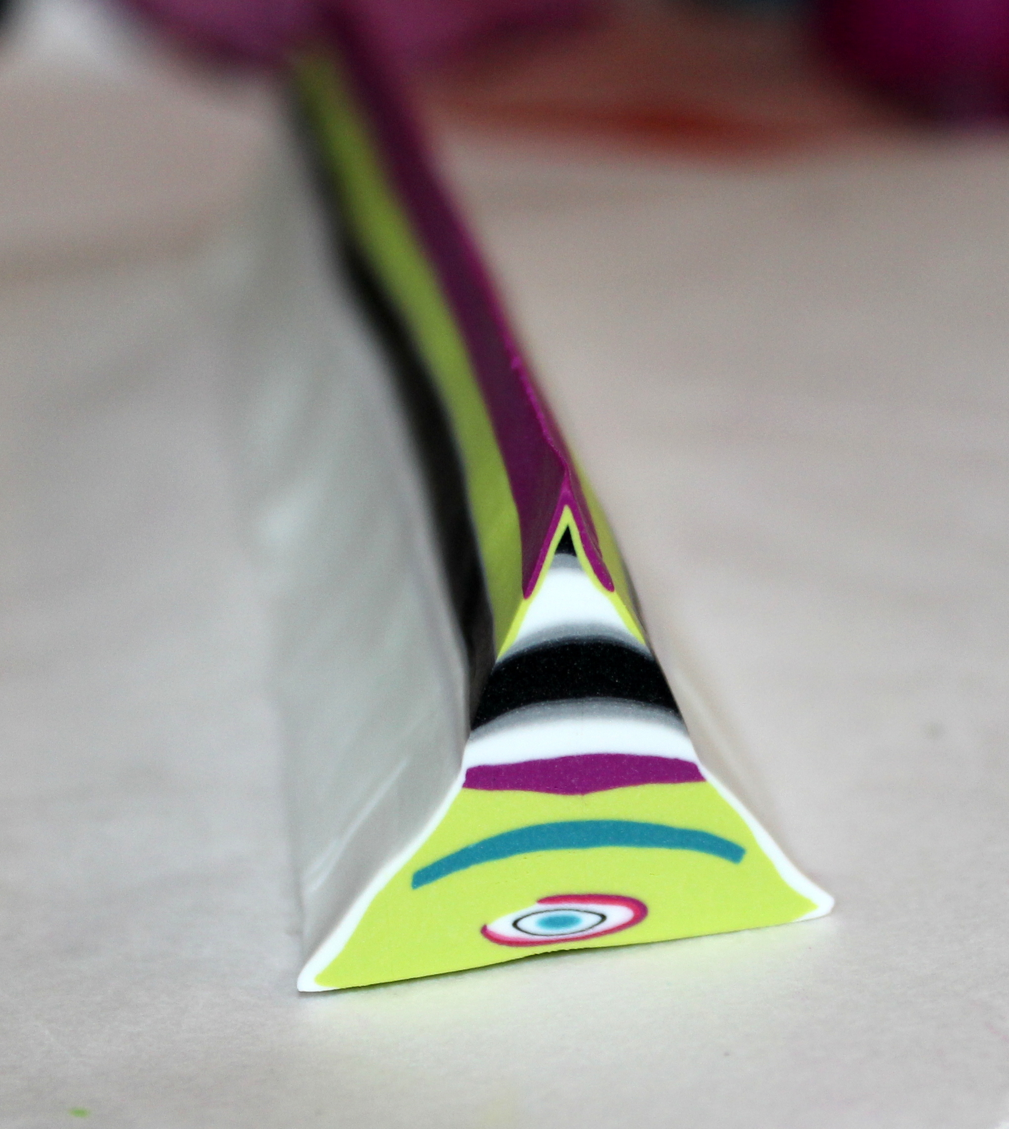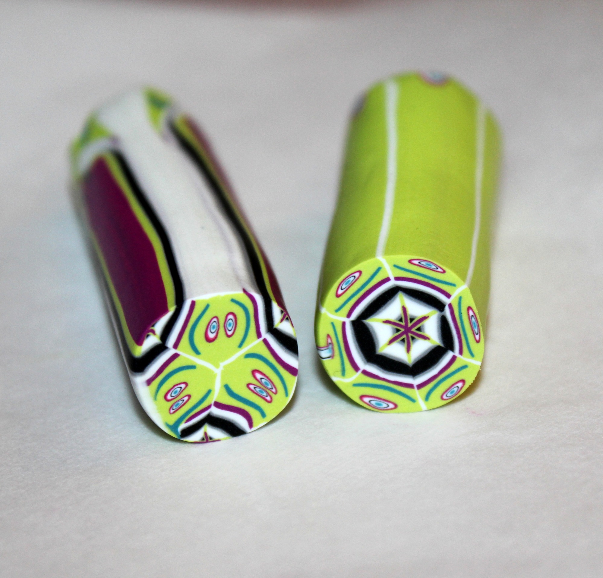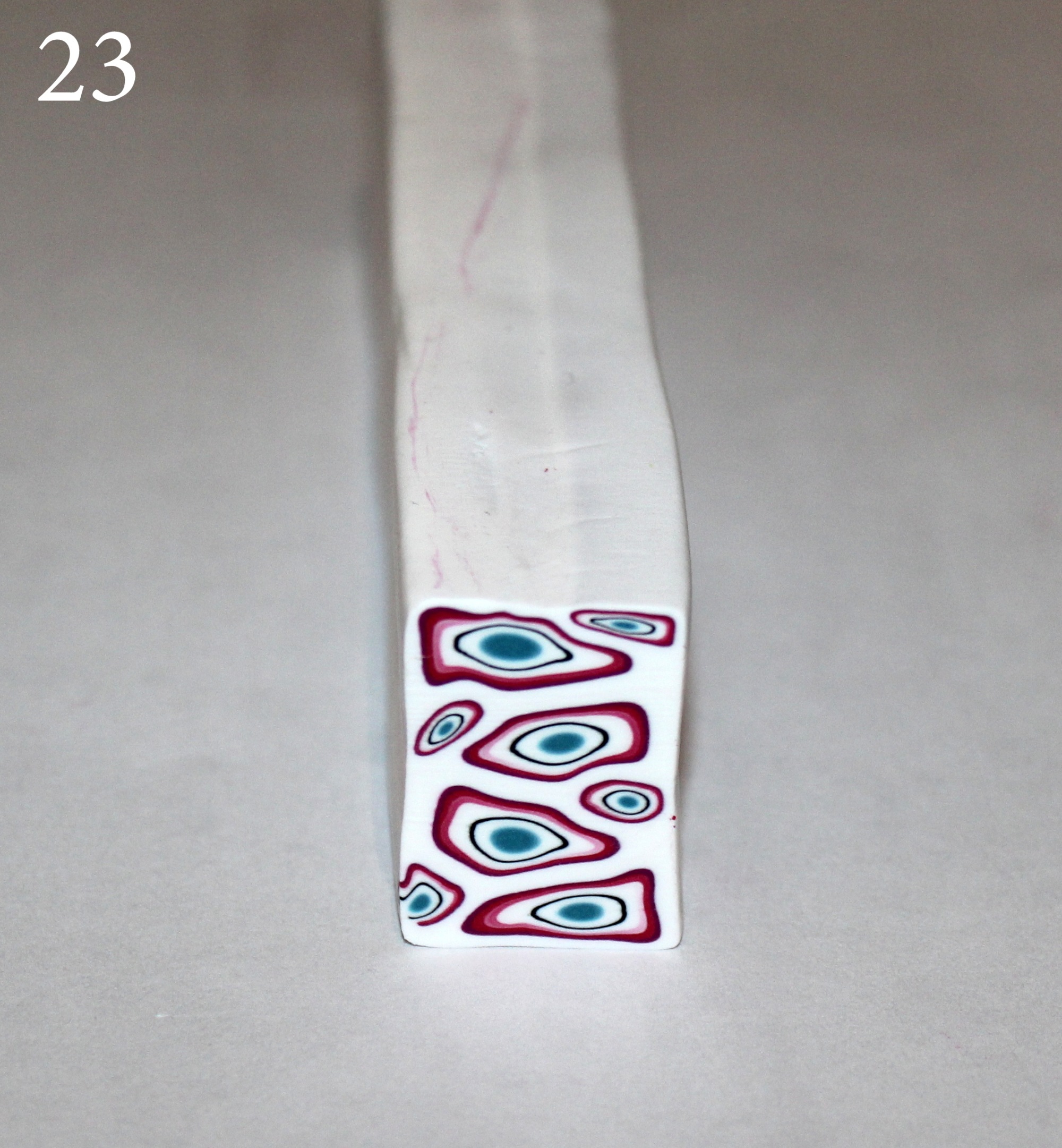 Hé hé ! Les cinq perles à « rayures » ont été faites à partir d’un morceau de la cane cible au départ de la cane ratée de la semaine dernière !