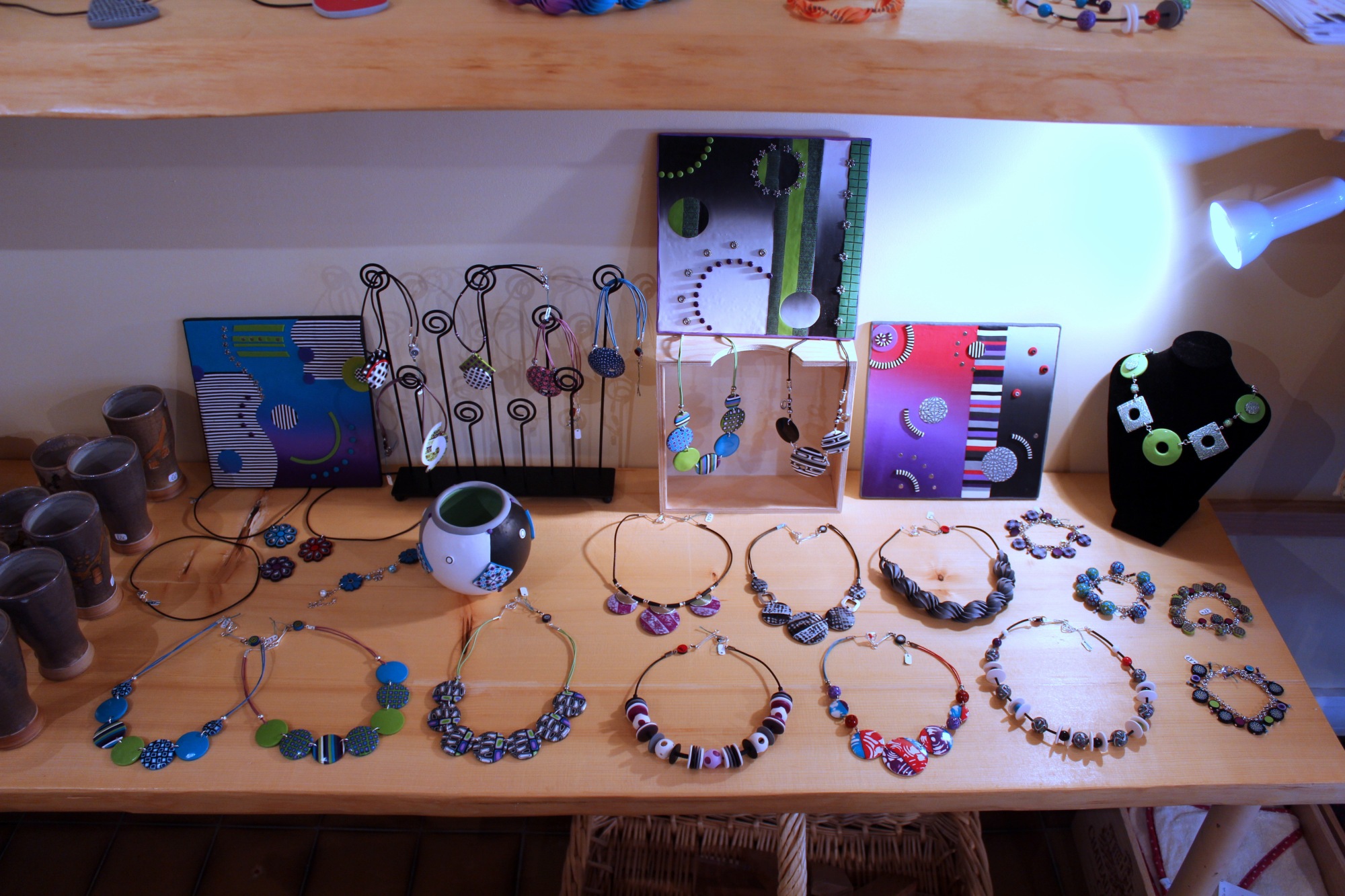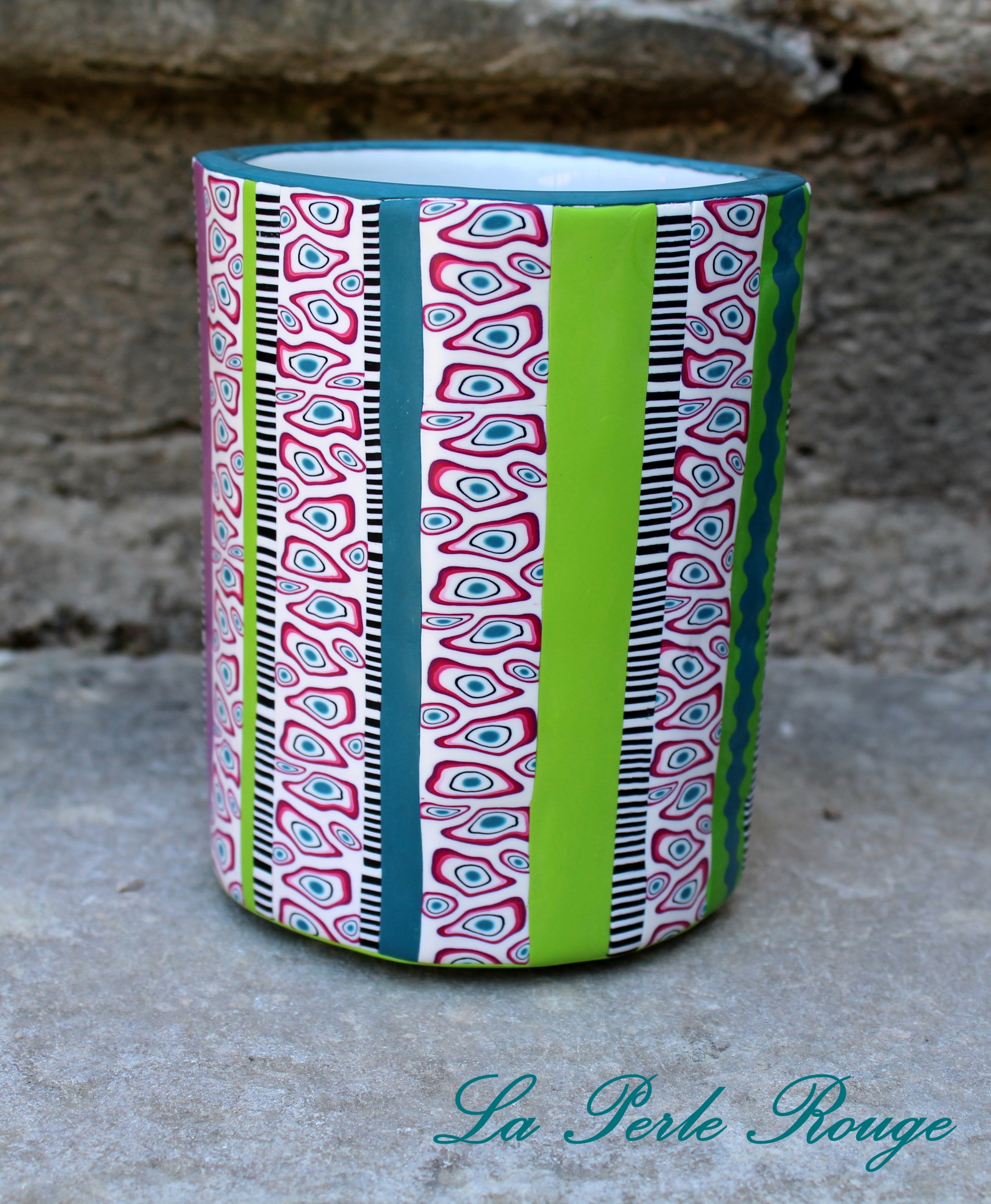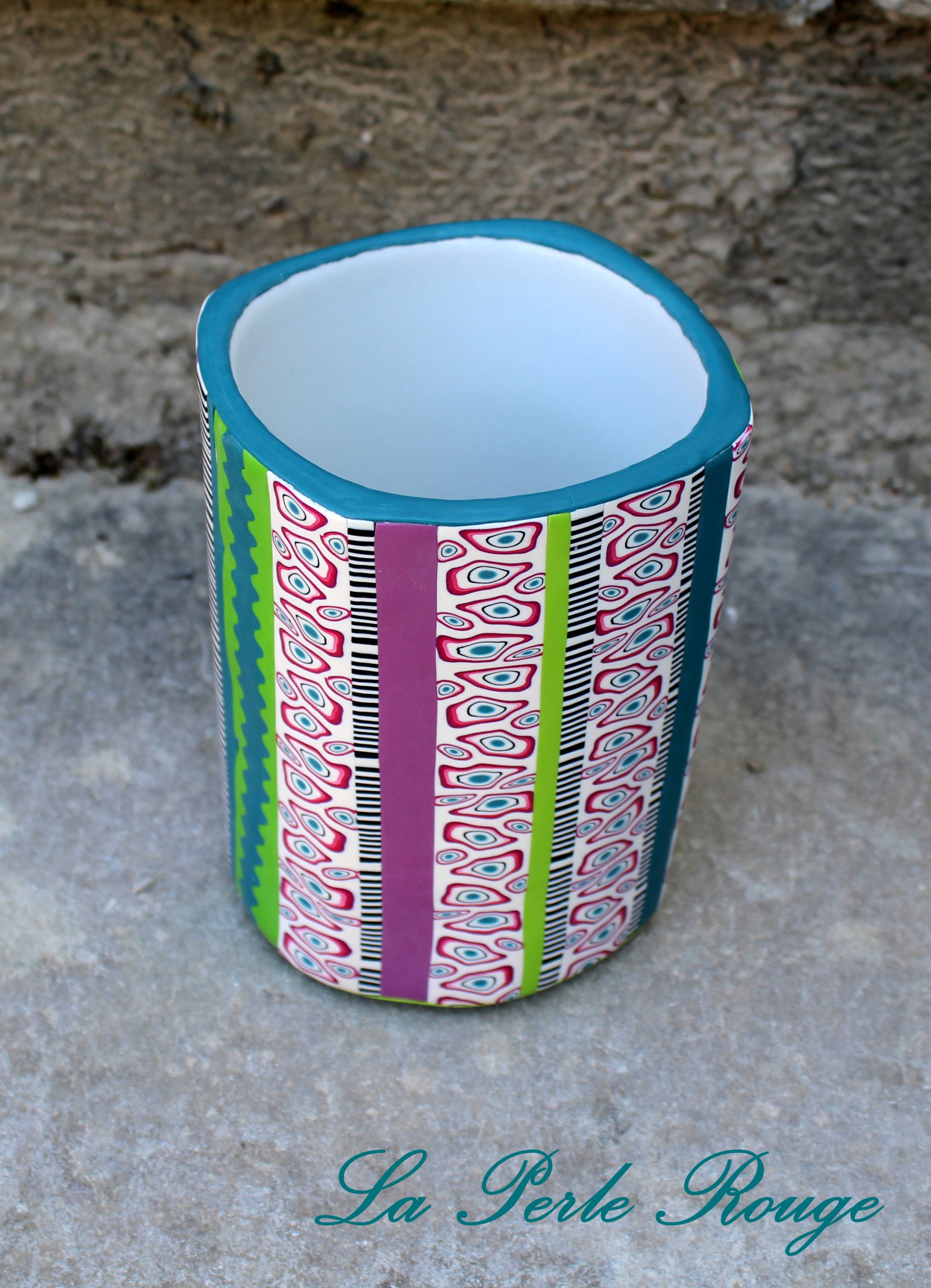 Seul point positif de la semaine dernière : j’ai ENFIN compris comment utiliser le disque de lustrage de ma Dremel (mieux vaut tard que jamais…). Du coup, ça BRILLE ! Un peu trop, peut-être, même… je crois que j’aime beaucoup le lustrage sur des pièces pleines de couleurs mais que sur des pièces noires ou blanches, je préfère l’aspect mat. En tout cas j’en ai profité pour lustrer comme il faut mes vases, et c’est vraiment chouette ! On dirait encore moins de la polymère, ça surprend tout le monde.
