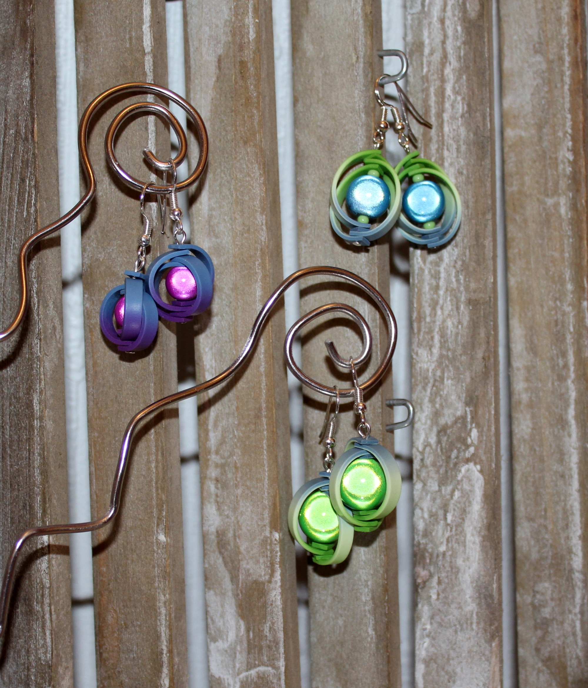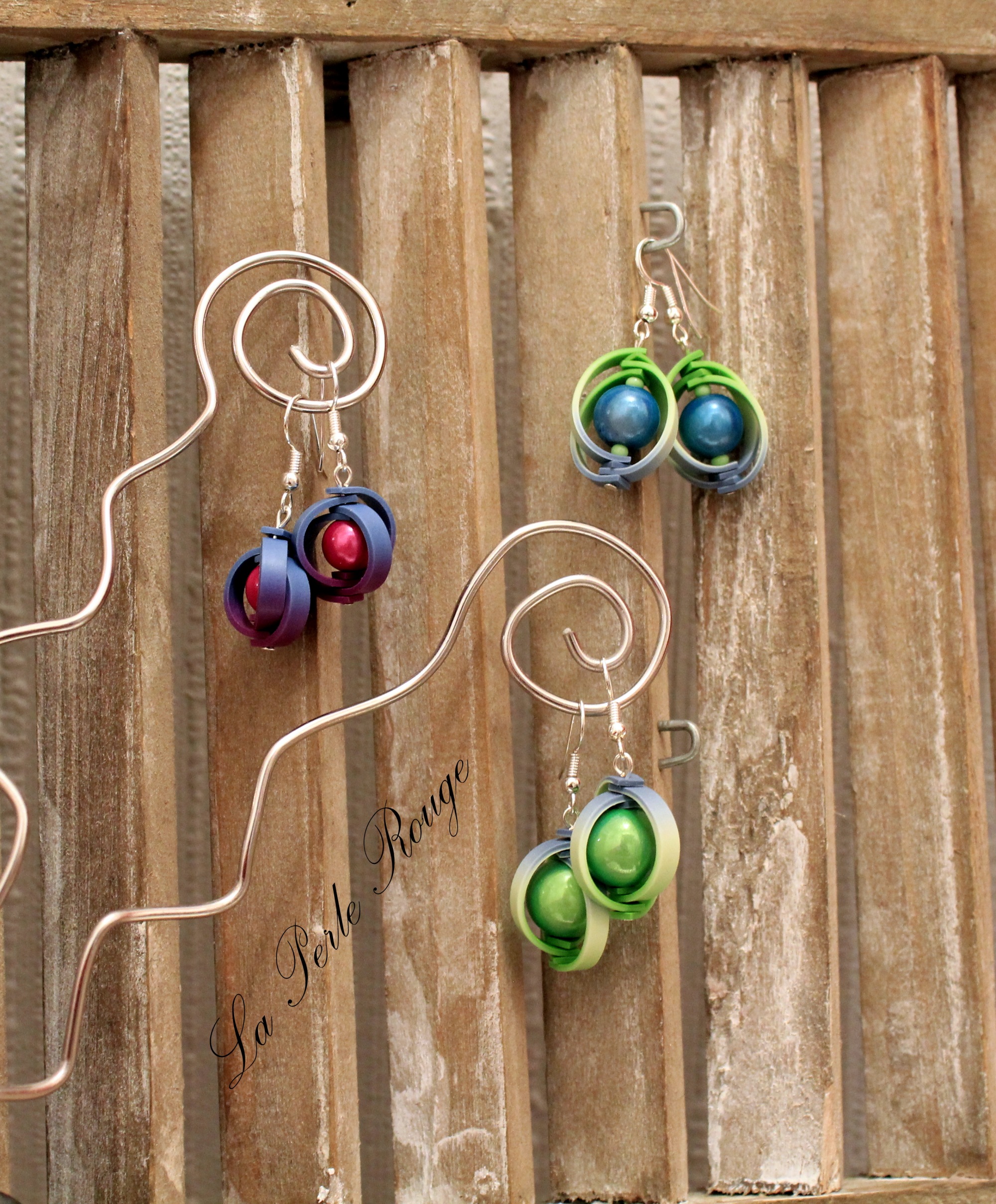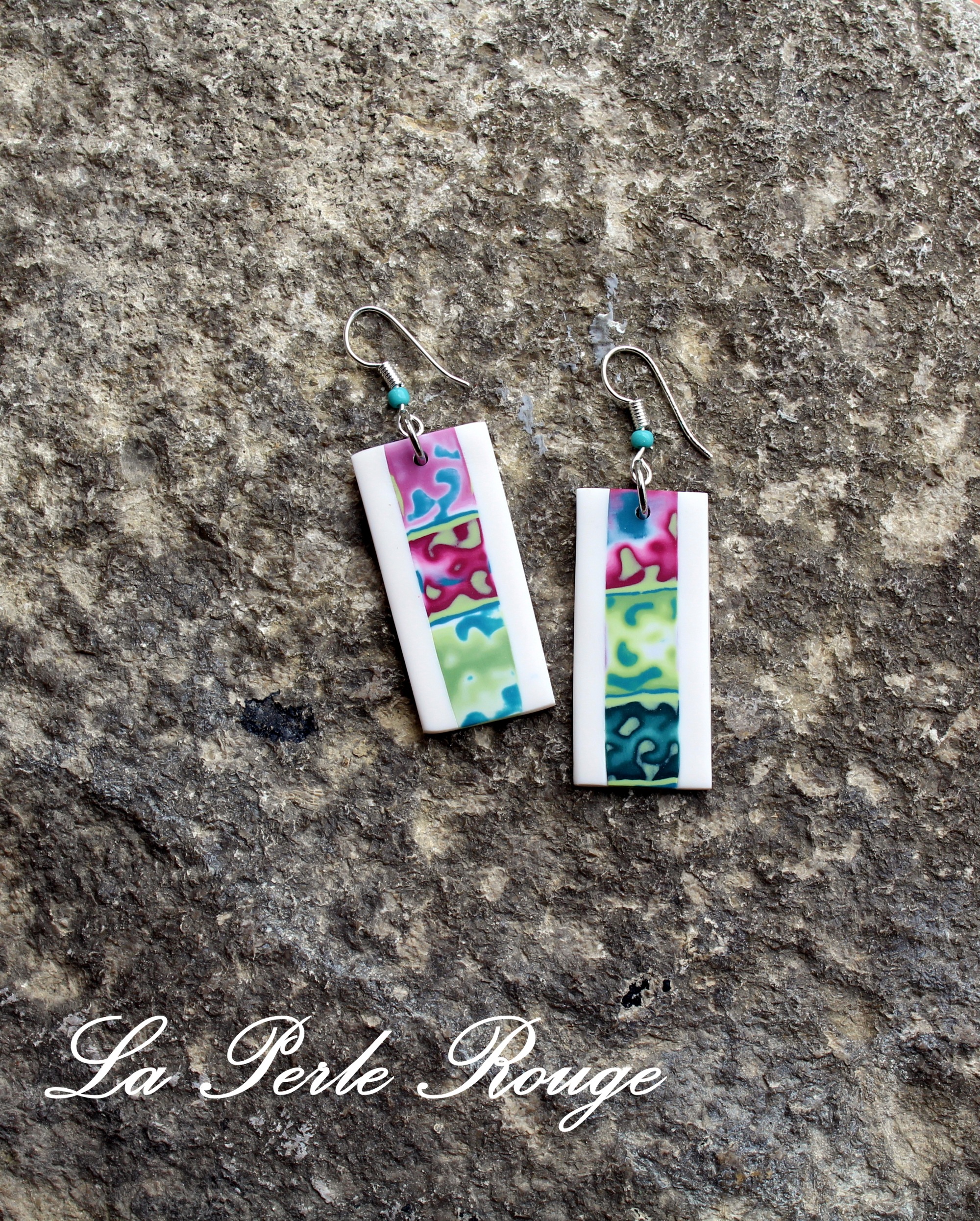 Ensuite, deux p’tites paires de boucles à partir des perles que j’avais réalisées pour un tuto et dont je ne me suis jamais servie, on se demande pourquoi, d’ailleurs…