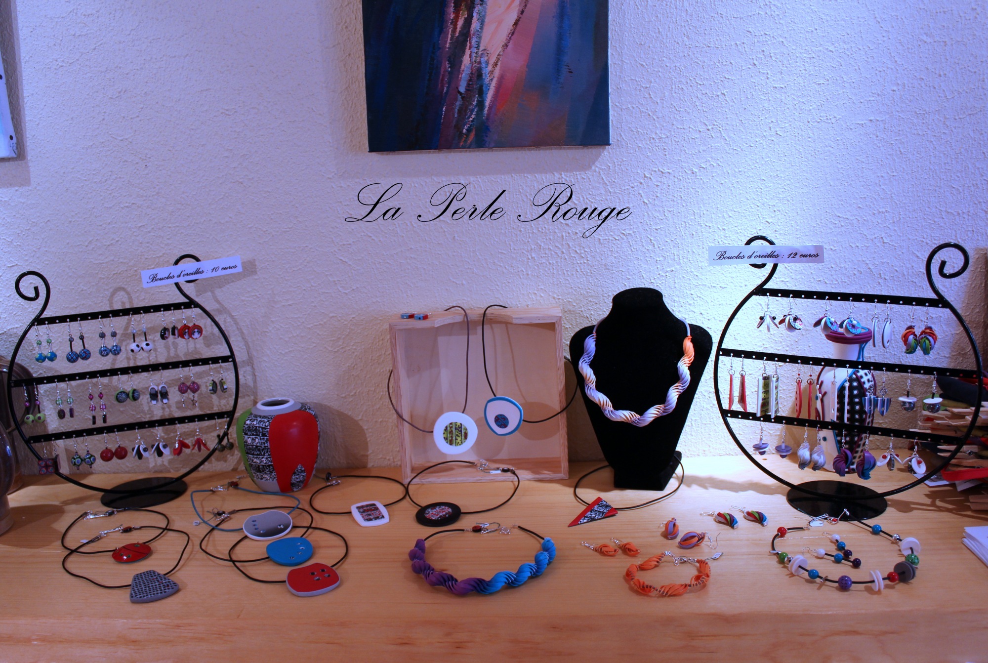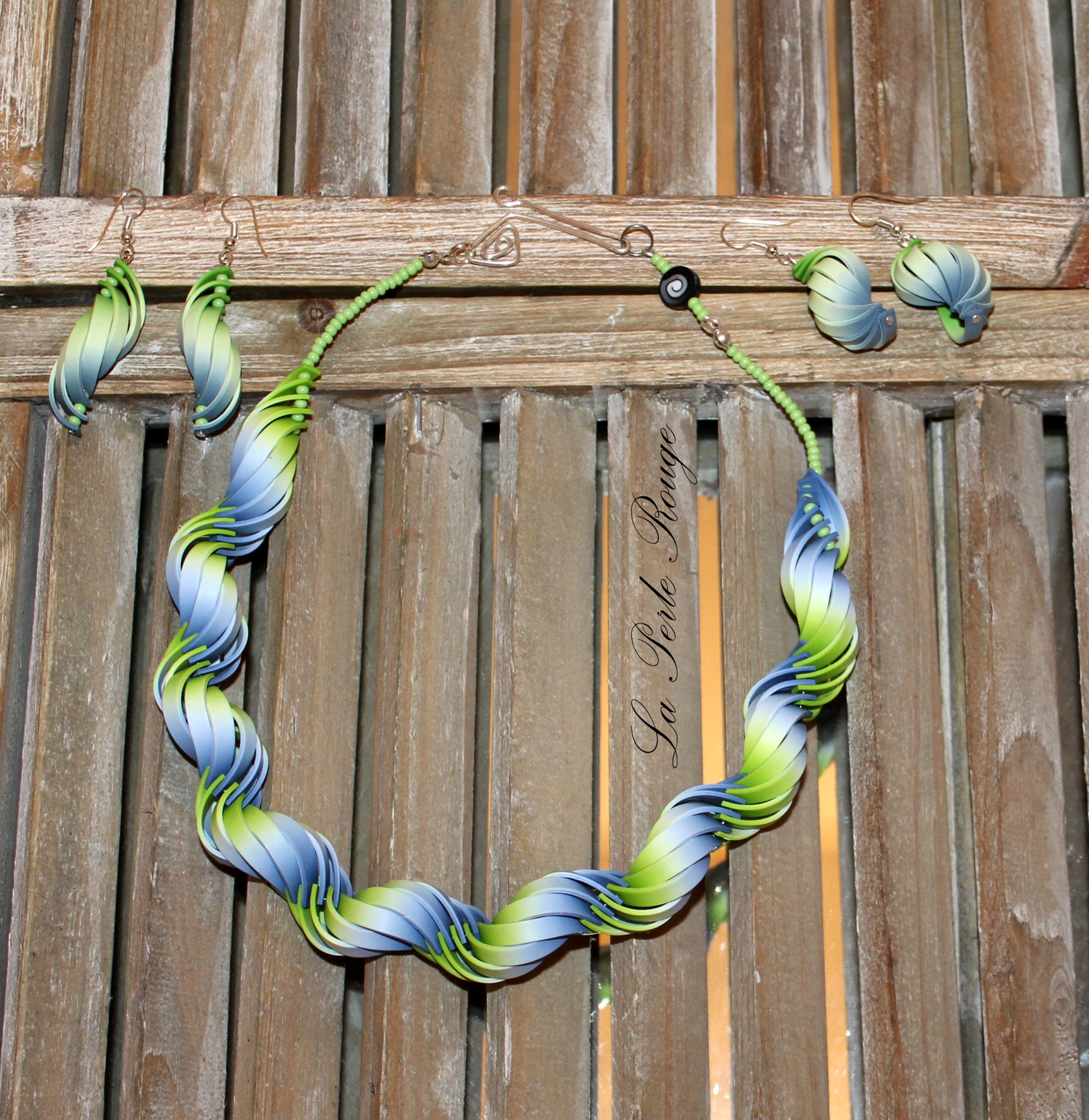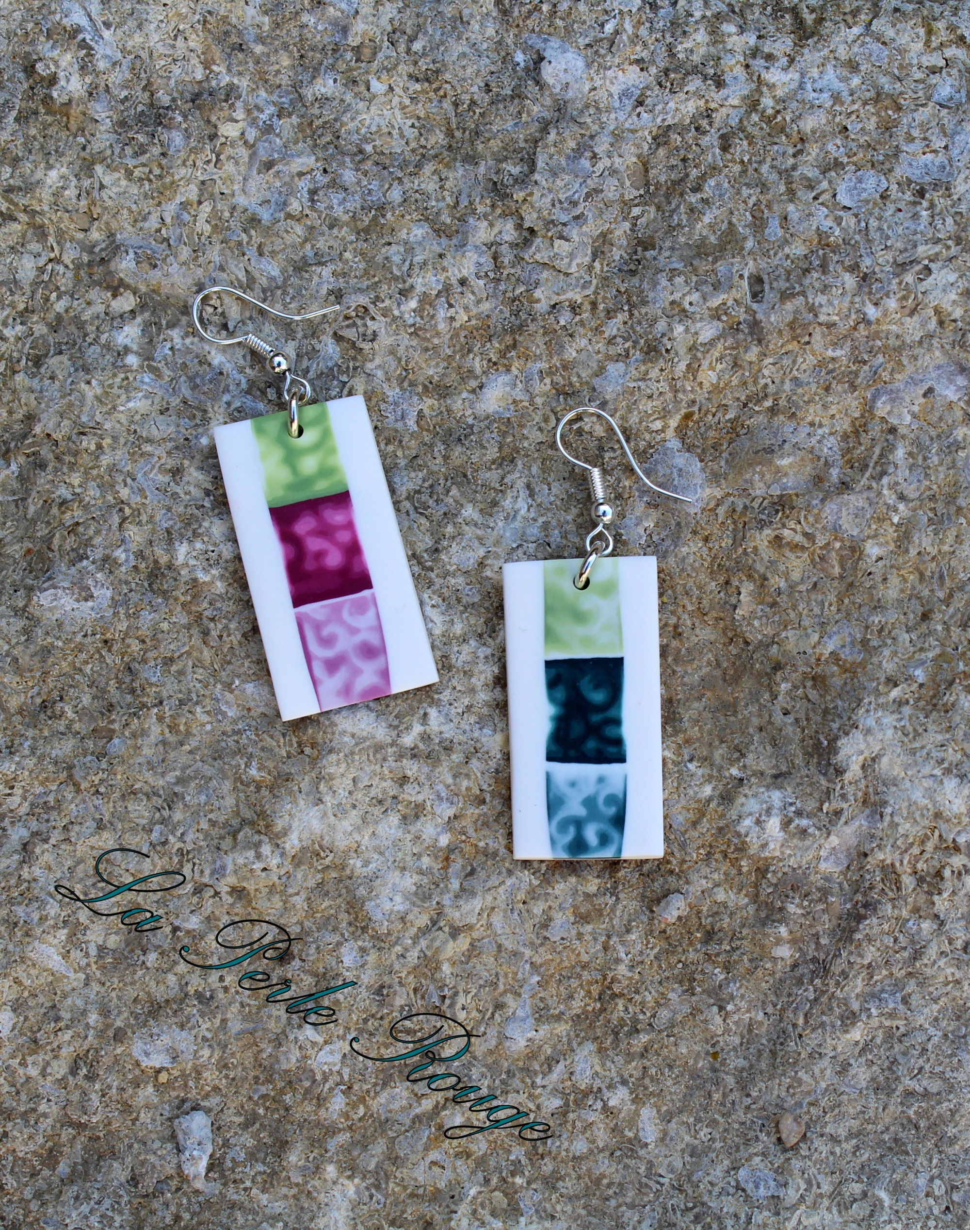 Ensuite, deux p’tites paires de boucles à partir des perles que j’avais réalisées pour un tuto et dont je ne me suis jamais servie, on se demande pourquoi, d’ailleurs…