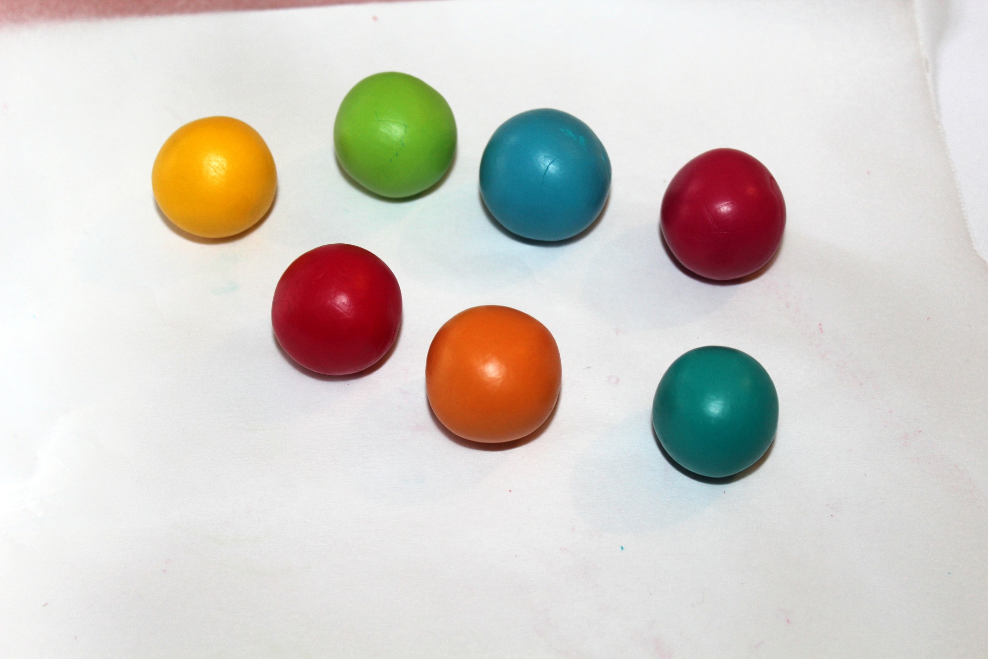 Photo 4 : À présent, préparez des petites perles toutes simples. Afin qu’elles soient exactement de la même taille, préparez une plaque unie en la passant dans la machine et utilisez un emporte-pièce de votre choix ; ainsi vous aurez la même quantité de matière à former en petites boules. Pour voir à quoi elles vont servir et contempler le résultat, il faudra attendre la fin de l’article.
