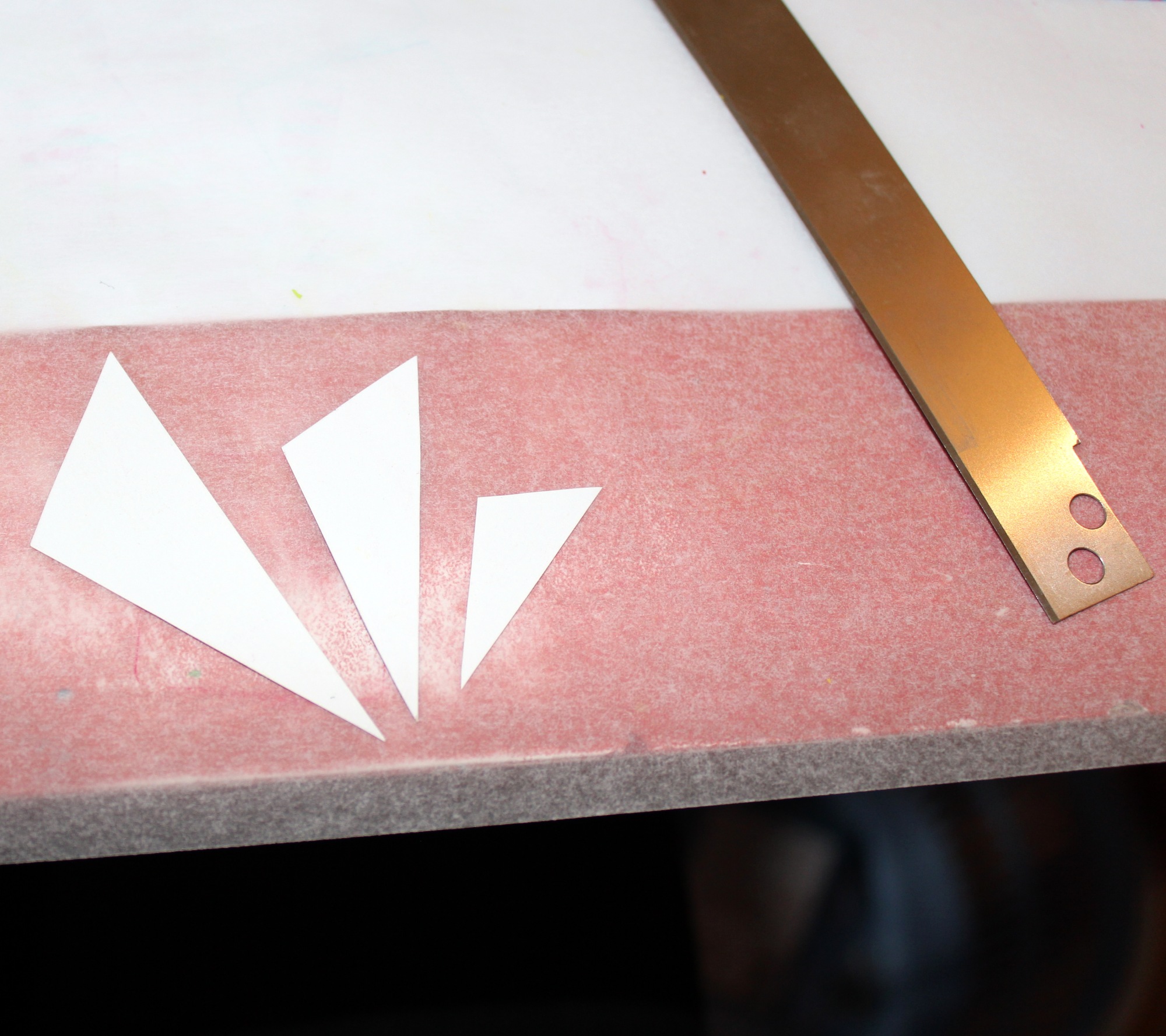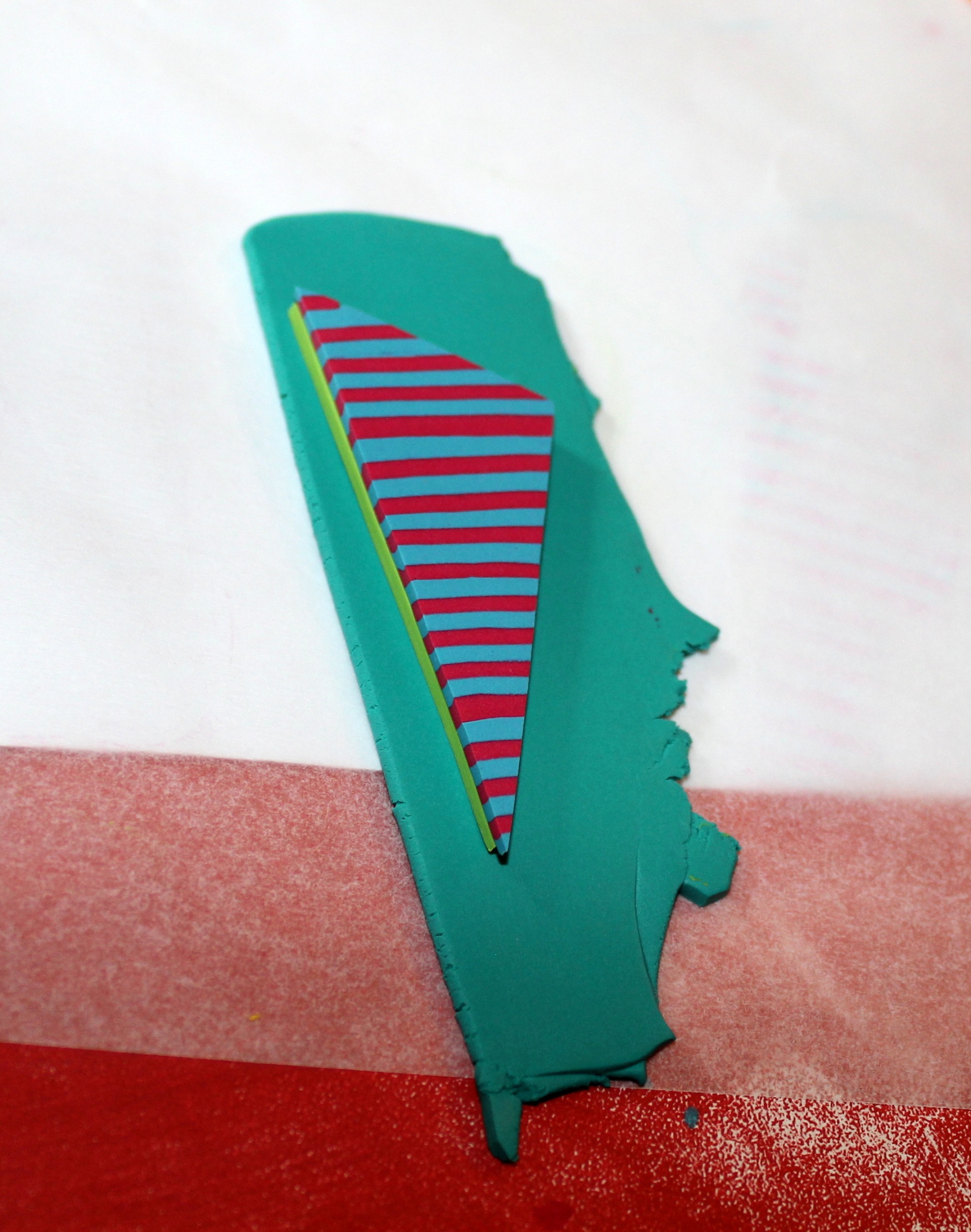 Photos 16 et 17 : Découpez à l’aide de votre lame une bande qui n’est pas nécessairement fine et passez-la dans la machine dans le sens des rayures. Vous obtiendrez une bande de rayures régulières.