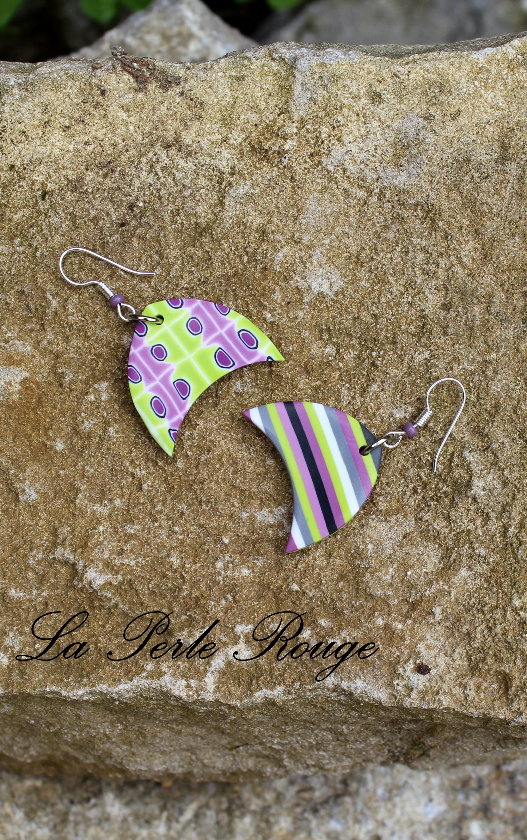 Une fois que nous avons réalisé une pièce, il reste toujours des morceaux de canes et des chutes de couleurs pour faire les boucles assorties. En voici plusieurs exemples simples :