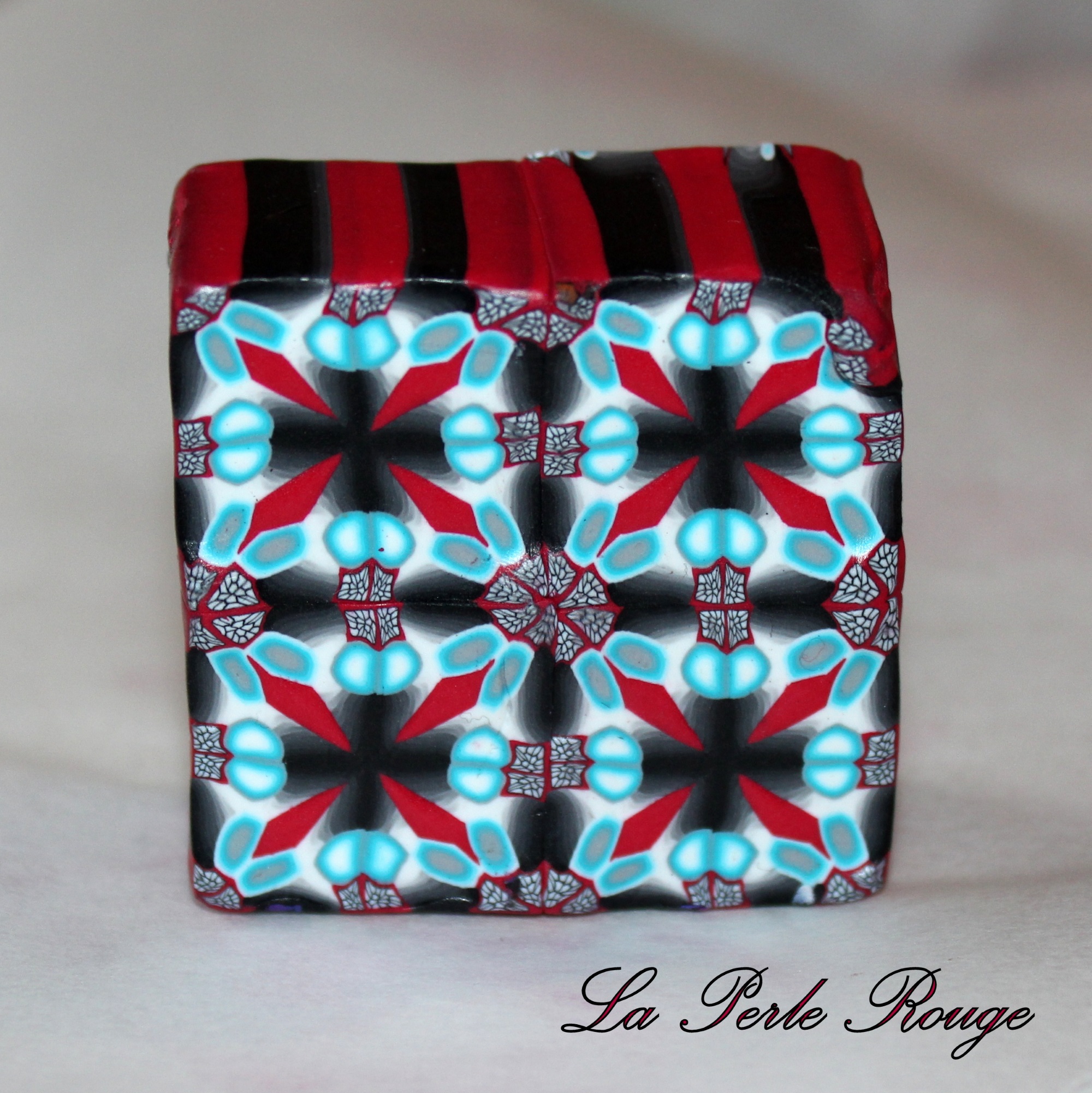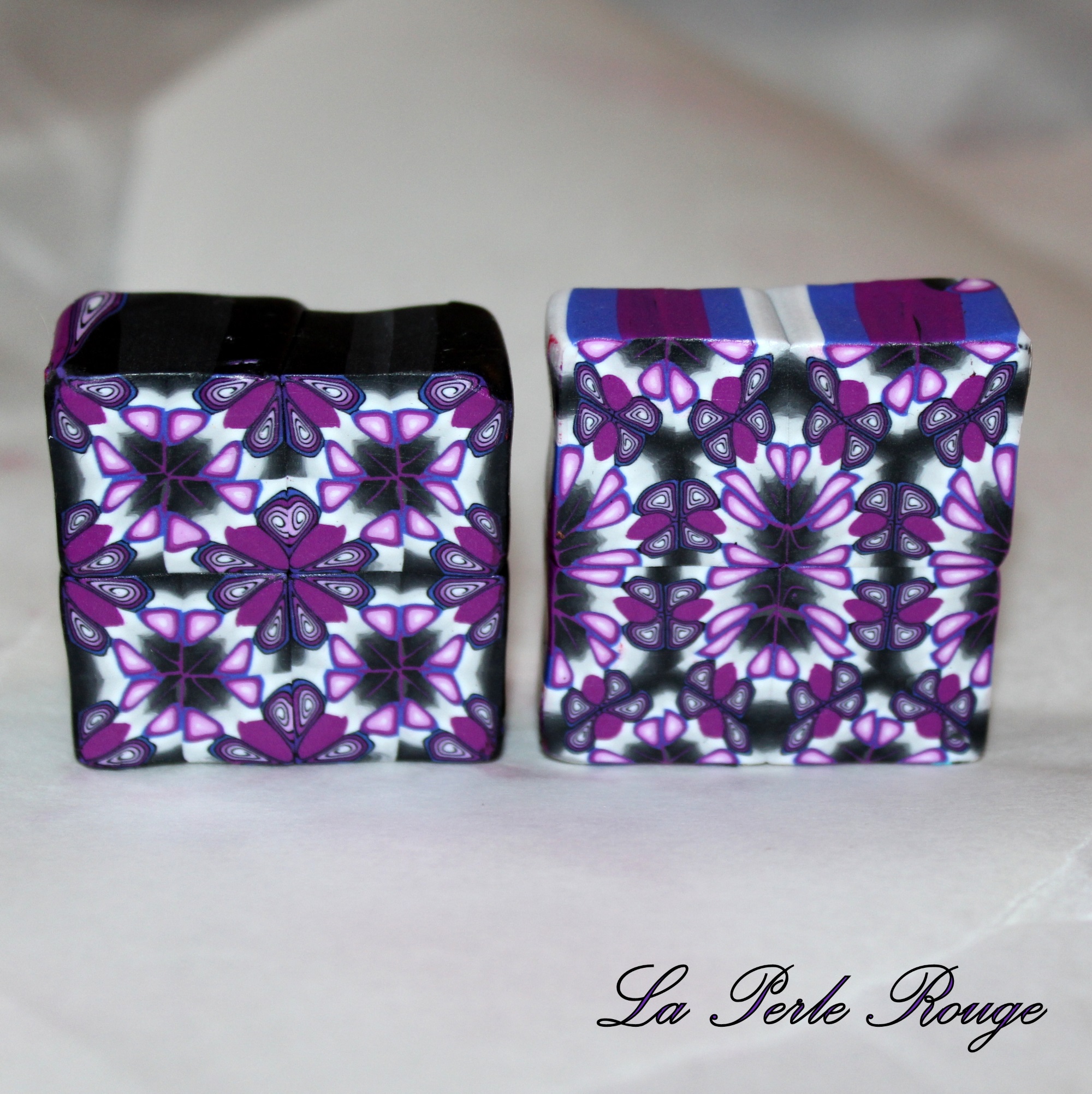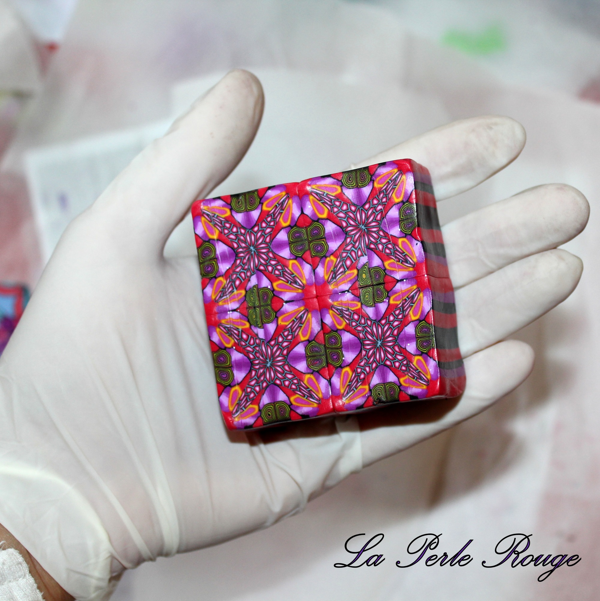 Enfin, à bout de couleurs qui me plaisaient et profitant de la chaleur qui a ramolli une partie de mes pâtes, j’ai fini par n’utiliser que des translucides cerclées de noir pour faire une cane simple :