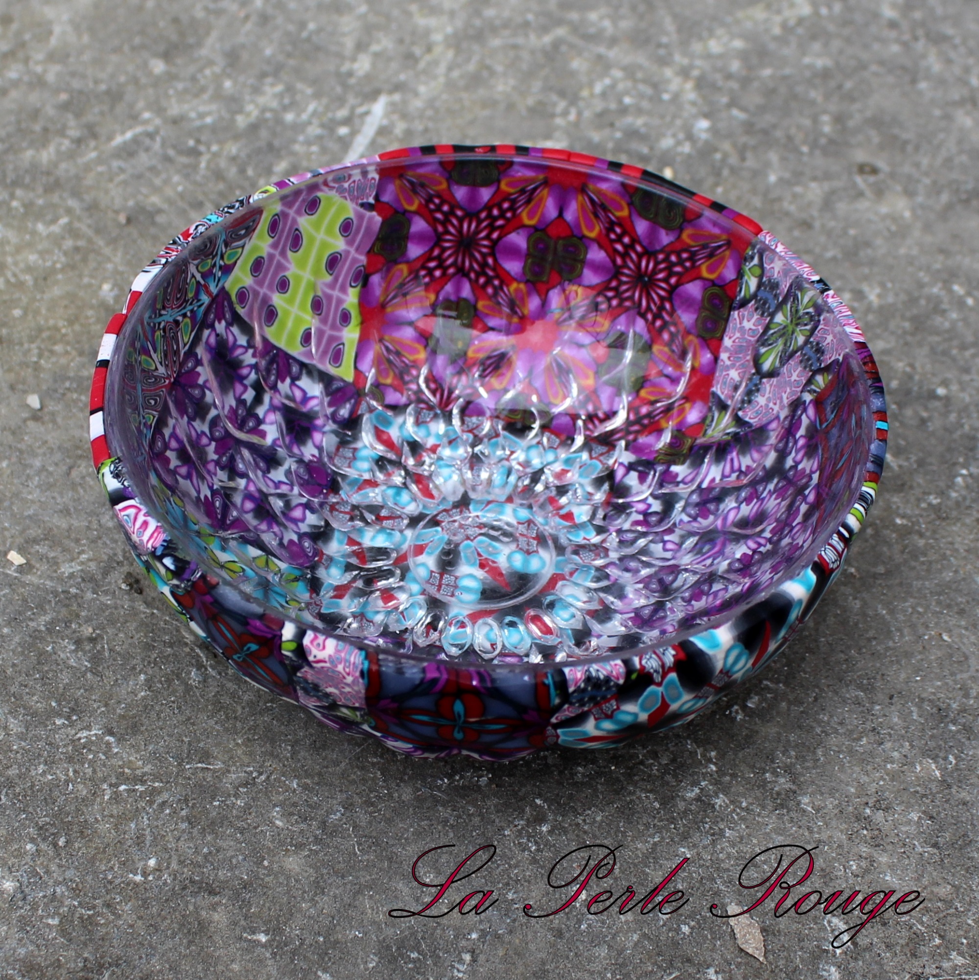 En revanche, j’ai voulu me précipiter à en faire un second tandis que petit chat dormait encore mais je n’avais pas d’autres bol lisse… J’ai donc recouvert un bol structuré (enfin avec des creux, quoi…) et c’est une erreur ; impossible de lisser convenablement la surface, encore moins de poncer ou de lustrer comme j’avais pu le faire sur le premier. De plus, le rendu est nettement moins joli puisque le récipient n’est pas assez transparent depuis l’intérieur :
