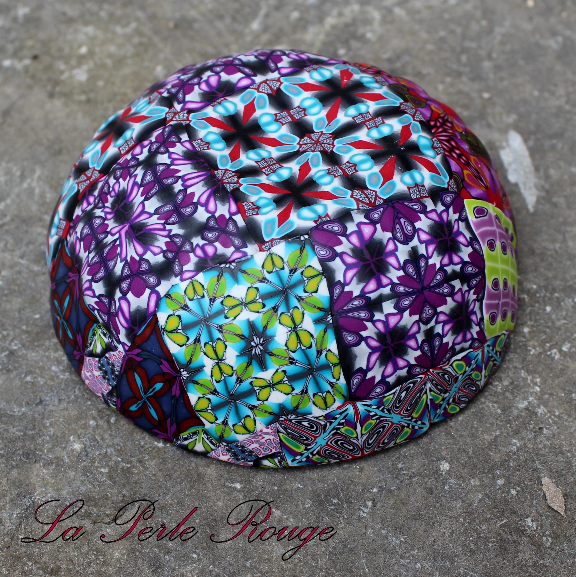 La suivante est double ; il s’agissait de l’exemple de différents assemblages d’une même cane de départ. Ce sont des très (très) jeunes filles qui ont choisi les couleurs. Les même jeunes filles qui m’ont gentiment appris à faire un bonhomme en pâte à partir de ma pâte beurk parce que vu mes créations, visiblement, je ne savais pas faire de bonhomme. (Moment magique !)
