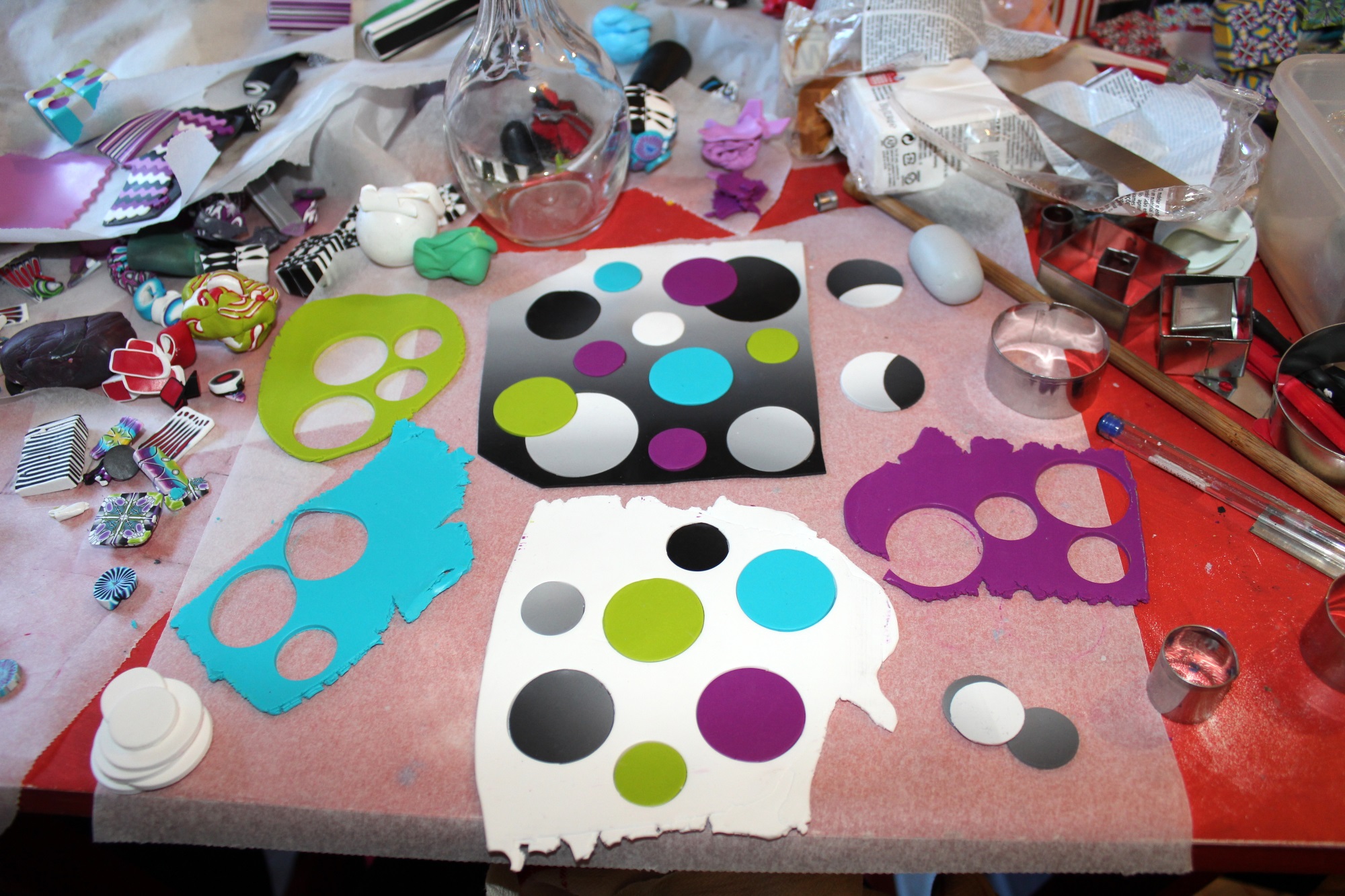 Après une semaine de complète inactivité (moins due à une giga-flemme qu’à une méga gastro… merci petit chat…), j’ai enfin repris le chemin de mon atelier. Après avoir parcouru les… pfff au moins 2 mètres, 2 mètres 50 qui séparent ma table de travail de mon PC devant lequel je prenais mon café du matin, je décidai de me concentrer sur le challenge « géométrique » proposé par le forum Polym’air de rien.