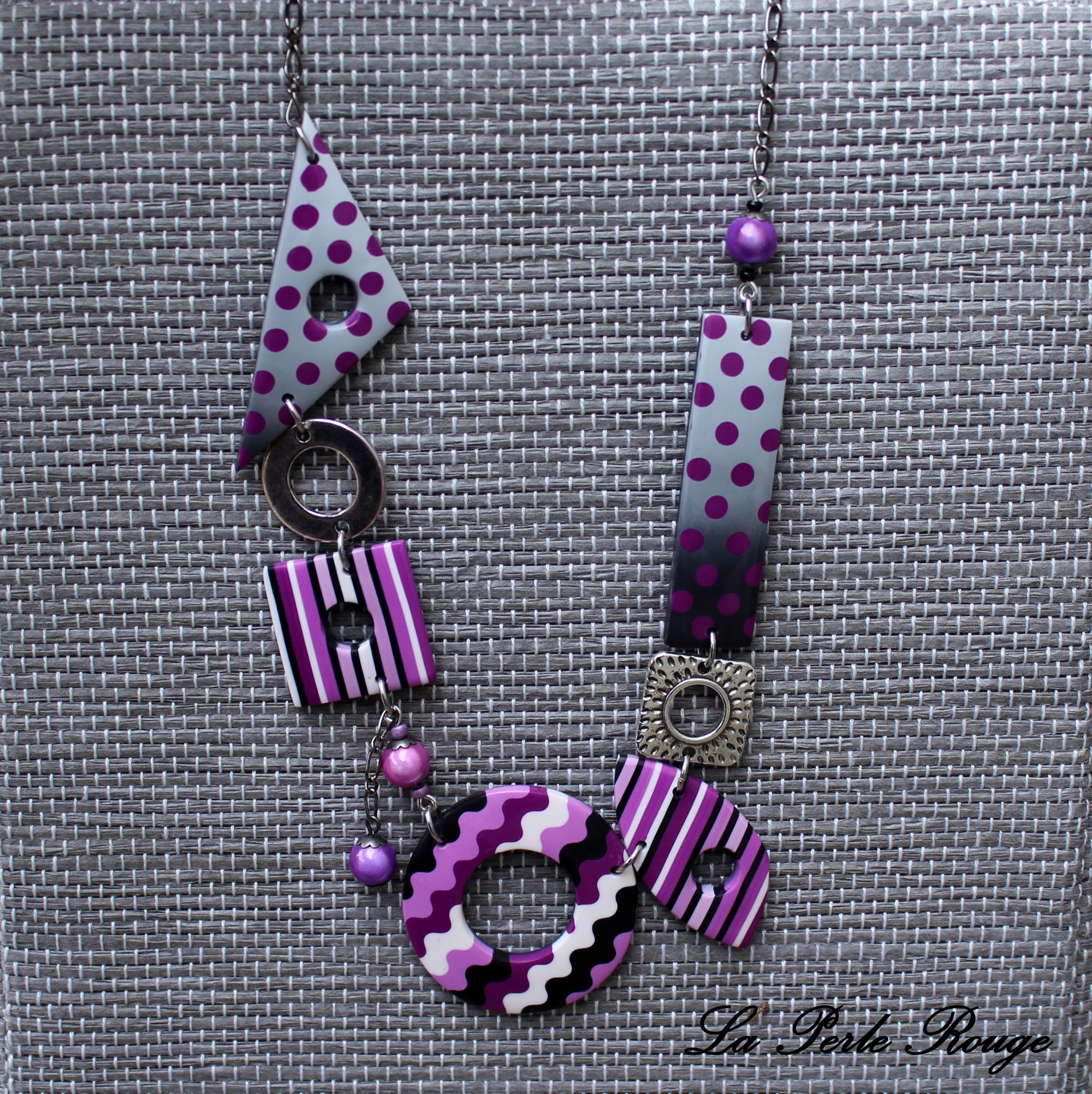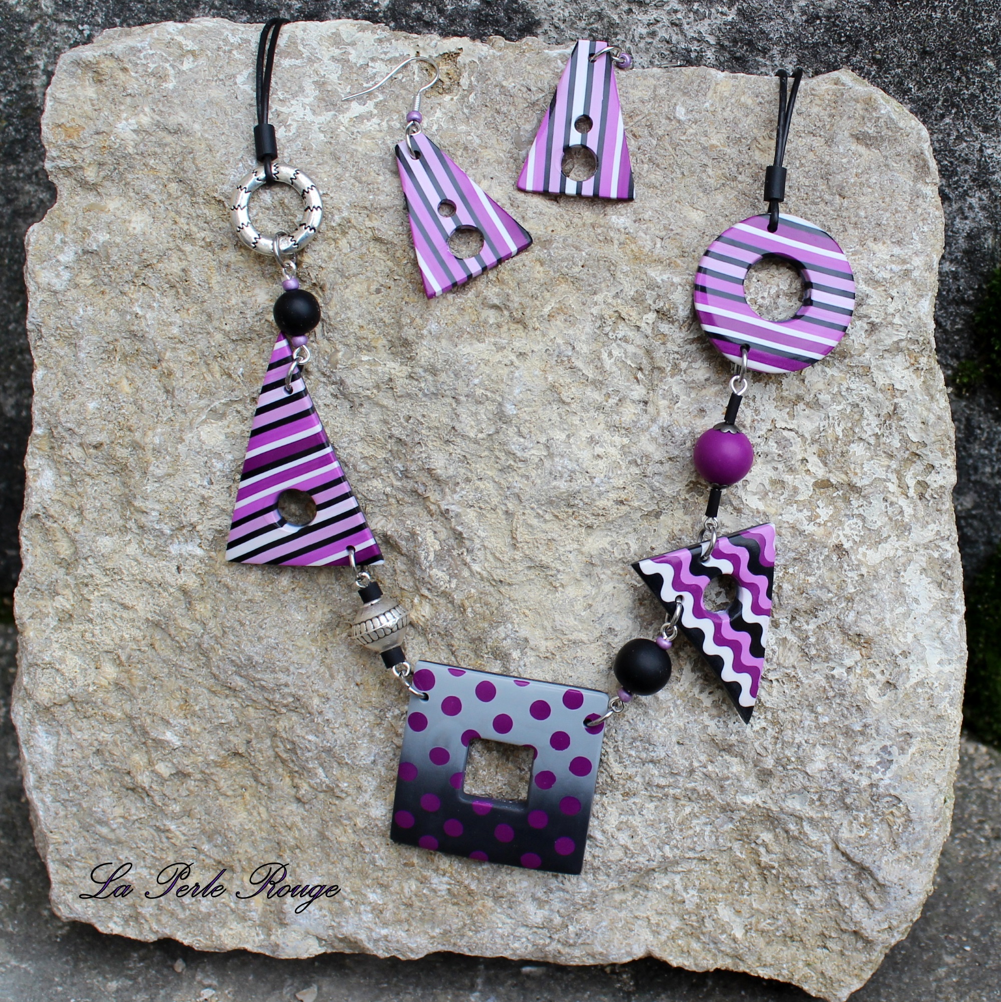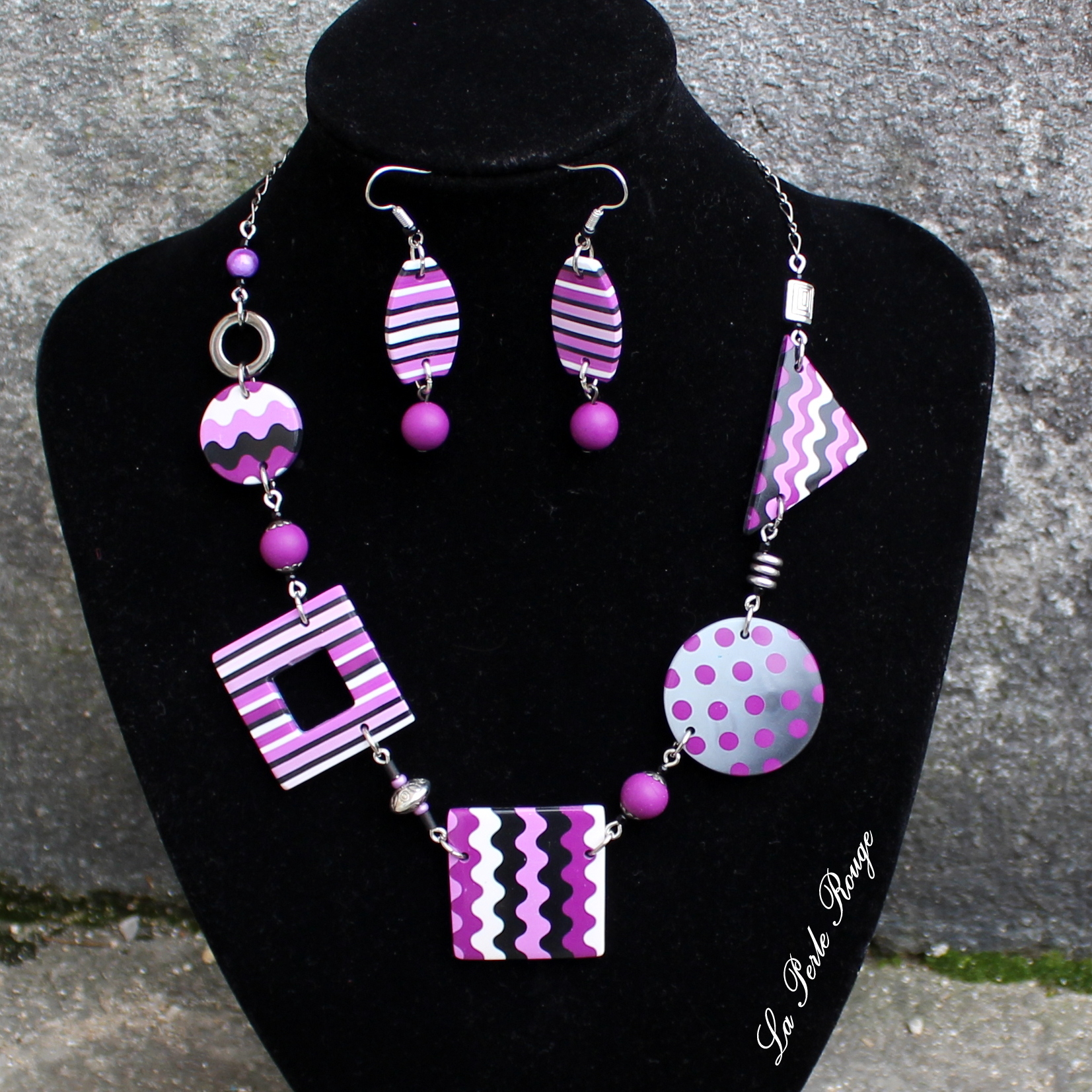 Les plaques violettes à trous sont les chutes des pois utilisés sur les perles des premiers colliers de cet article.
