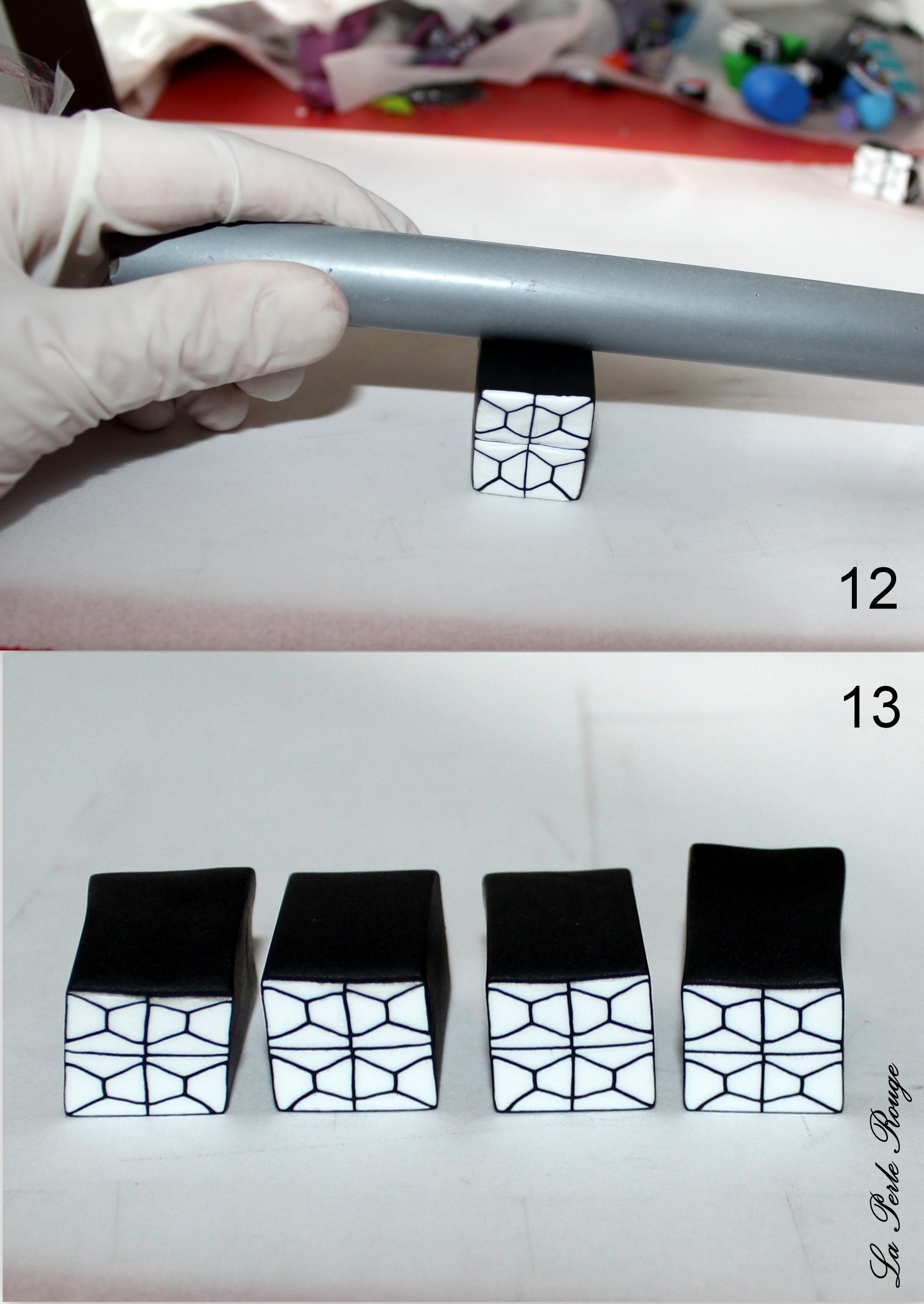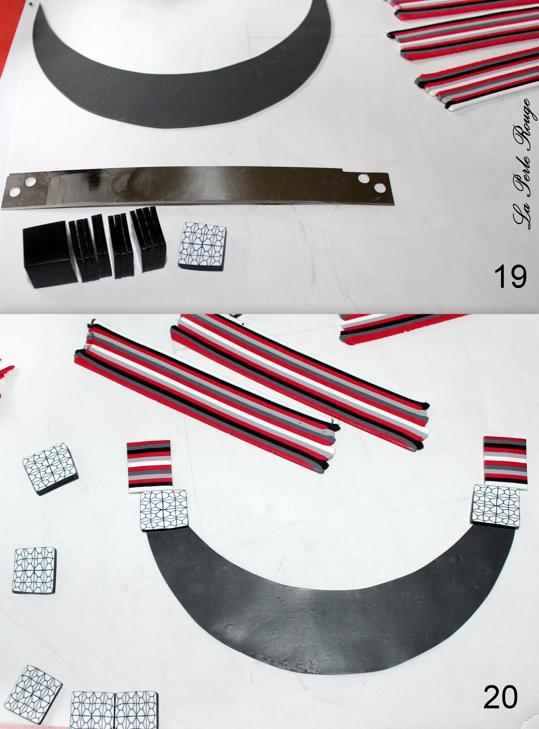 Photos 19 et 20 : Coupez des tranches fines de la cane géométrique et commencez votre assemblage.