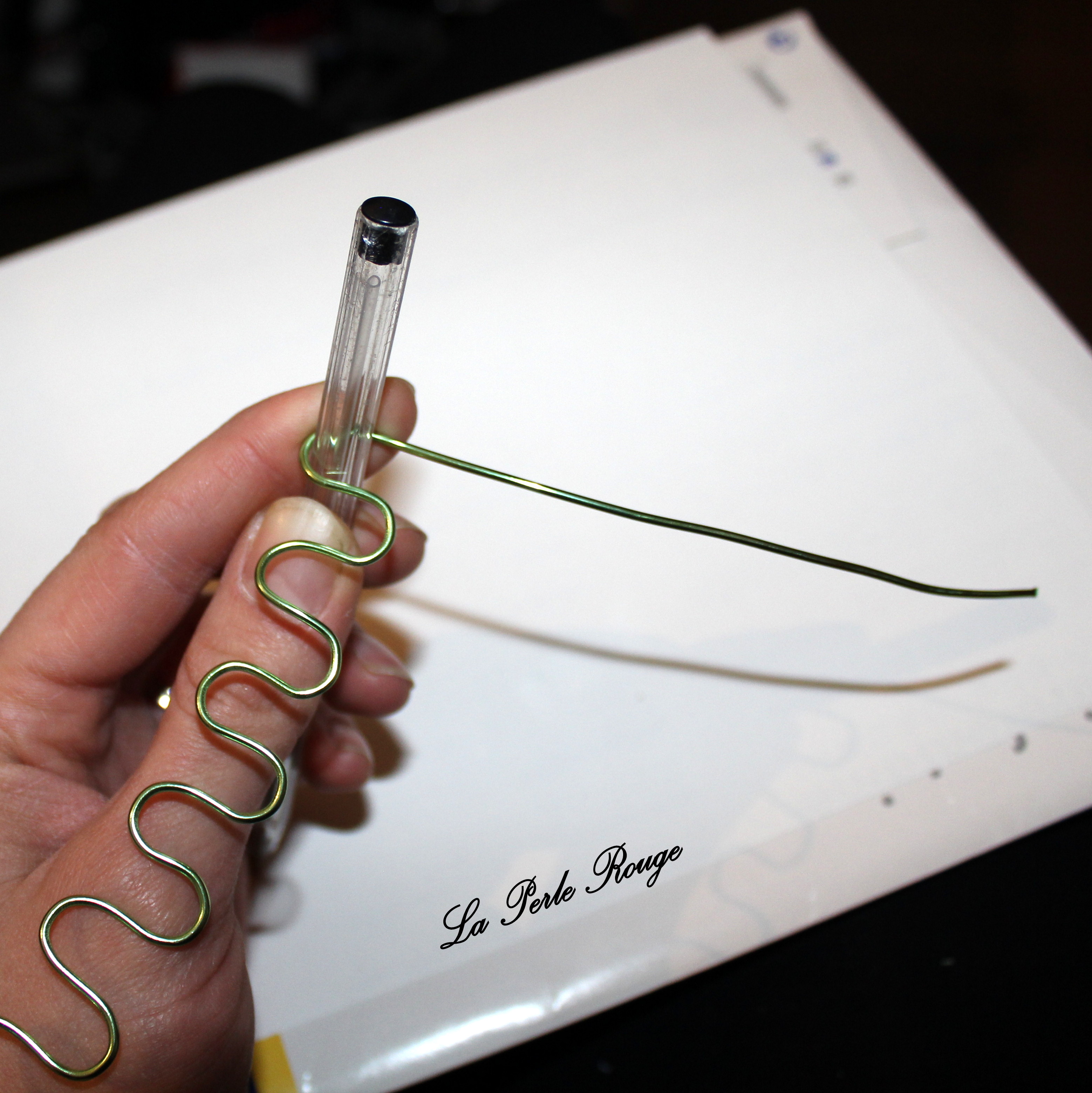 Pour réaliser une jolie spirale, commencez à tourner le cœur de la spirale à l’aide de la pince ronde puis continuez avec les mains, le fil d’aluminium est vraiment très souple et vous pouvez en faire ce que vous voulez.