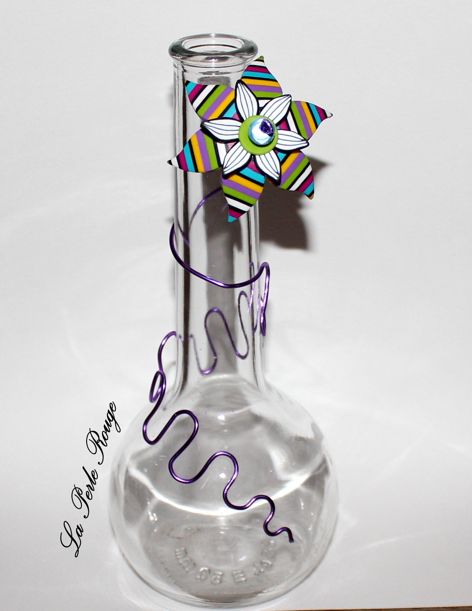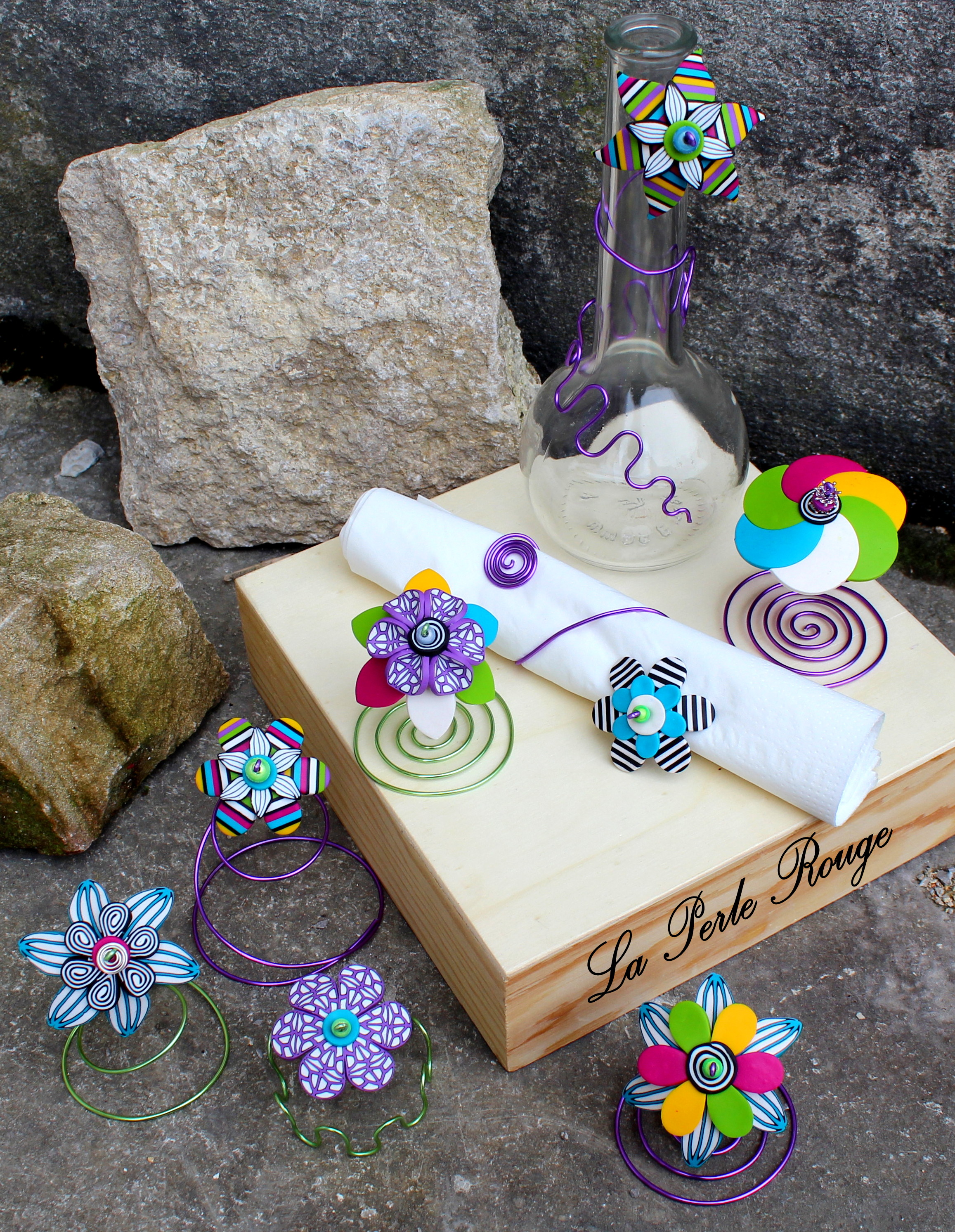 À présent, laissez courir votre créativité et votre imagination en décorant vos bouteilles d’eau, vos soliflores, en créant un chemin de table ou encore en faisant des ronds de serviettes (enfin… avec une plus jolie serviette que le morceau d’essuie-tout que j’avais à la maison…), bref, tout ce qui fera une décoration originale sur une table pleine de peps !!! Sujet de conversation assuré et compliments garantis durant le repas !