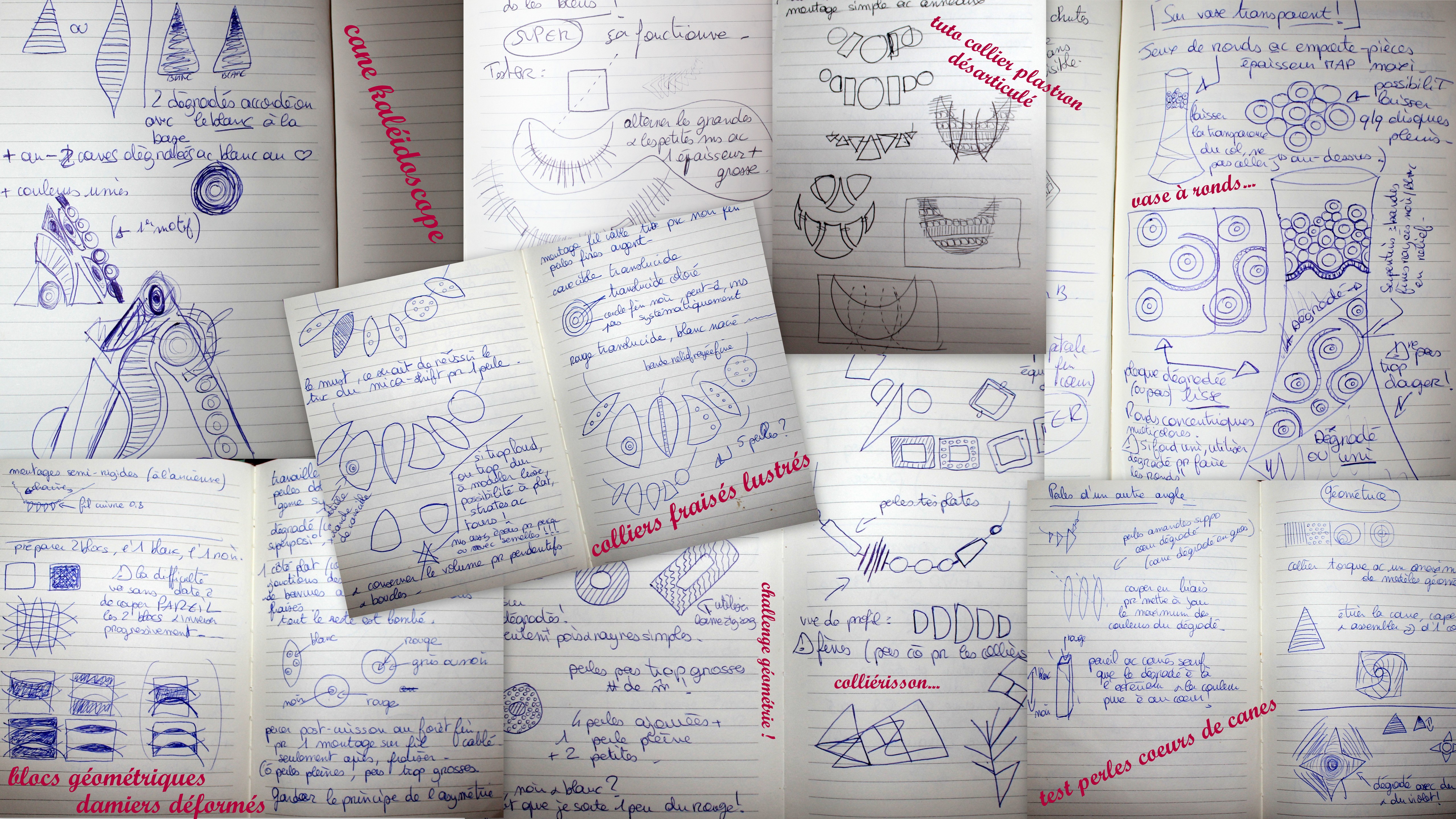 Celui du moment (cela doit être le 15ème ou le 16ème carnet…) comporte une part de menus mais également un certain nombre de réflexions polyméristes (Ouh, j’adore ce mot, ça me donne l’impression d’être grande ! Et dire que mon correcteur orthographique ne le connaît même pas ! Une honte !)