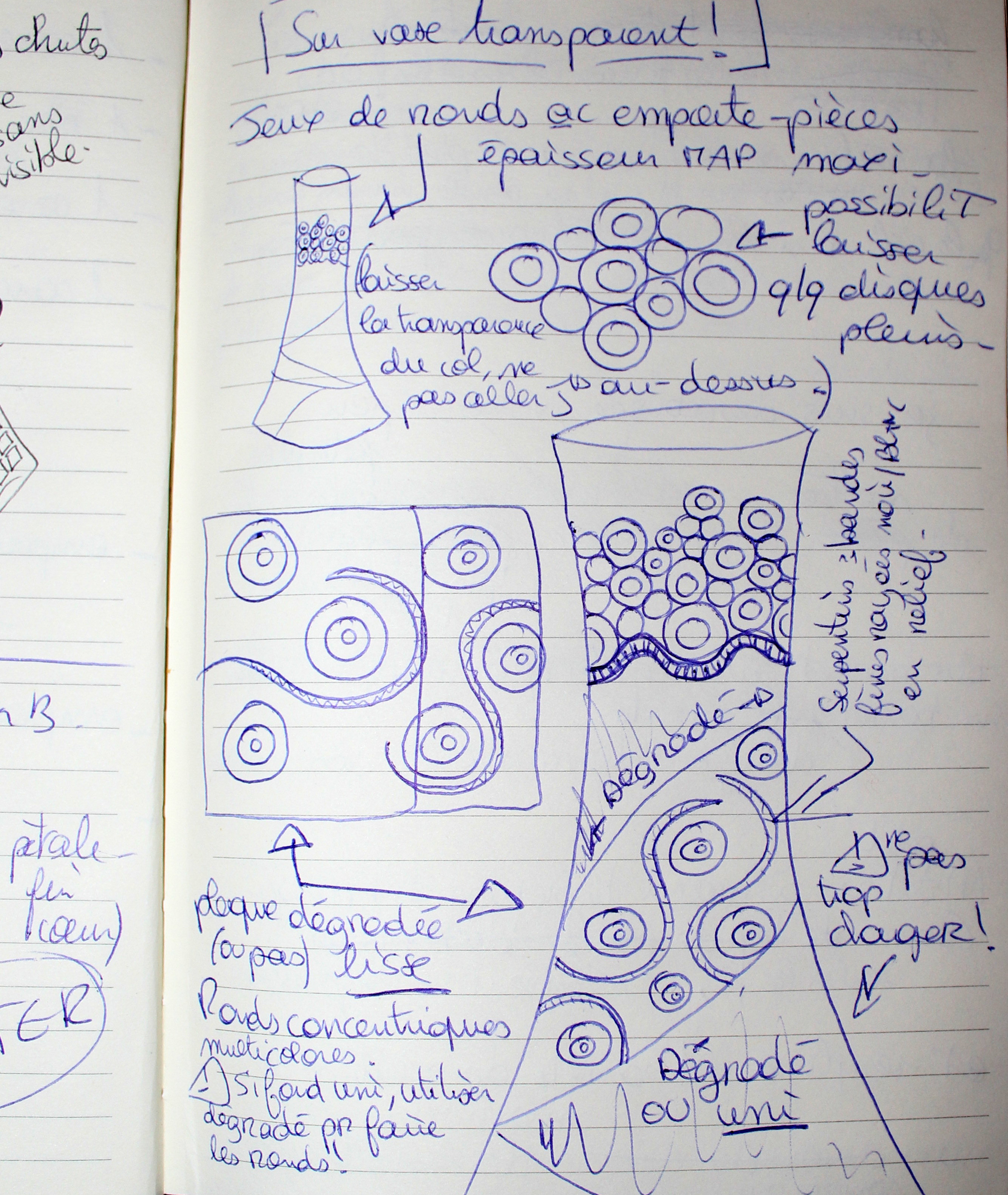 Le premier est un vase « bubulles » que j’ai réalisée à partir d’un schéma préalablement esquissé dans mon carnet lorsque je me trouvais au fond de mon lit :