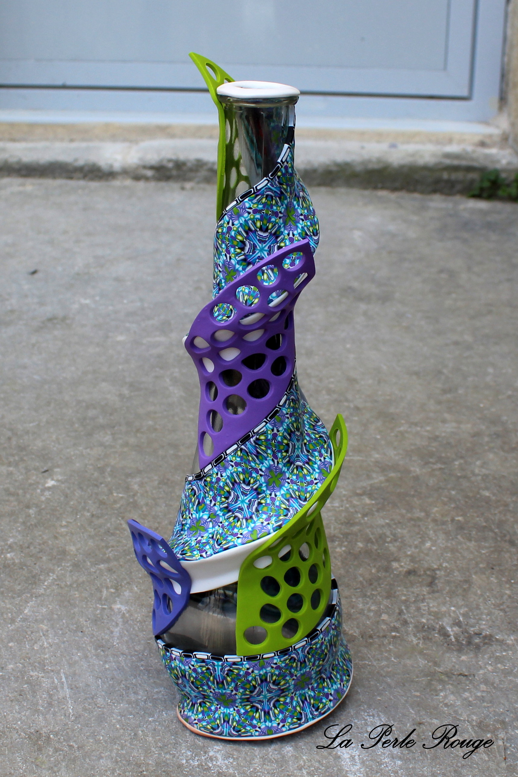 Je l’interprète comme un un témoignage de ma furieuse envie de couleurs, de lumière et… d’apéro barbecue… oui, parce que lorsque j’ai eu achevé le lustrage et que j’ai contemplé mon vase, je me suis rendue compte qu’il s’agissait en réalité… d’un pot d’eau… Alors ? détournement ou lapsus ?