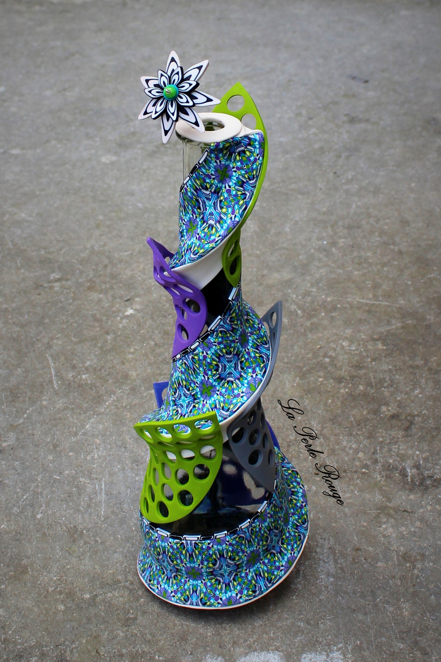 Le problème c’est qu’entre l’idée qui naît dans ma tête, sa traduction sur le papier et son interprétation entre mes mains, ça fait trois façons d’envisager les choses pour un résultat toujours surprenant mais jamais fidèle ! Par exemple, je met toujours plus de détails sur mes croquis, comme si je travaillais ensuite sur des pièces immenses… Enfin, voici mon vase à ronds :