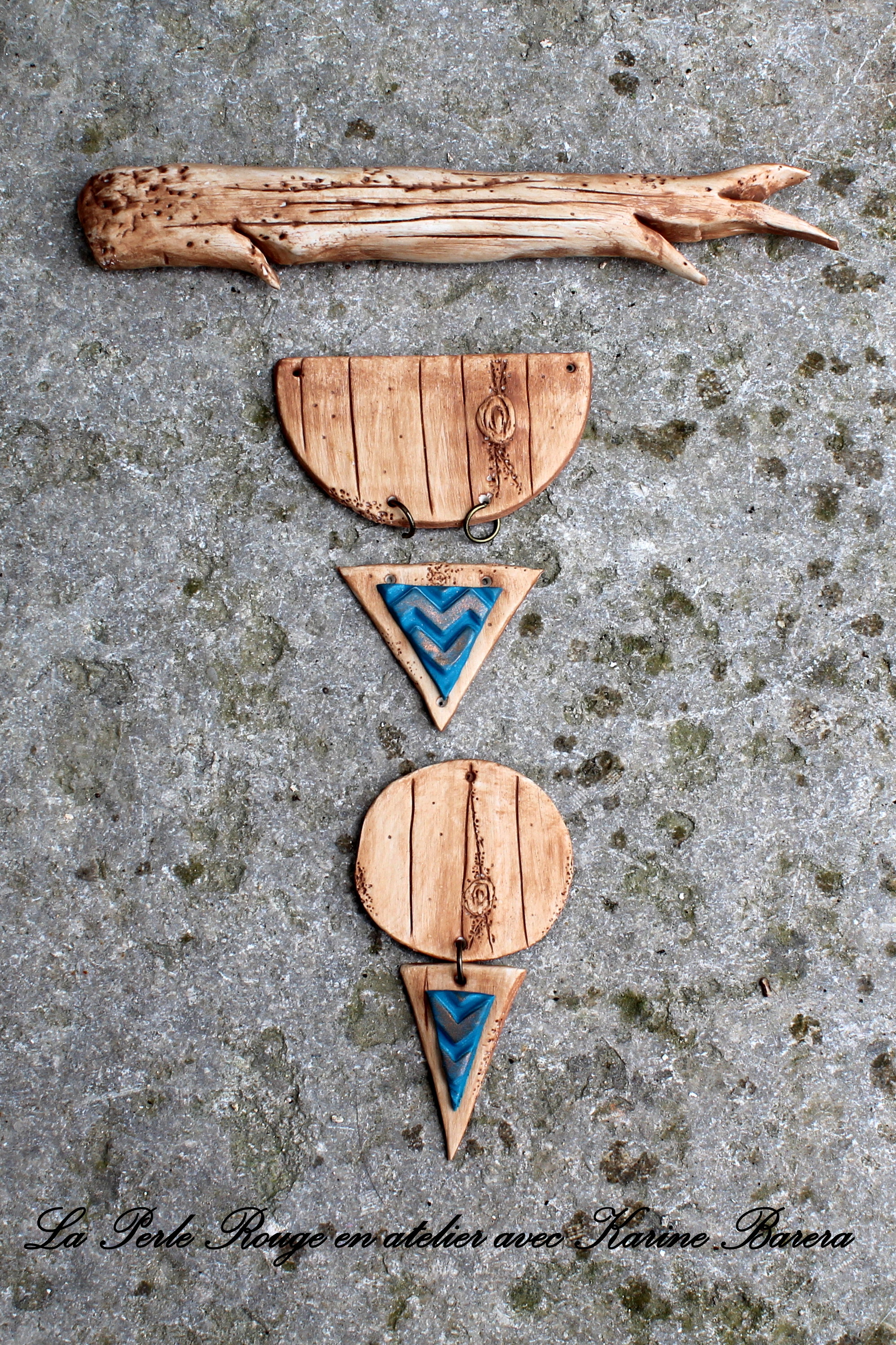 Je n’ai pas de photo du petit porte-clefs de muffins que nous a fait faire Mme Patachou car je l’ai laissé en cadeau à mon amie avant de rentrer dans le jura et je n’ai pas achevé le montage de la décoration murale imitation bois flotté de Karine Barrera mais voici tout de même un aperçu des pièces qui la compose :