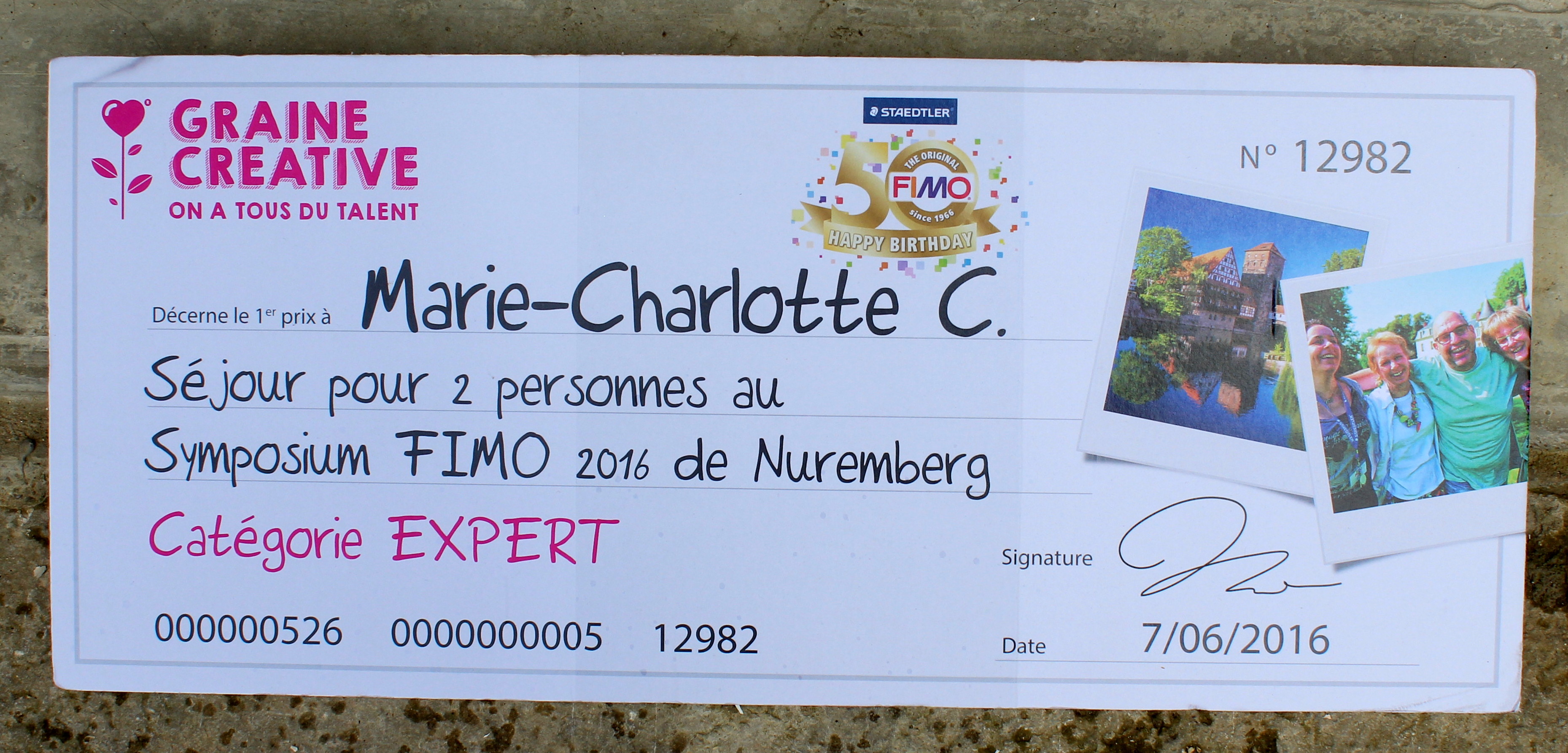 Si vous suivez mes publications depuis un certain temps, vous avez sans doute une idée assez précise de la complexité de mon organisation mais également de mon incroyable gestion du timing. La semaine passée, j’ai du combiné les deux tandis que je devais me rendre à Paris afin d’y rencontrer l’équipe de Graine Créative ainsi que les autres gagnants du concours FIMO qui devaient, comme moi, recevoir leur prix. Entre grèves et inondations les événements semblaient se liguer contre moi mais… laissez-moi vous conter un peu le déroulement de ce séjour.