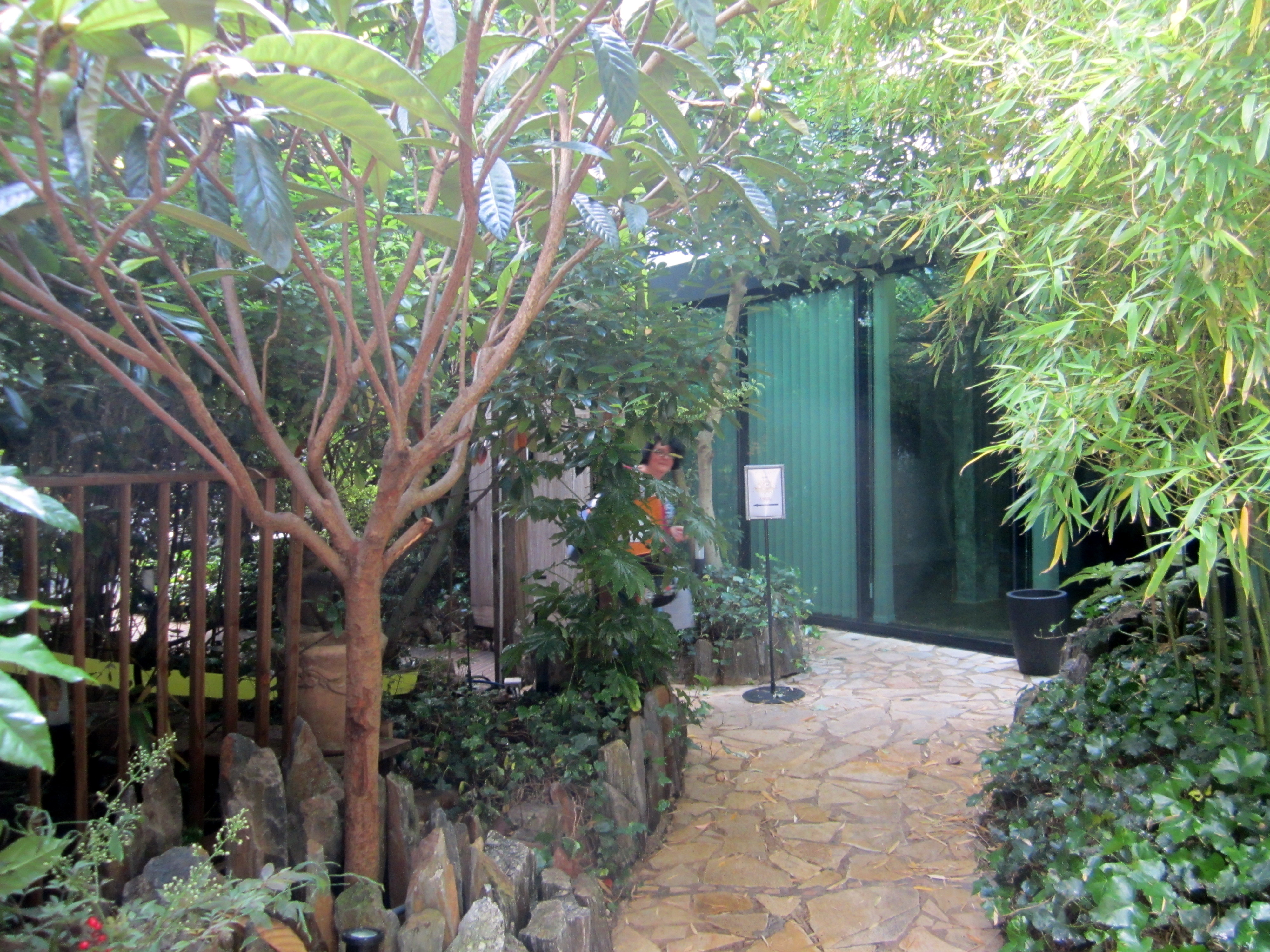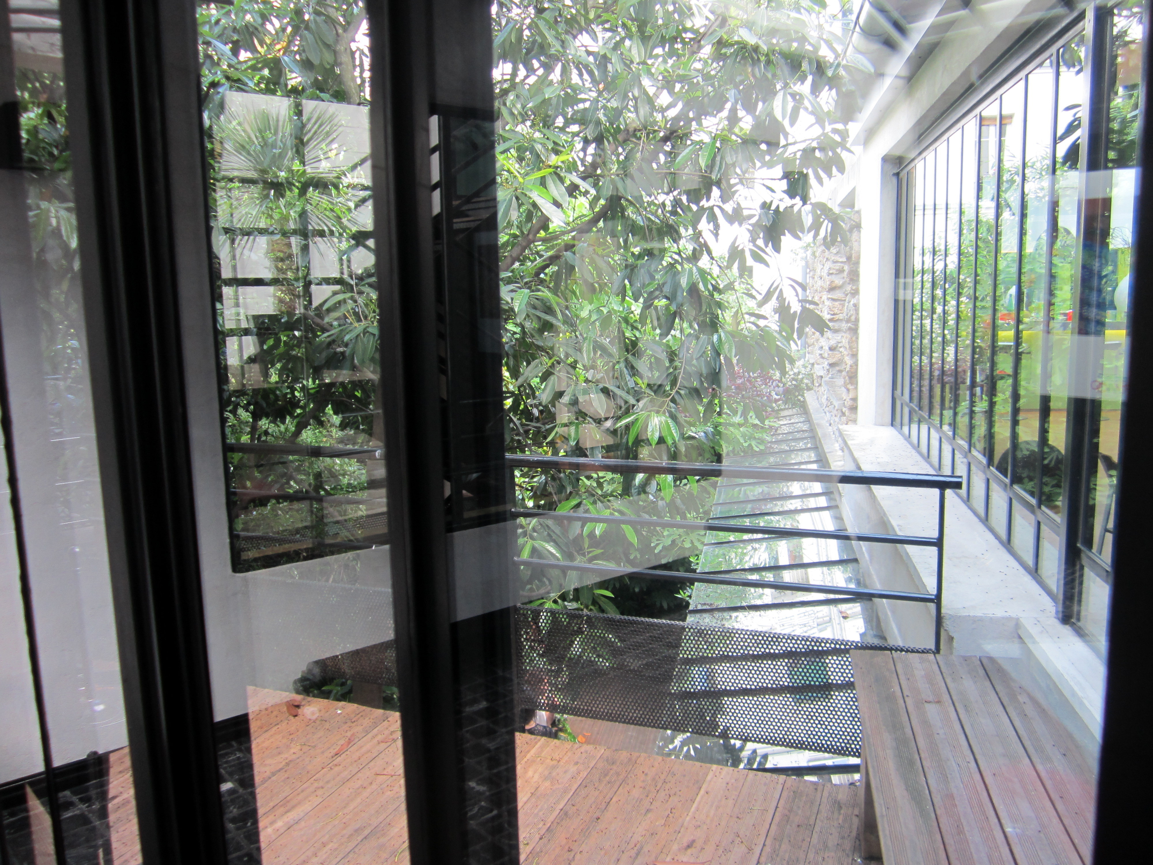 Derrière cette grande porte en bois d’un banal absolu se cache un labyrinthe de verdure menant à un splendide intérieur constitué de murs de pierres blanches, de planchers verrières, de terrasses improbables, de bars prêts à vous servir ce que vous voulez quand vous le voulez, le tout à la décoration design. Je vous mets ici quelques unes de mes photos mais pour se faire une meilleur idée du lieu, suivez ce lien.