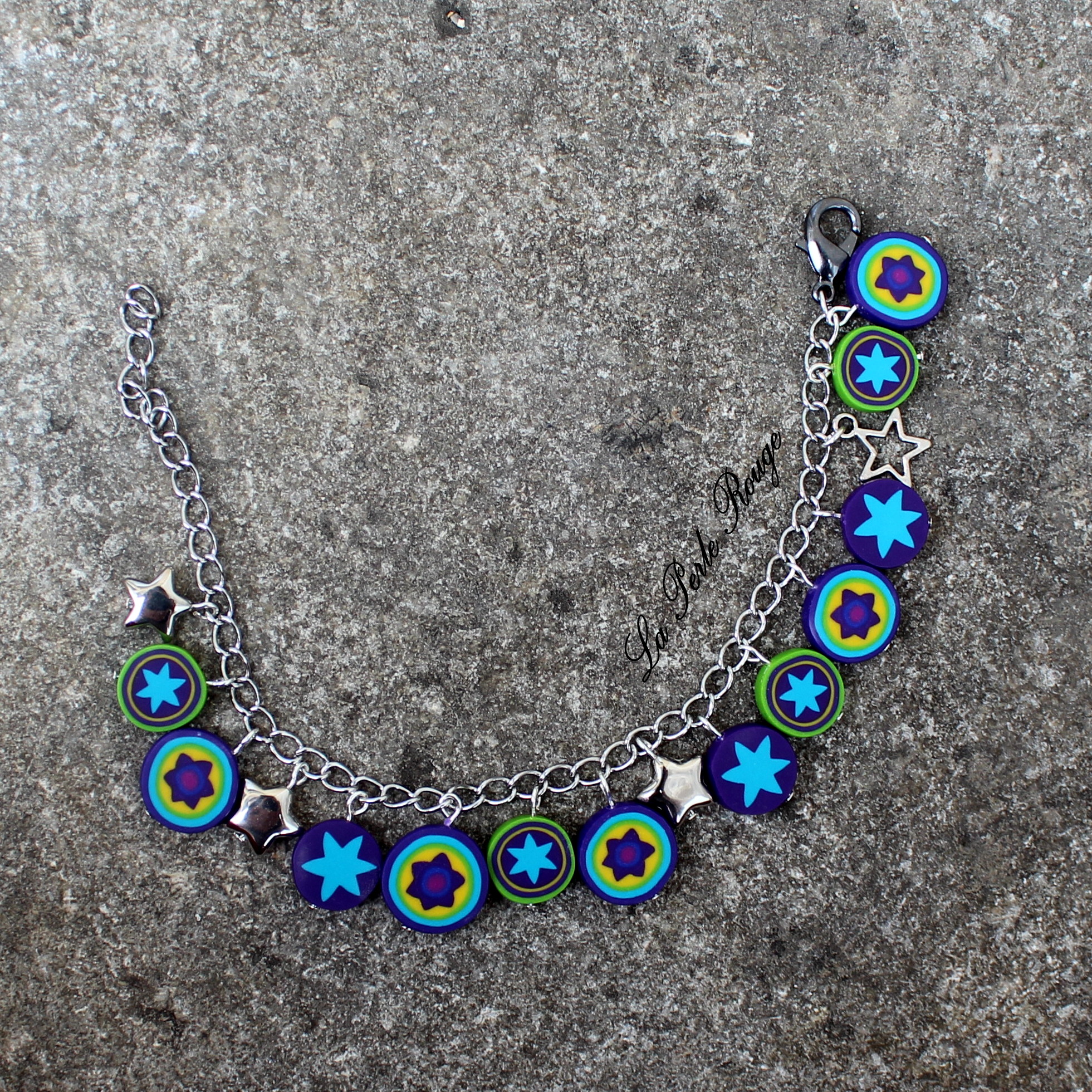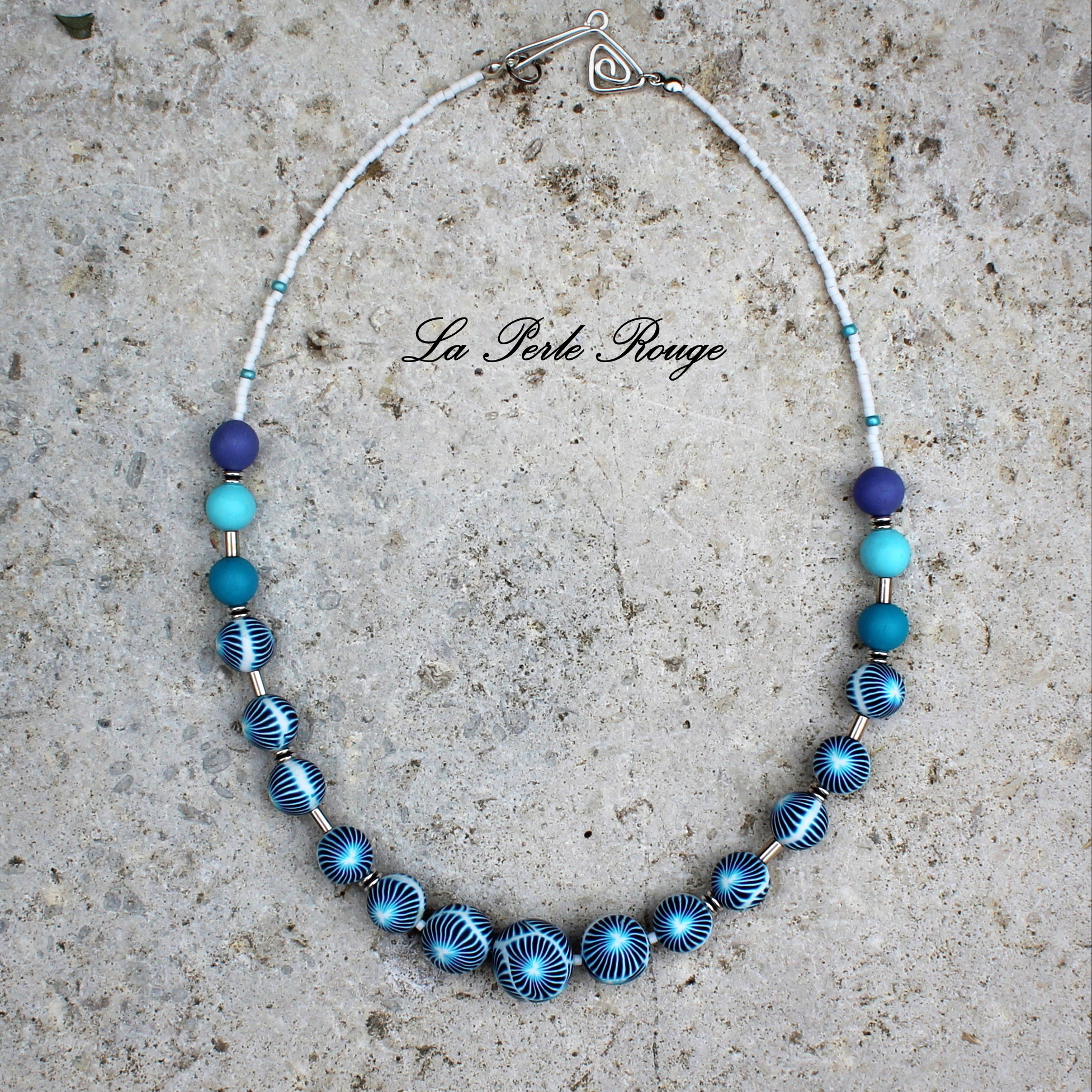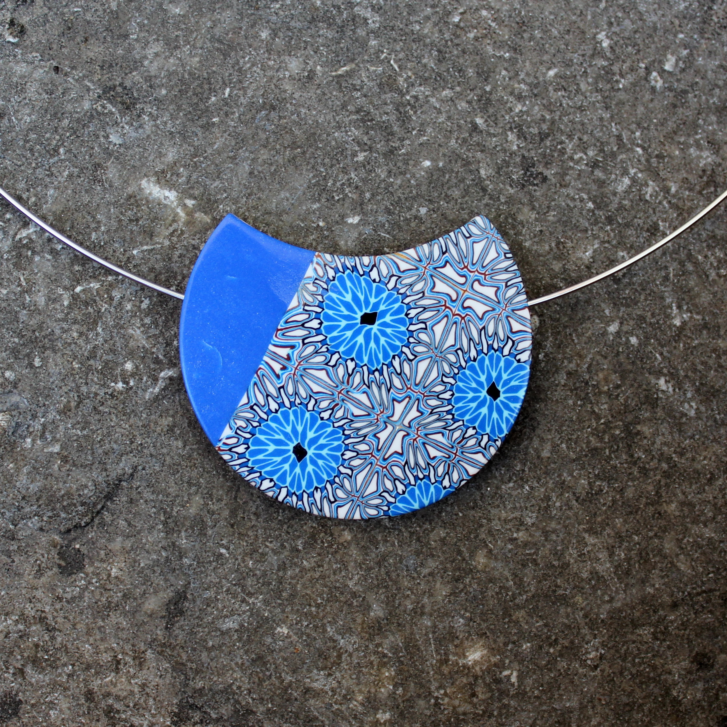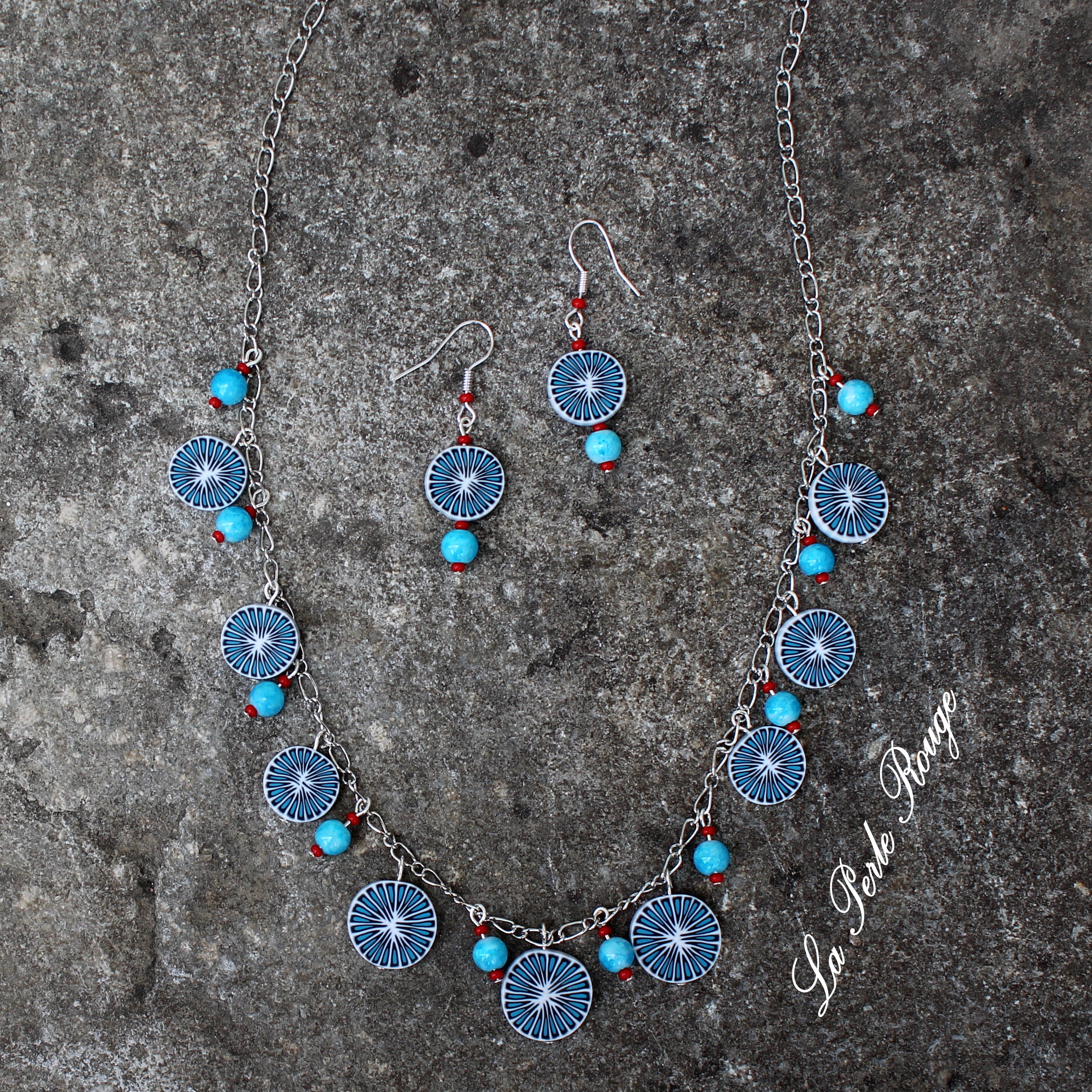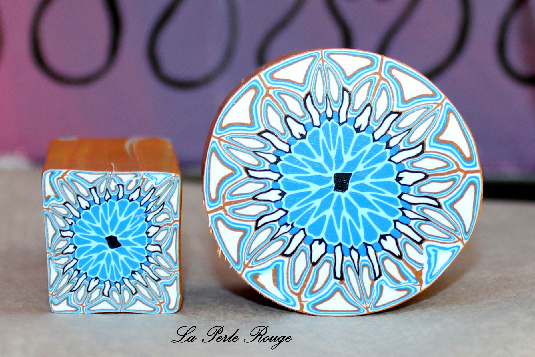 Commençons par une commande de pendentifs assortis à des tenues précises toutes en bleus. Le motif ci-dessous est directement inspiré du dessin du tissu en question :
