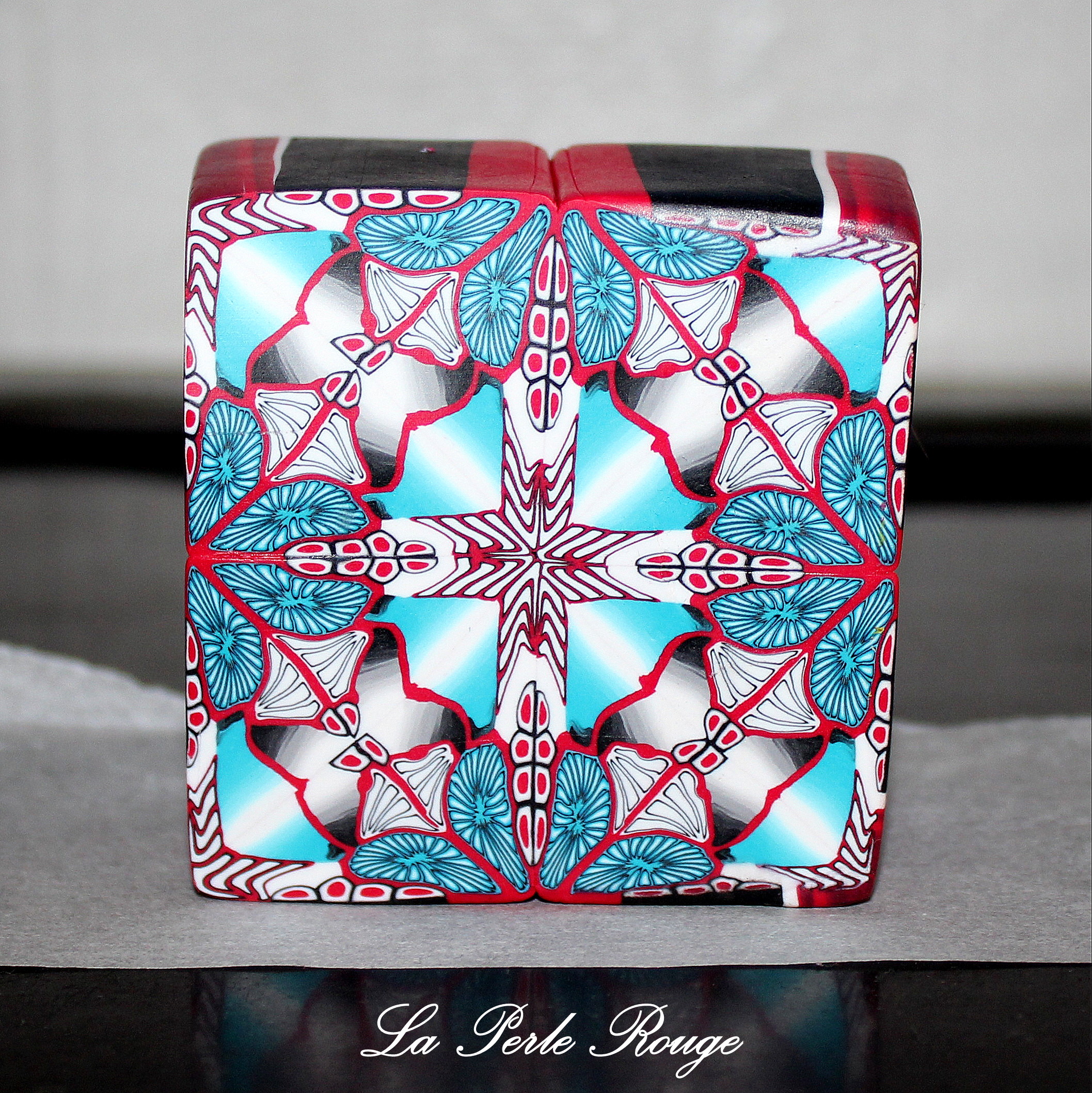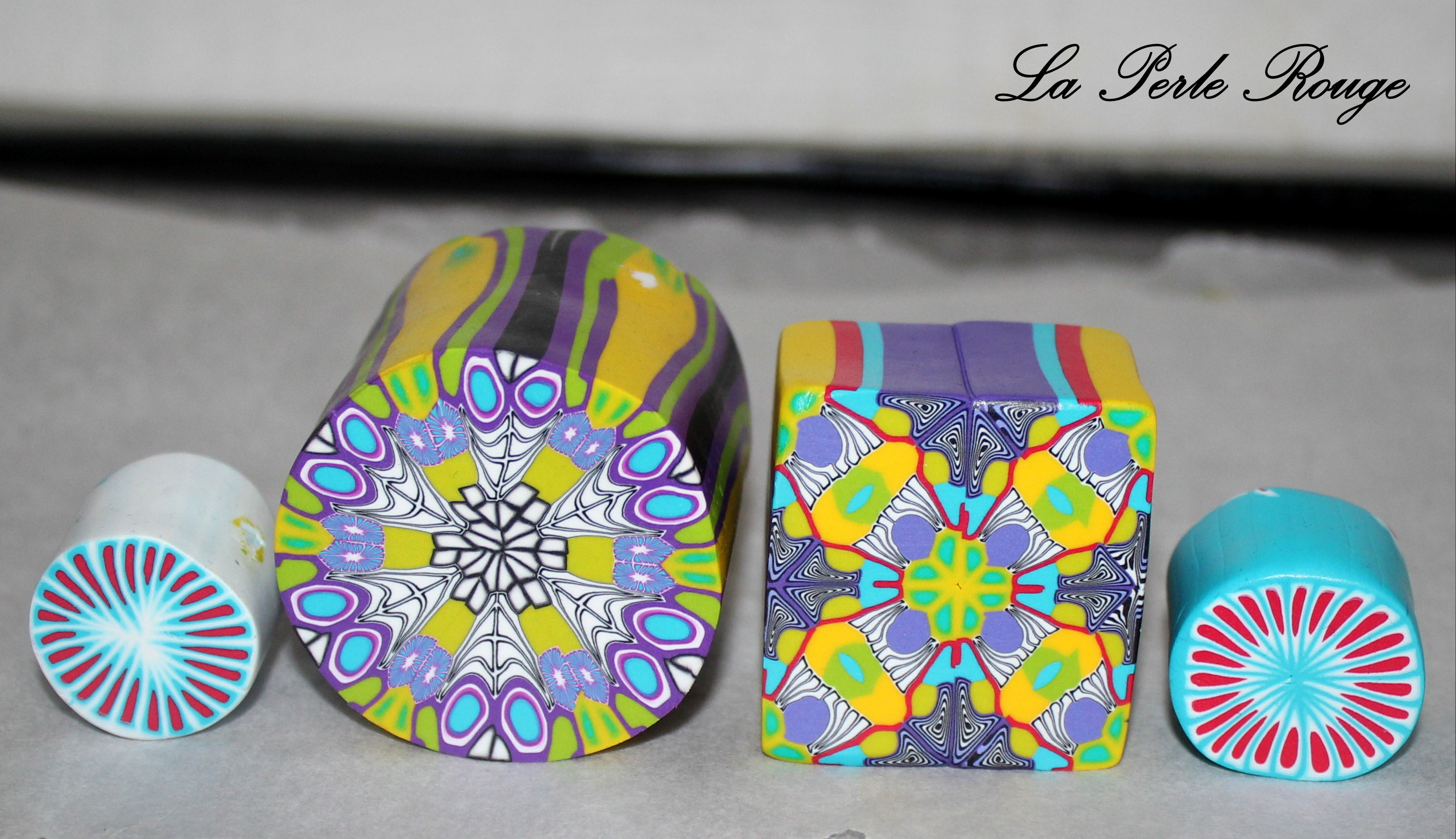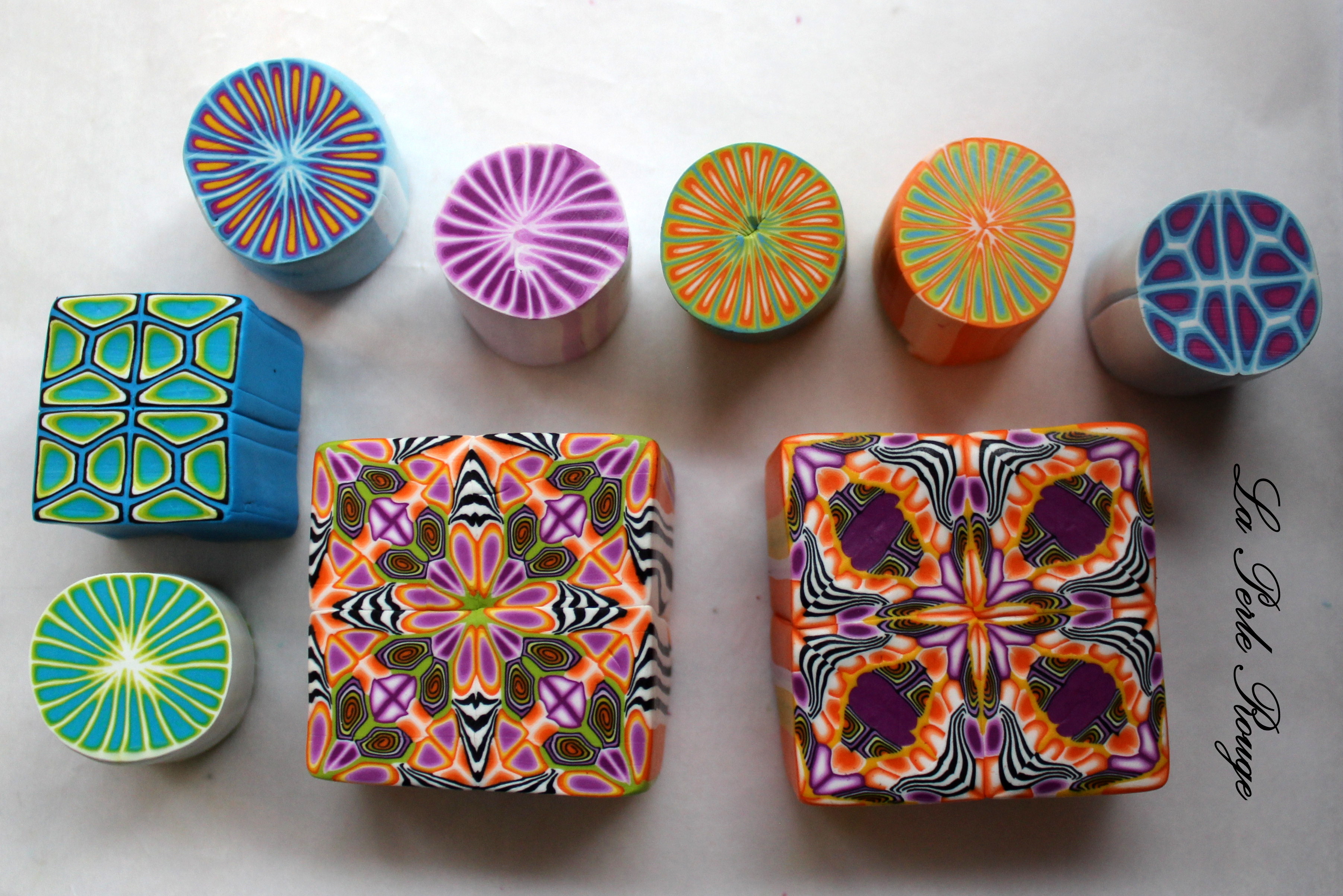 Les manipulations publiques de la pâte polymère suscitent toujours autant l’intérêt du public présent. Il suffit que je choisisse une couleur et que j’actionne la manivelle de ma machine à pâte pour voir des curieux approcher de mon stand. Après avoir salué les premiers arrivés, je déroule mes explications le plus souvent la tête baissée durant un bon moment, concentrée sur mes réductions et mes assemblages, consciente que l’attention des gens présents sur un marché (aussi créatif soit-il) ne peut pas excéder beaucoup plus d’une demi-heure. Lorsque je me redresse enfin, c’est pour constater avec un plaisir toujours surpris que le nombre de spectateurs a considérablement augmenté. Des femmes de tout âge, passionnées de création en générale ou amatrices de bijoux et de couleurs ; des hommes, intrigués par la technique et hypnotisés par les enchaînements géométriques de la naissance d’une cane kaléidoscope et bien sûr, les enfants, subjugués par ces magiques manipulations qui transforment quelques boules de pâte un peu bizarre en un très très zoli dessin.