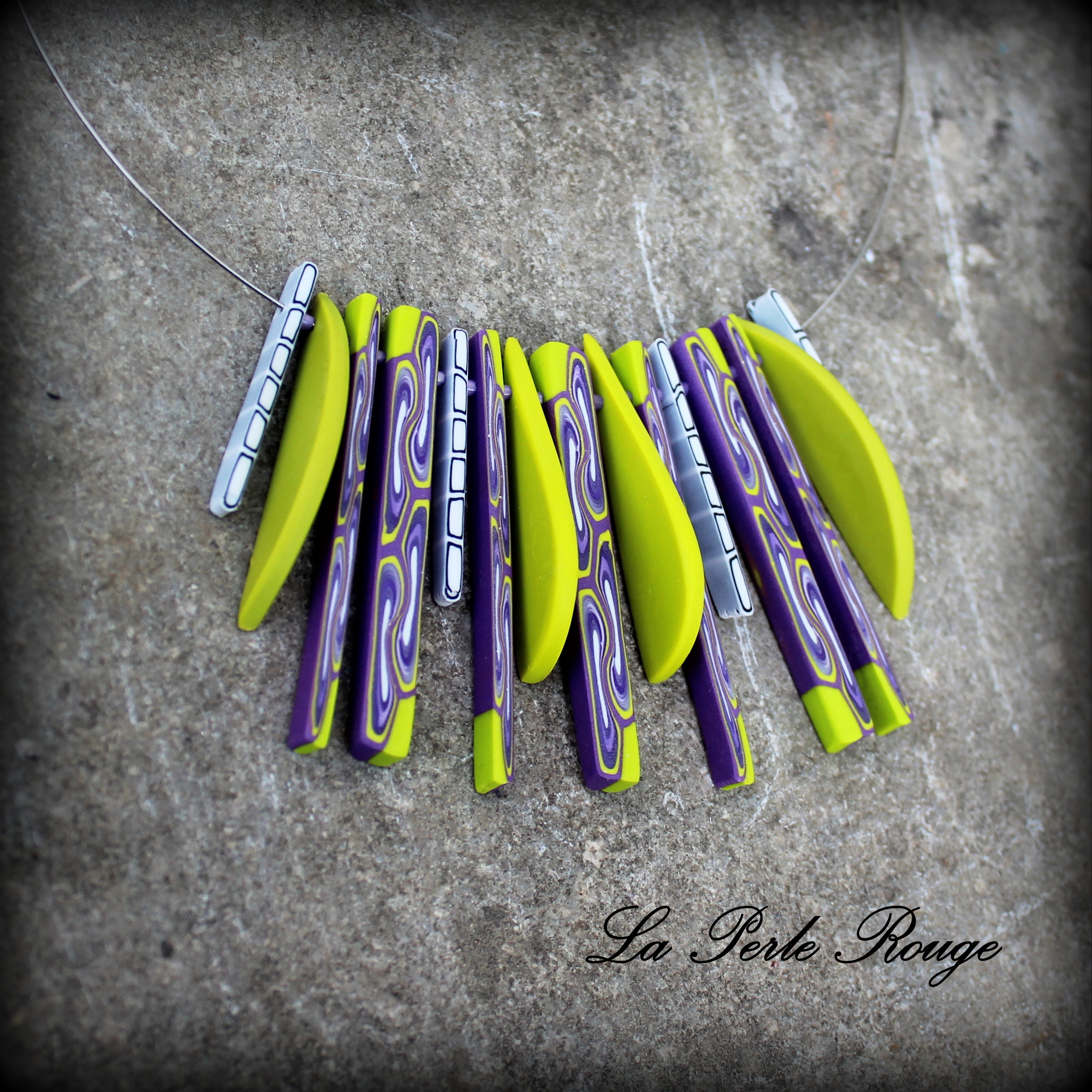 Photo 5 : Étirez également les deux autres dégradés et roulez les plaques sur elles-mêmes en plaçant la couleur au centre afin d’obtenir deux canes dégradées simples. (Oui, je sais, j’ai dit les DEUX plaques et il n’ y en a qu’une en photo, mais c’est bien DEUX canes dégradées qu’il faut préparer, la violette et la verte.)