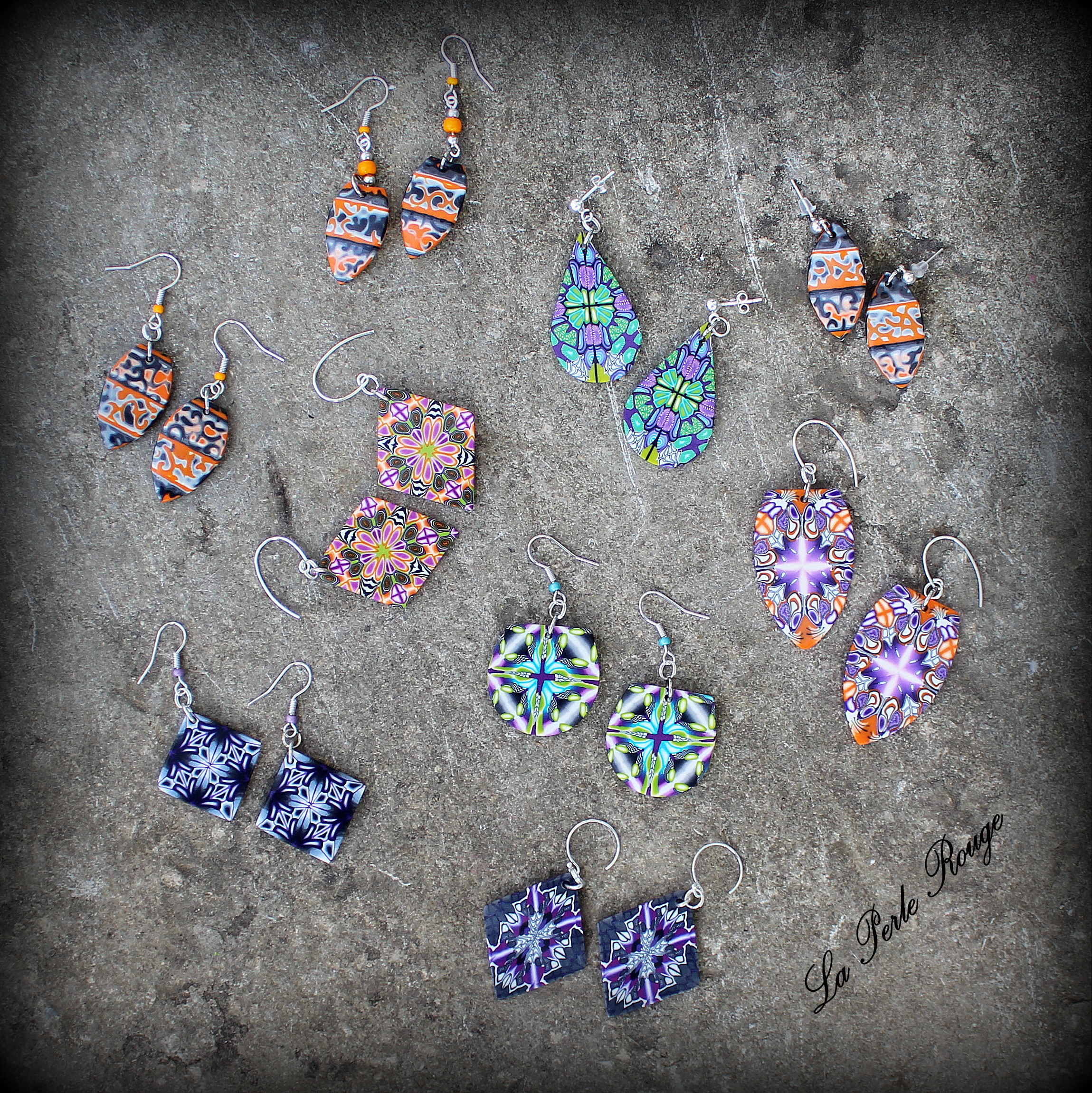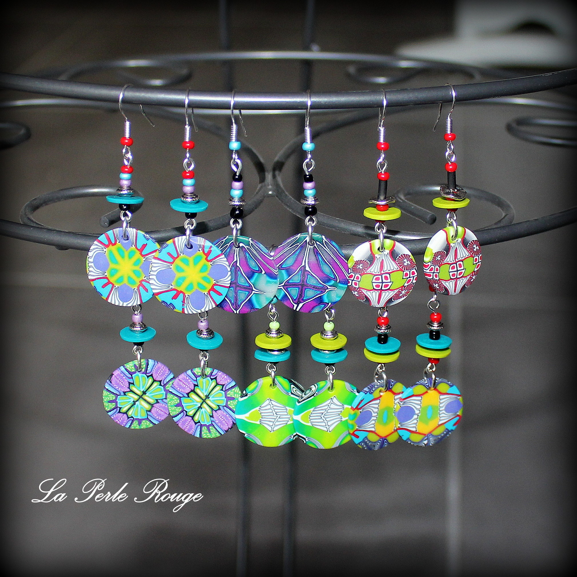 Remarque importante : ( Oui, je sais, j’avais dit que ce serait un tutoriel muet mais que voulez-vous… c’est plus fort que moi.) Seules les deux couleurs violettes (5 et 6) de la première photo sont des pâtes opaques, toutes les autres sont des pâtes translucides, dont certaines couleurs ont été obtenues par mélange de translucides. Les pâtes FIMO et CERNIT ont été toutes les deux utilisées pour cette cane. La Fimo, pour ses pigments et la Cernit pour sa malléabilité.
