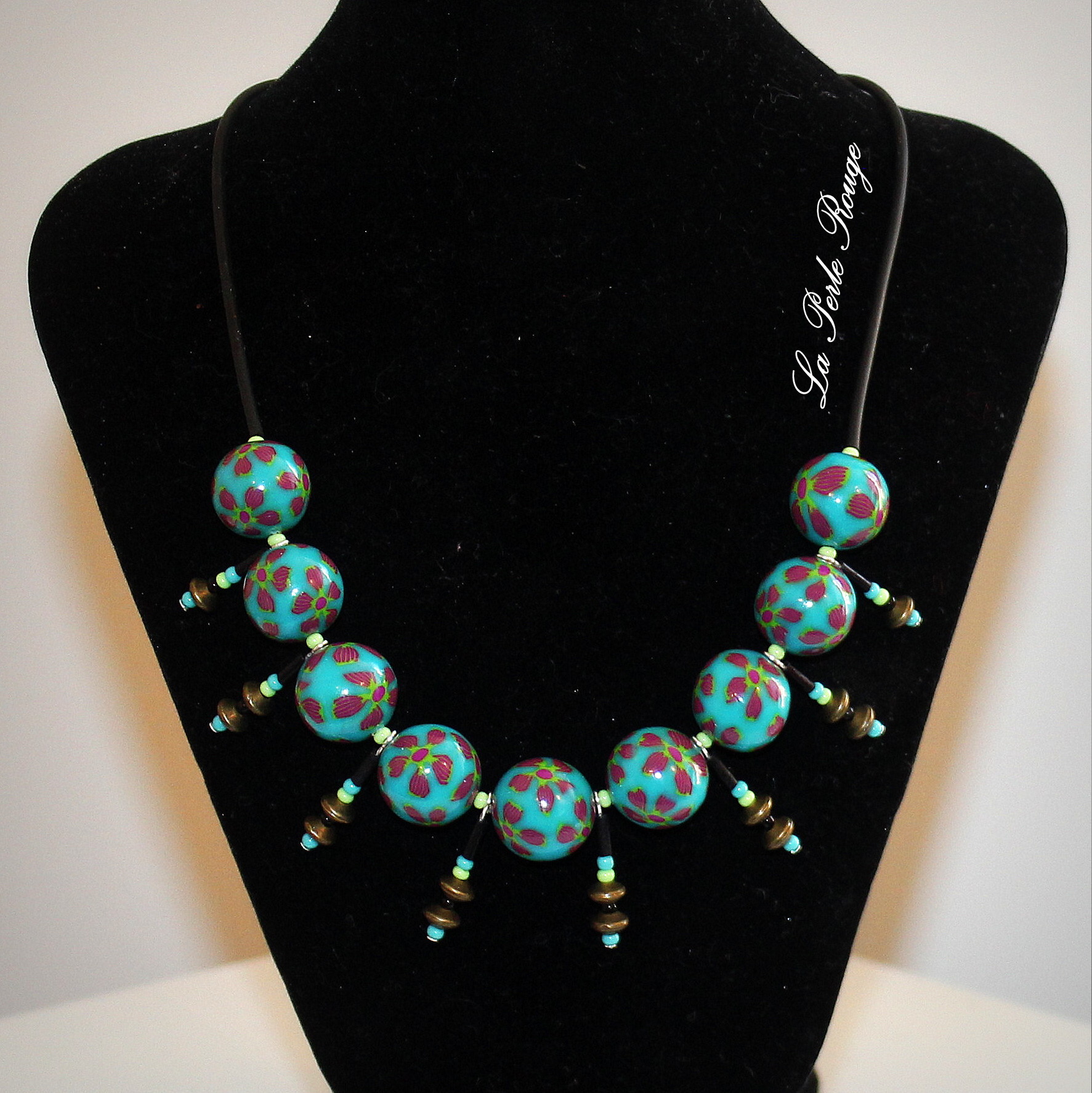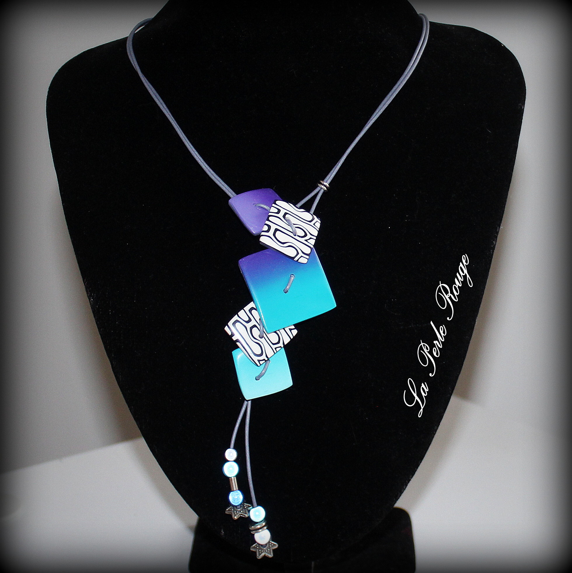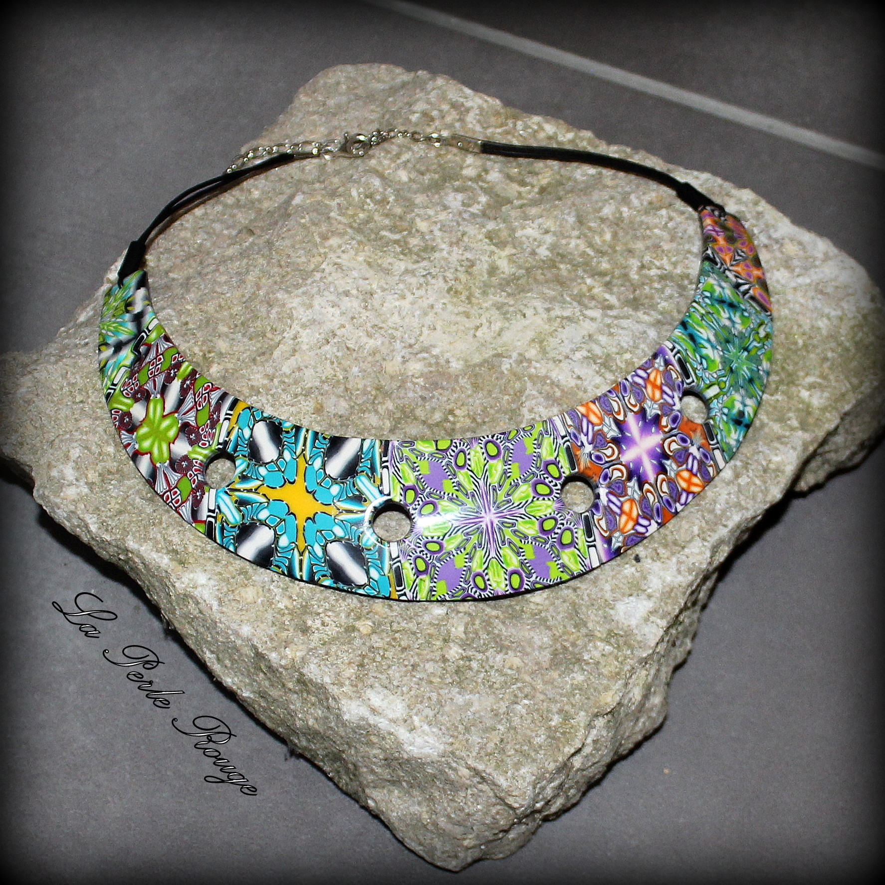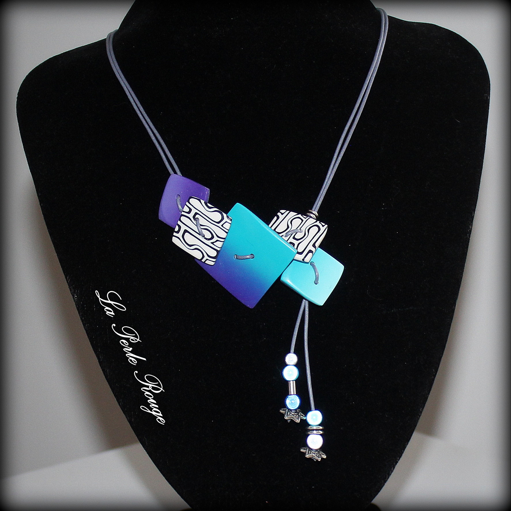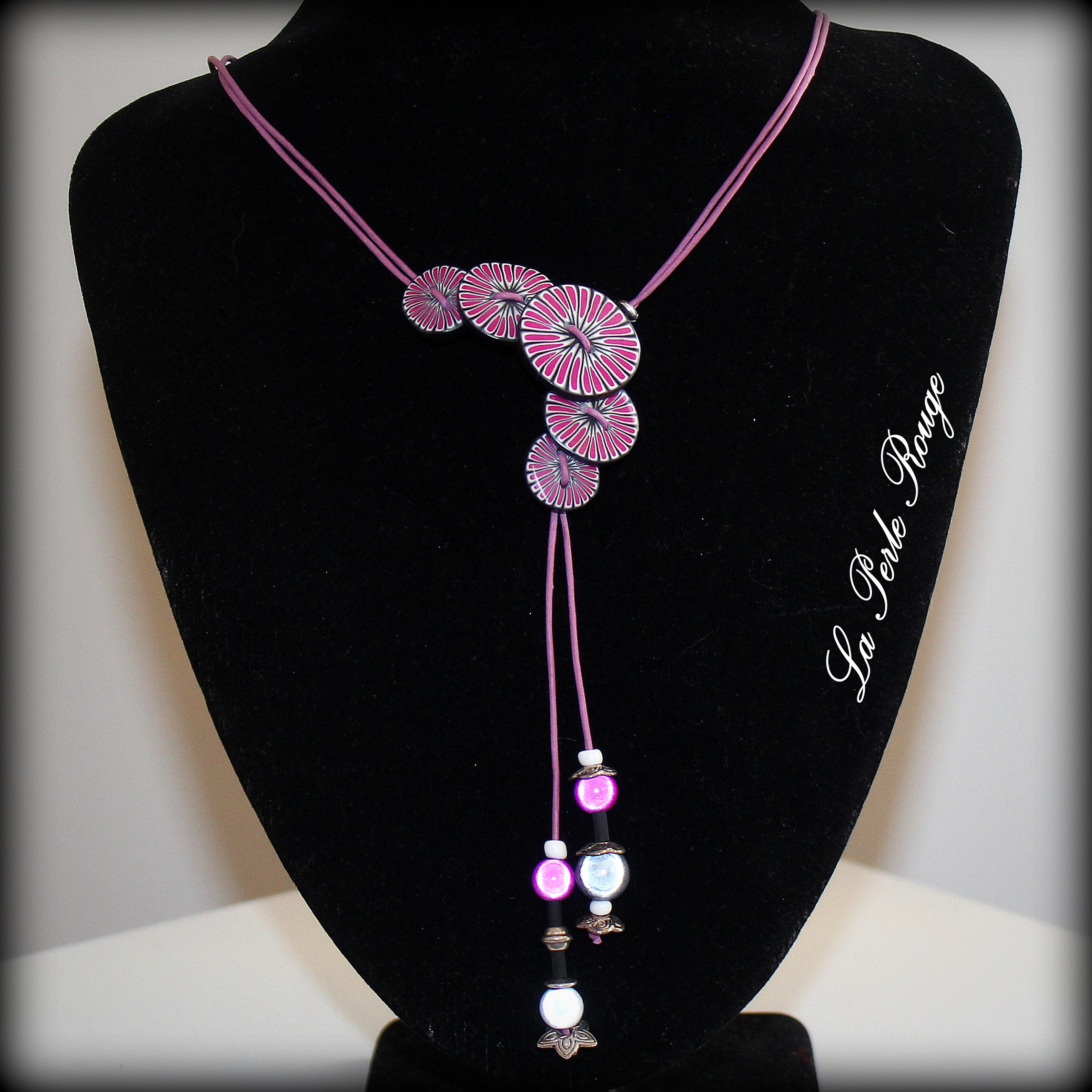 J’ai poursuivi mes essais de colliers ajustables avec les montages de boutons polymère. J’ai varié les diamètres, les formes et je crois que je commence à tenir quelque chose qui me plait réellement beaucoup.
