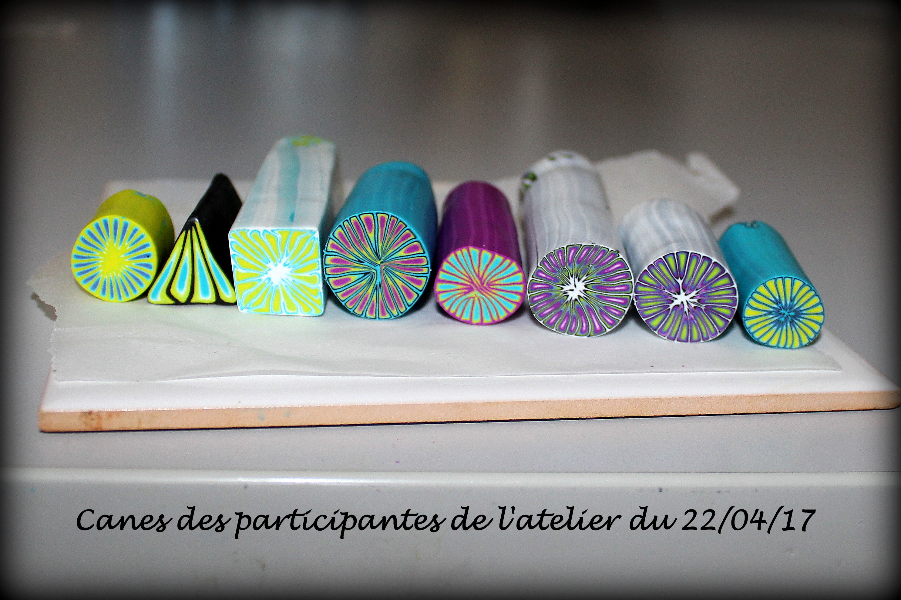Commençons tout d’abord par la dernière journée d’atelier de La Perle Rouge qui s’est déroulé samedi 22 (ouh… quel nez fin j’ai eu d’annuler celui du mois de mai !). Un comité de fimoteuses restreint pour une agréable journée autour de la cane iris :