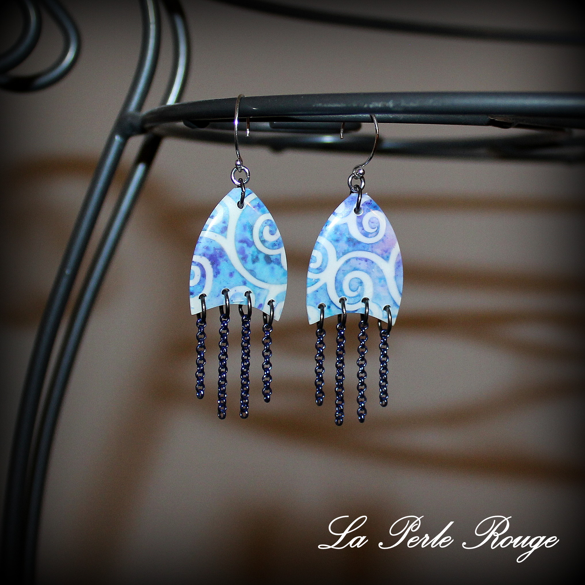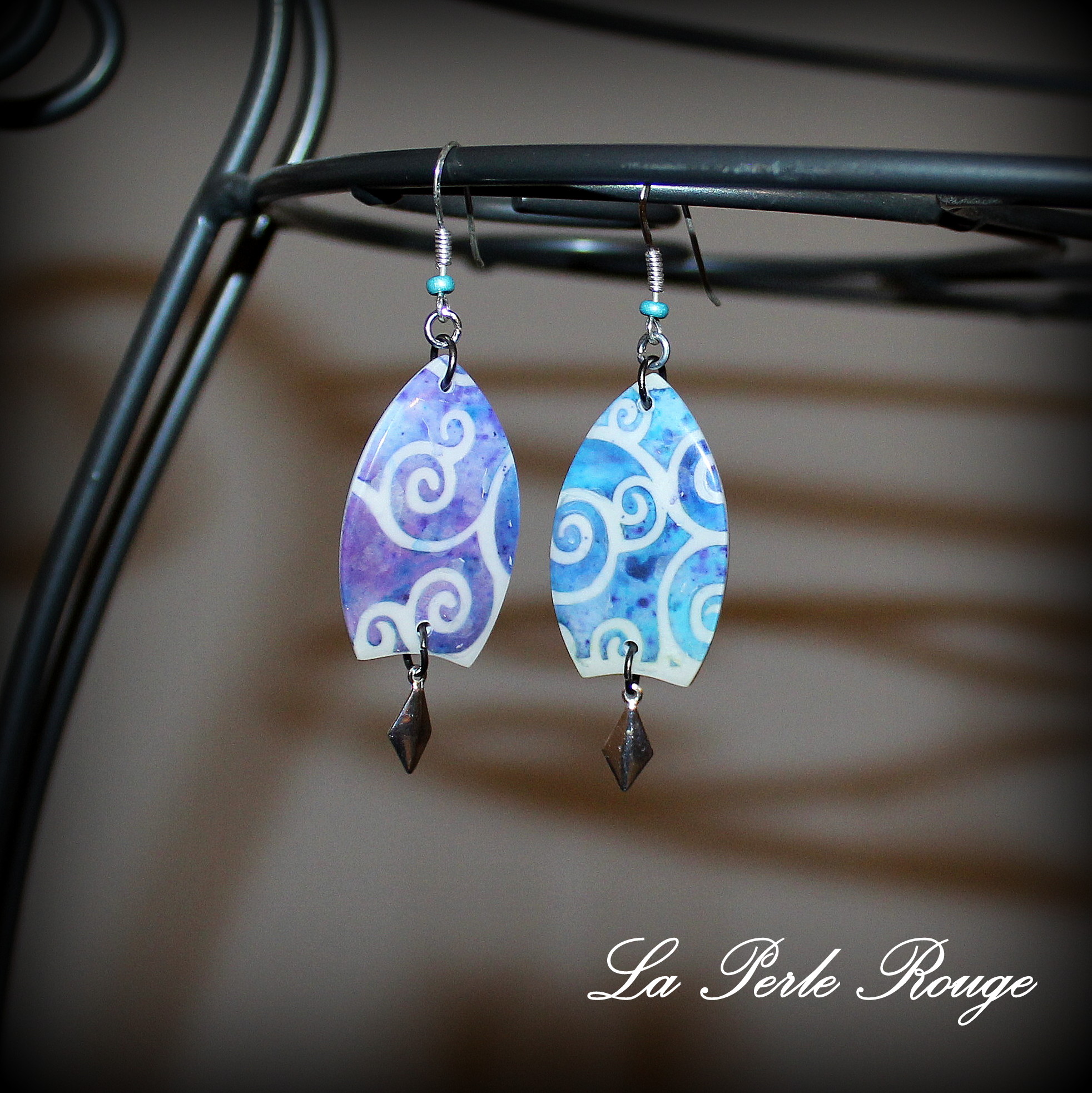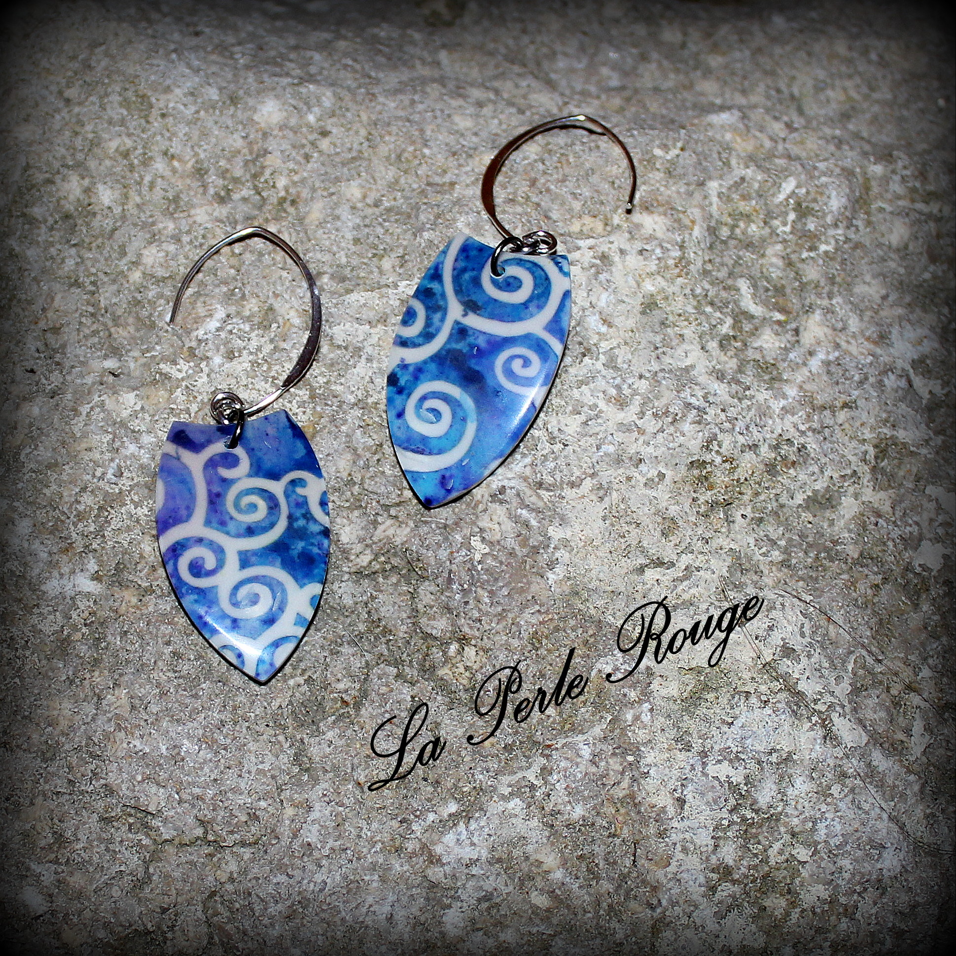 Cette dernière paire a été réalisée avec le pochoir à spirales d’Olga. Avec ces couleurs bleues et blanches, elles proposent un aspect « porcelaine » qui me plait toujours autant. C’est également le cas pour les suivantes :