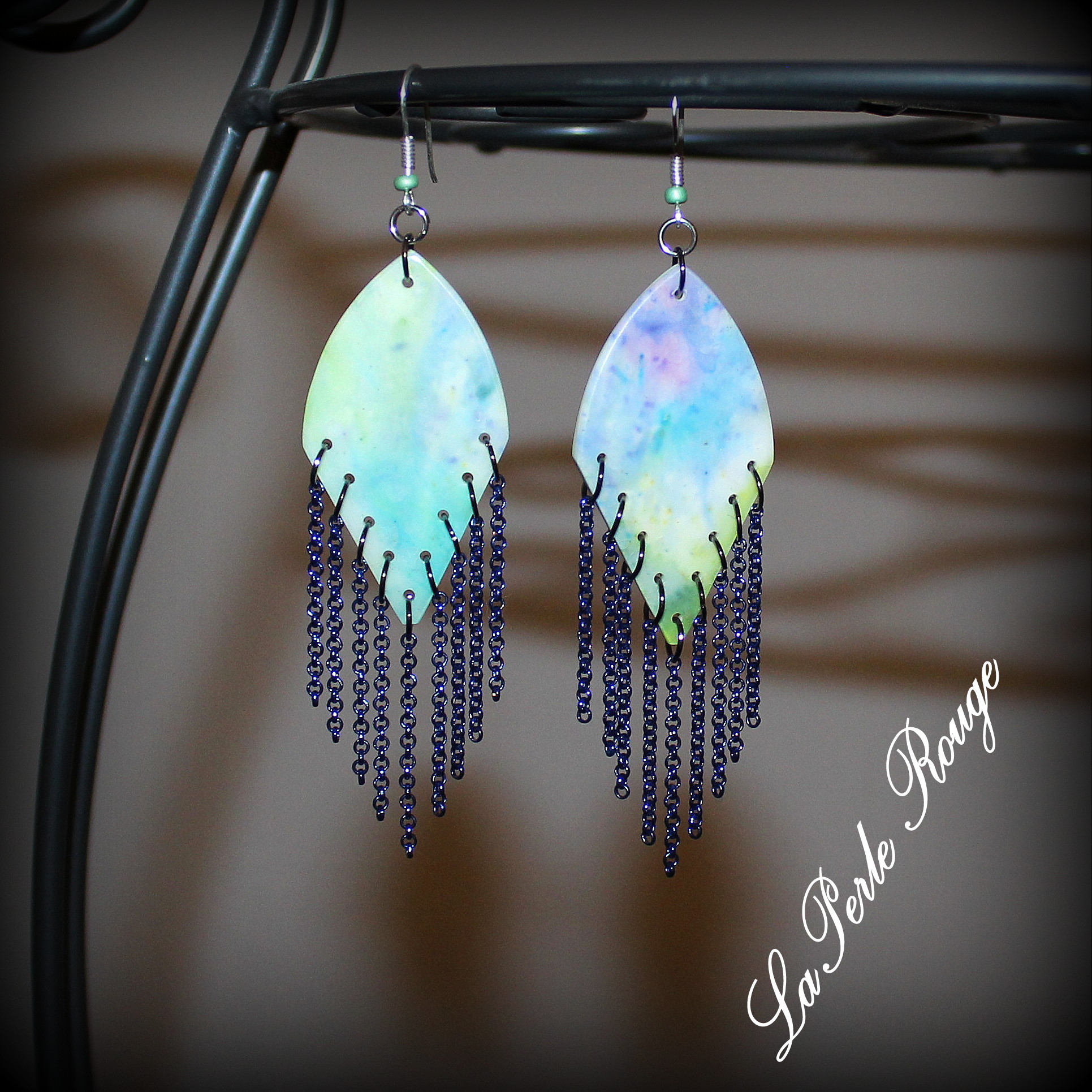 Les pièces qui viennent à présent s’inscrivent dans la continuité des boucles pétales que je vous ai présentées dans le dernier article. Toute une série aux différentes couleurs attend d’être poncée mais il faudra désormais s’armer de patience pour la voir achevée.