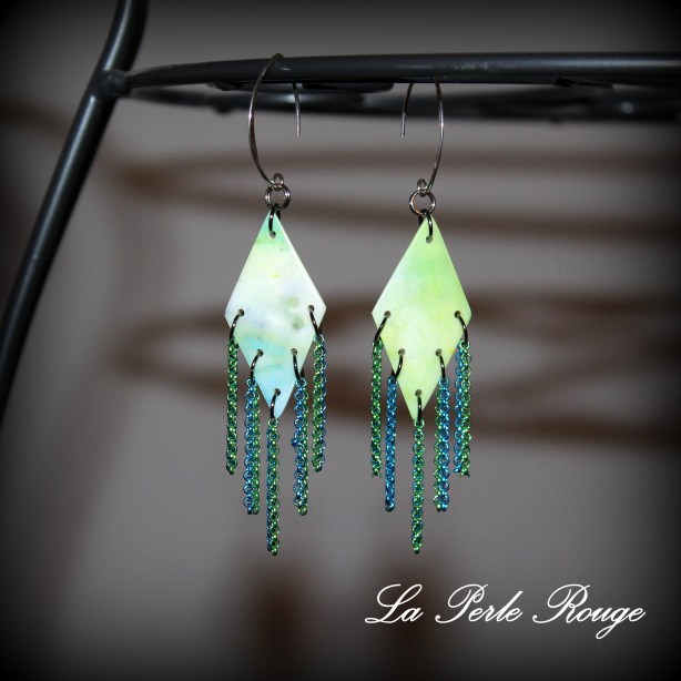 Lorsque les températures s’adoucissent et que les cous se dévoilent à nouveaux après leurs longs mois blottis sous les écharpes et les foulards, j’ai toujours une envie de fabriquer de longues boucles d’oreilles qui viendraient presque chatouiller le creux de l’épaule.