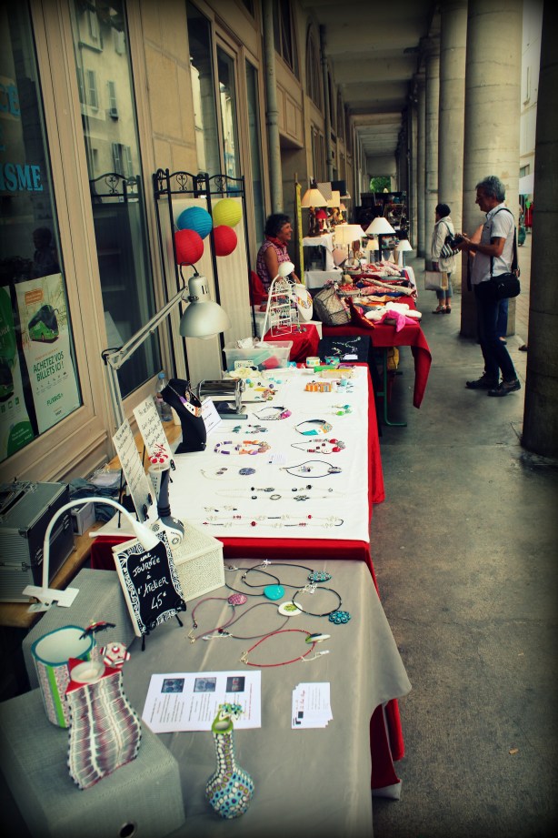 Je sais qu’un certain nombre d’entre vous se trouve également être des fabricants qui se prêtent au délicat jeu de la vente de leurs créations. Et lorsqu’on cherche à vendre les pièces nées du mariage entre notre petite caboche et nos deux mimines et qu’on ne possède pas ou qu’on ne connaît pas de boutique prête à recevoir notre collection, nous devons inévitablement passer par la case « marché ». Cela représente une façon importante de faire connaître notre petite entreprise localement, ce que ne permet pas une boutique en ligne. Pour celles et ceux qui débutent et pour celles et ceux qui ont l’intention de passer prochainement le pas de la confrontation directe au monde de la vente sur stand, cet article pourrait vous intéresser. Pour les autres, et bien… ça vous passionnera sans doute un peu moins mais cela vous amusera tout de même puisque, comme à mon habitude, je ne manquerai pas de vous faire part de mes anecdotiques expériences (c’est pas un peu redondant comme formule, ça ?).