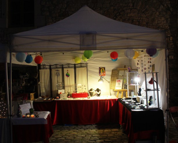 Tout d’abord, êtes-vous seulement équipé ? (chapiteau, tables et nappes, supports de présentation, affichage de prix, éclairage, décoration… le tout le plus facilement transportable possible… un casse-tête qui se résout avec le temps.)
