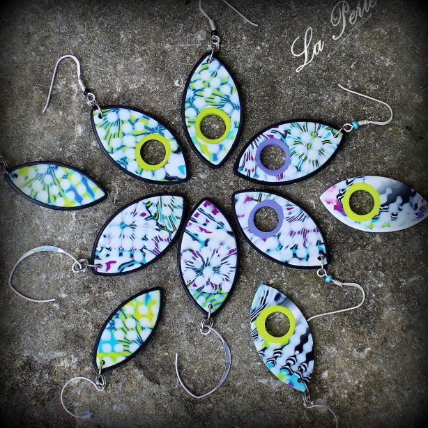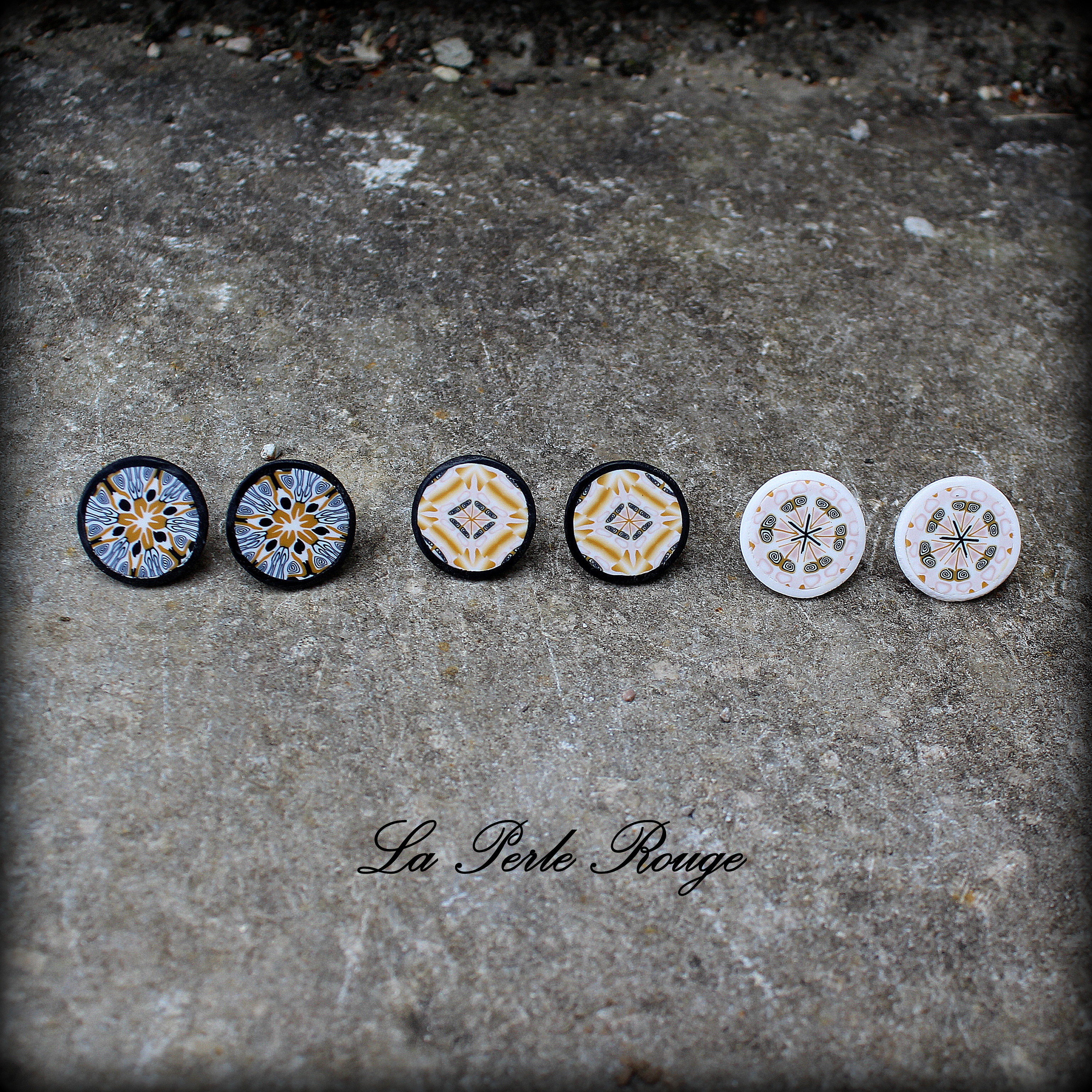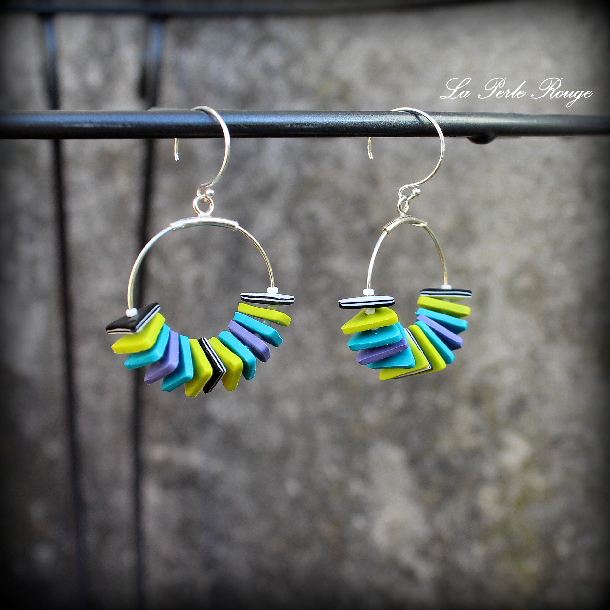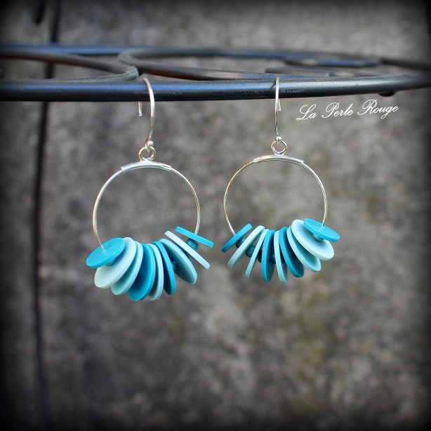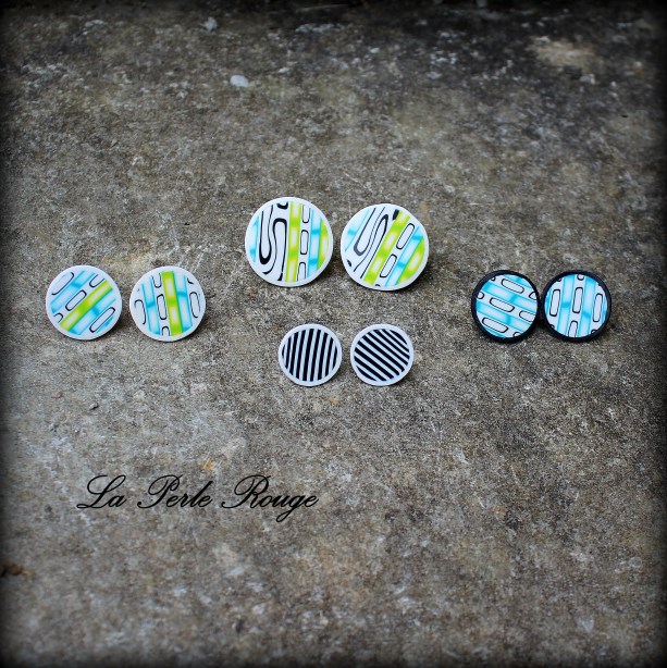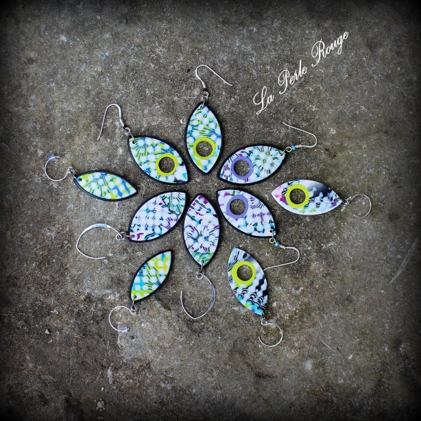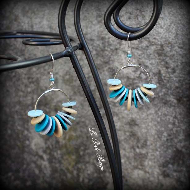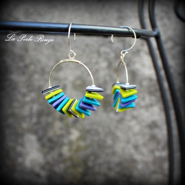 Je ne suis pas parvenue à fabriquer beaucoup cette semaine et ce genre de pièce est assez chronophage, c’est pourquoi je n’ai que quelques boucles d’oreilles à vous présenter. Elles ont toutefois le mérite d’être de nouvelles créations et leur concept tout simple me plait énormément.