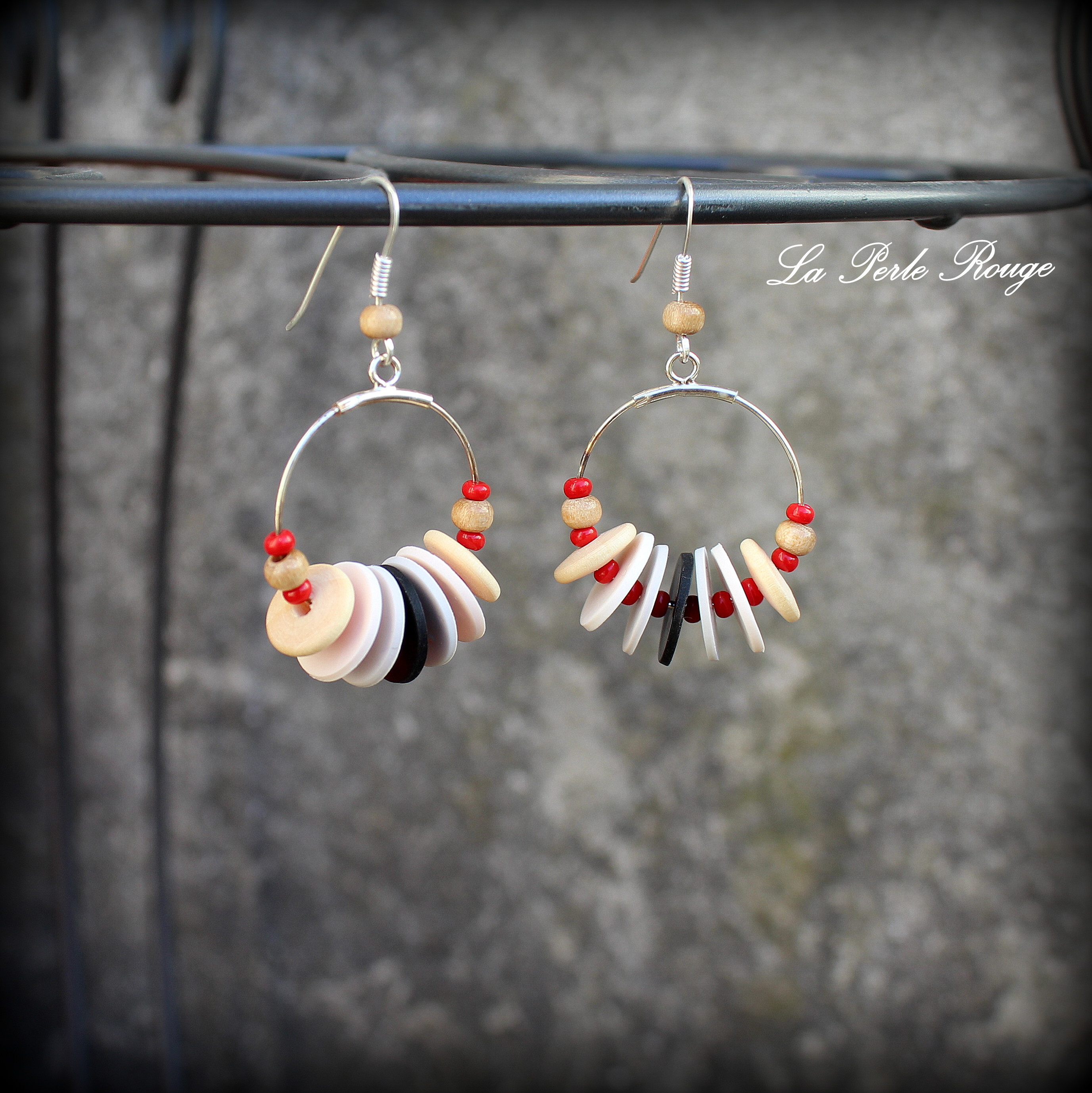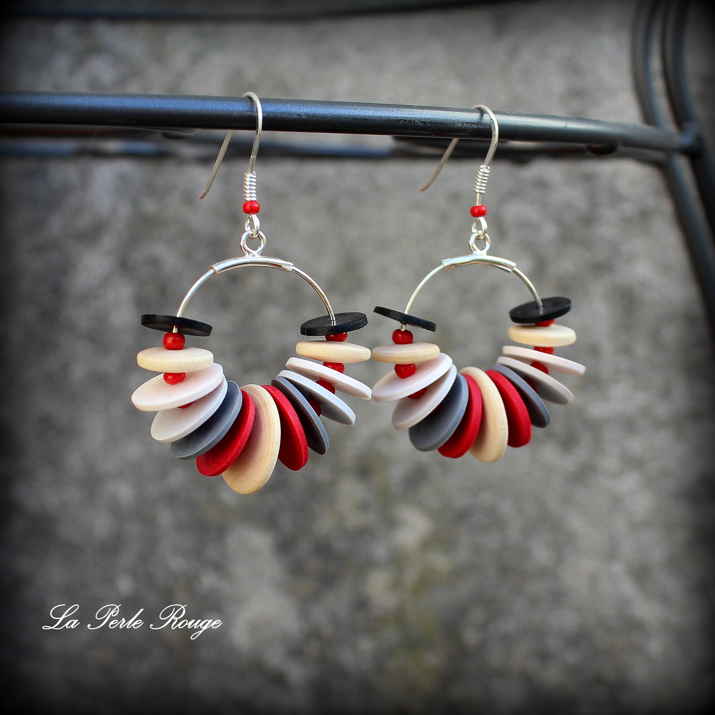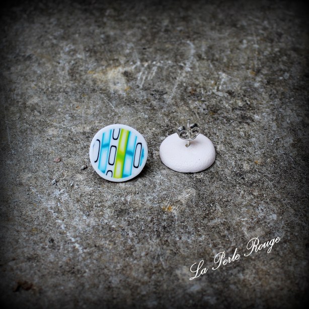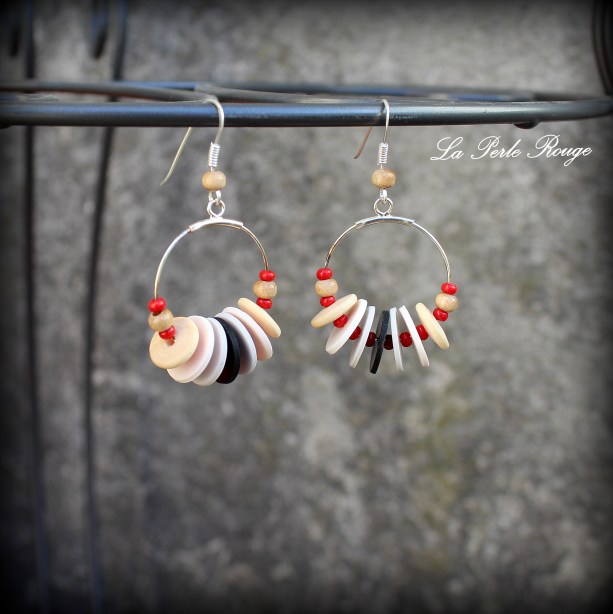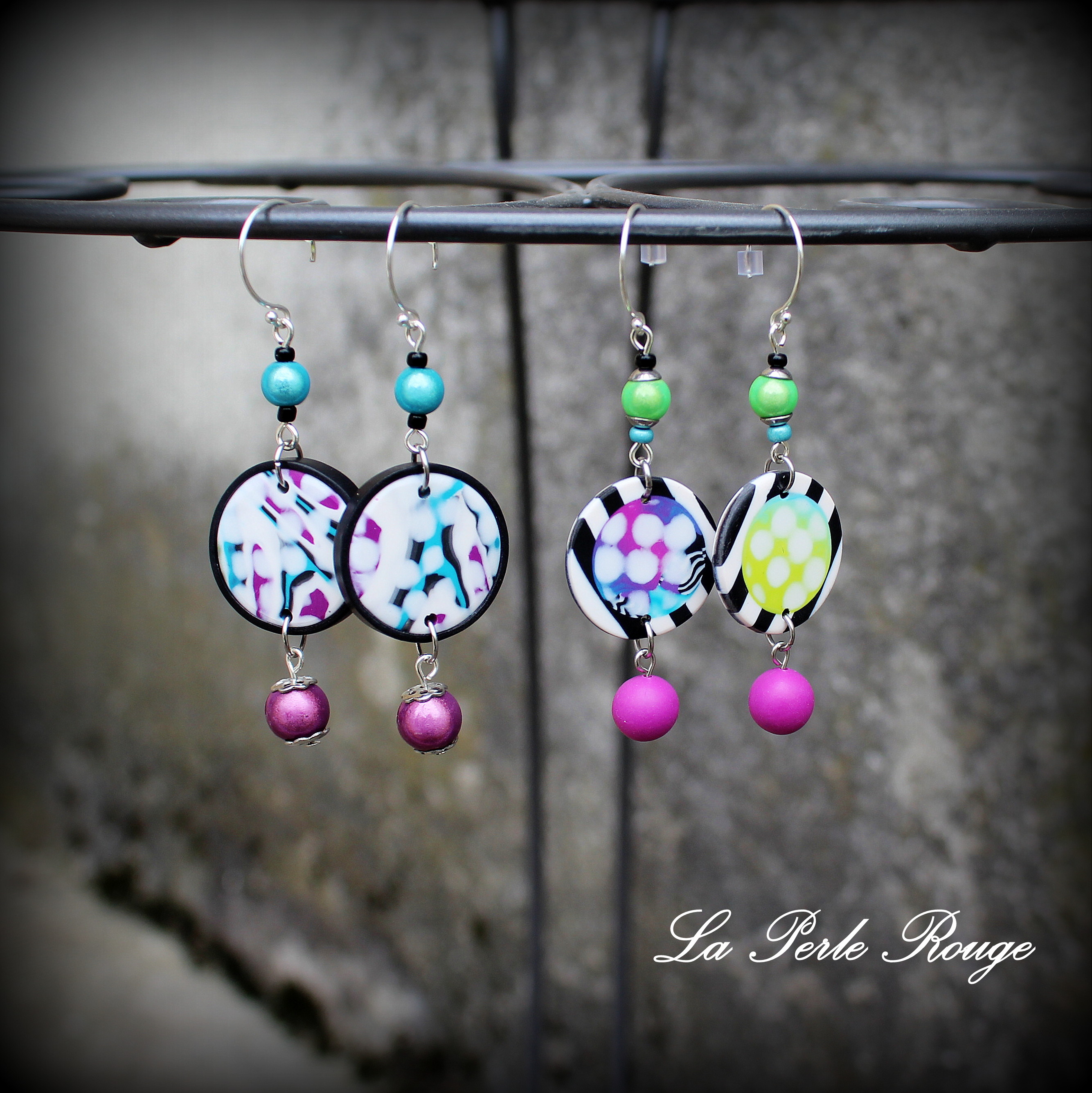Je ne suis pas parvenue à fabriquer beaucoup cette semaine et ce genre de pièce est assez chronophage, c’est pourquoi je n’ai que quelques boucles d’oreilles à vous présenter. Elles ont toutefois le mérite d’être de nouvelles créations et leur concept tout simple me plait énormément.