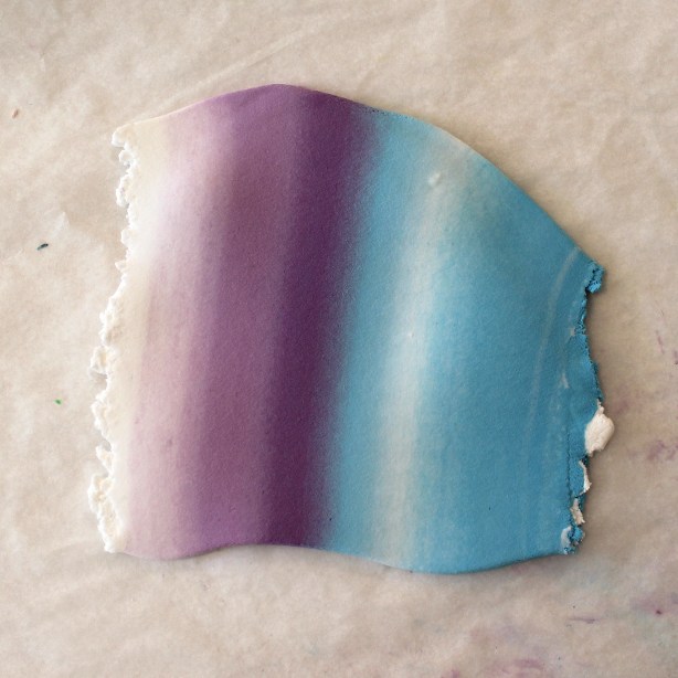 En tant que polymériste, mon premier désir était, bien entendu de tenter les canes rapides de base. Je me suis donc lancée et en essayant d’aller le plus rapidement possible, j’ai préparé une cane dégradée et une cane iris. Euh… autant vous le dire tout de suite, cette pâte n’est absolument pas prévue pour !