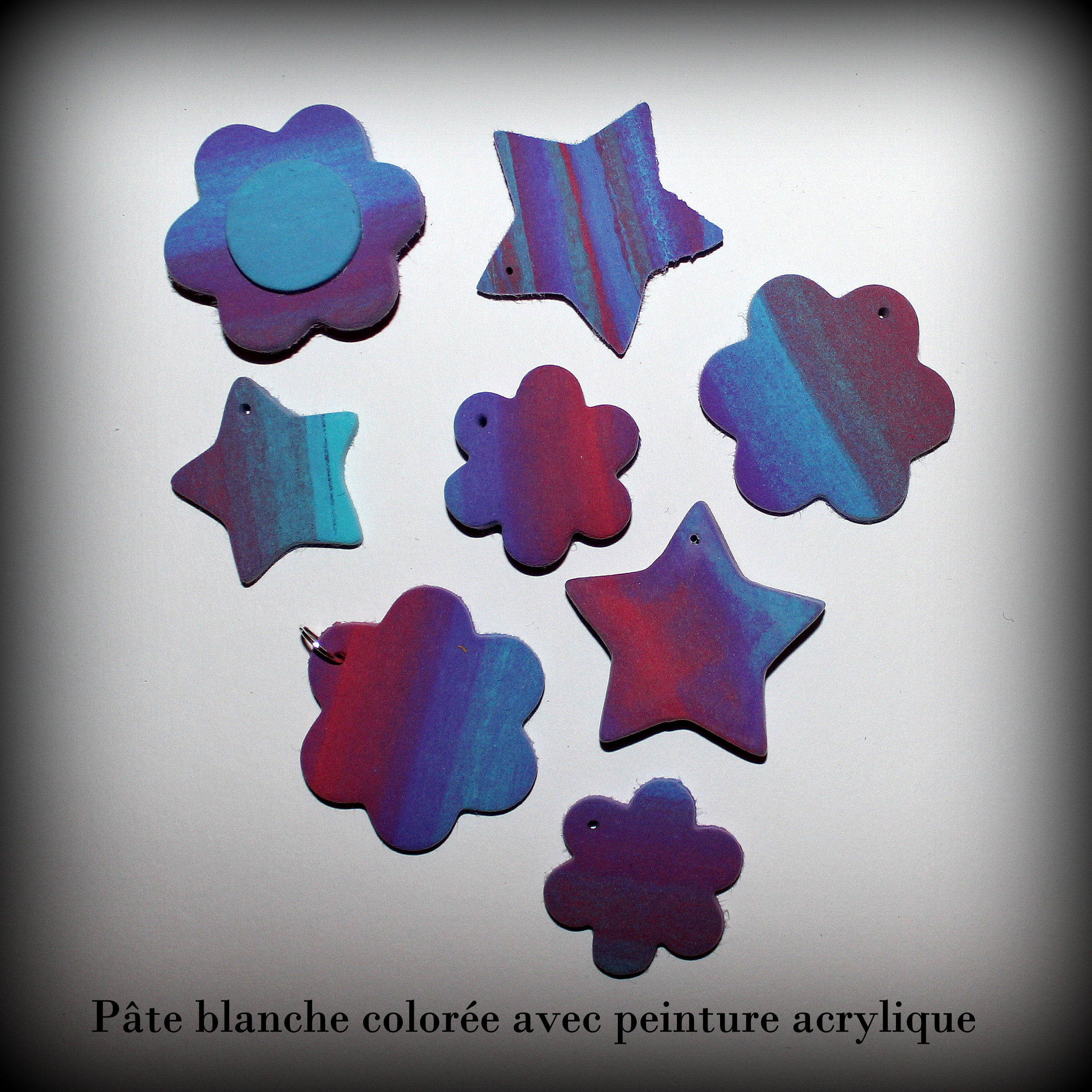 La peinture acrylique fonctionne à merveille. De plus, l’eau qu’elle contient ralentit un tantinet la vitesse de séchage pour une manipulation légèrement prolongée de la pâte.