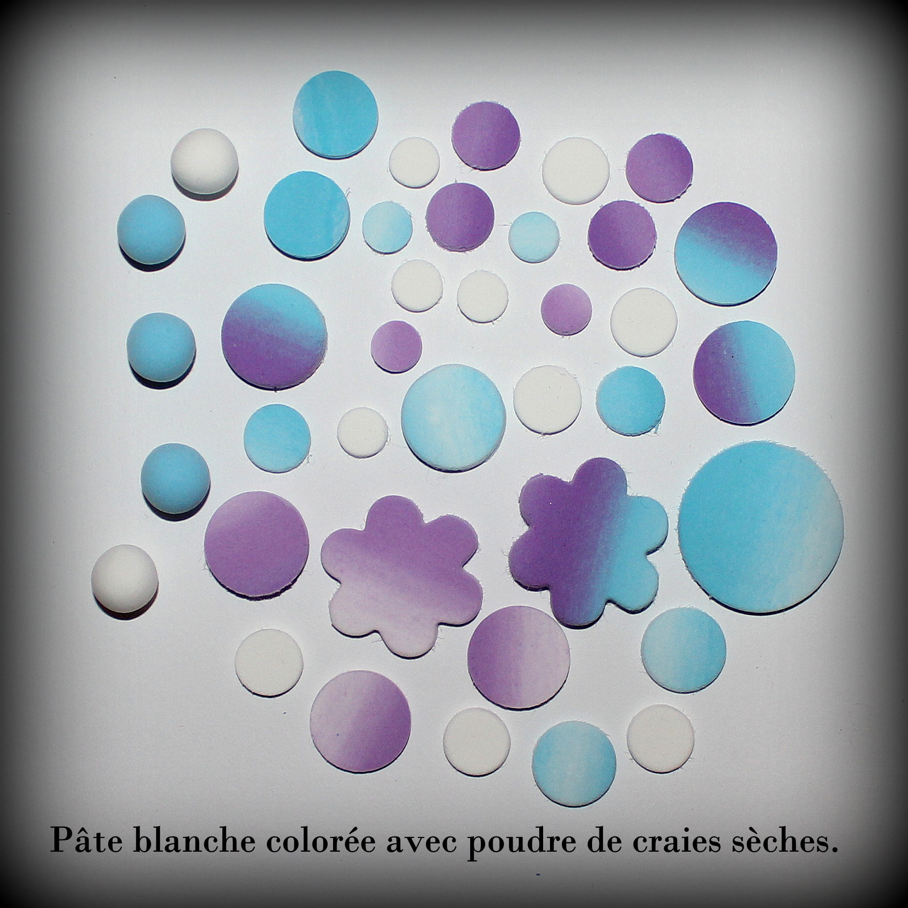 Après cette première expérience pleine de questions, de « Oooh ! » et de « Aaaah, d’accord », j’ai réfléchi d’avantage aux couleurs et au problème de me fournir et d’ouvrir de nombreux paquets différents lors des ateliers sous peine de voir la grande majorité de cette matière sécher ensuite pour partir à la poubelle. L’idéal est donc de se fournir en blanc de manière importante et de fabriquer ses propres teintes.