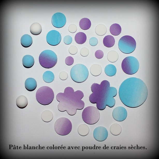 Pour commencer, j’ai mélangé mes pâtes et j’ai cherché à réaliser un dégradé avec les tons intermédiaires préparés et cela marche très bien :
