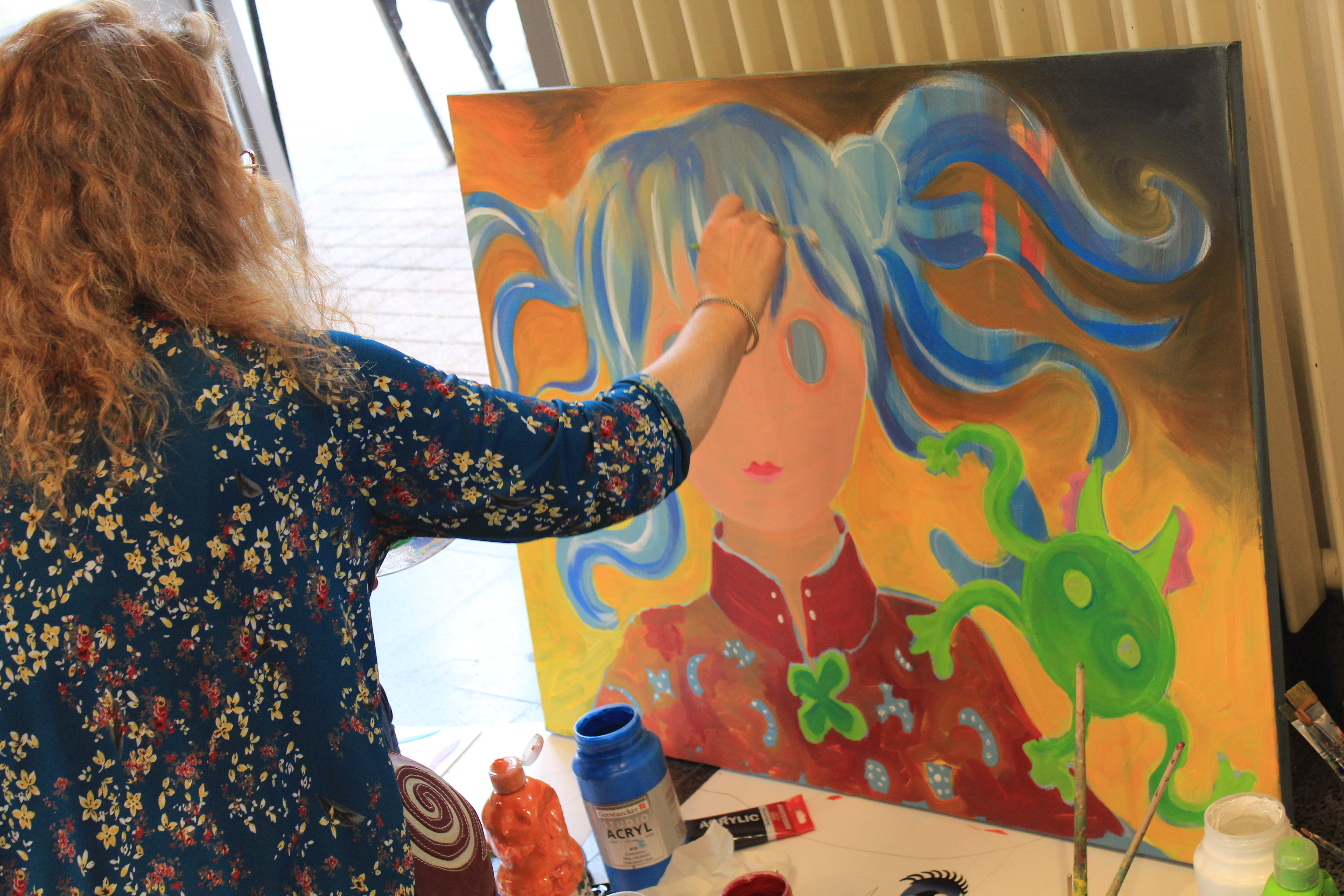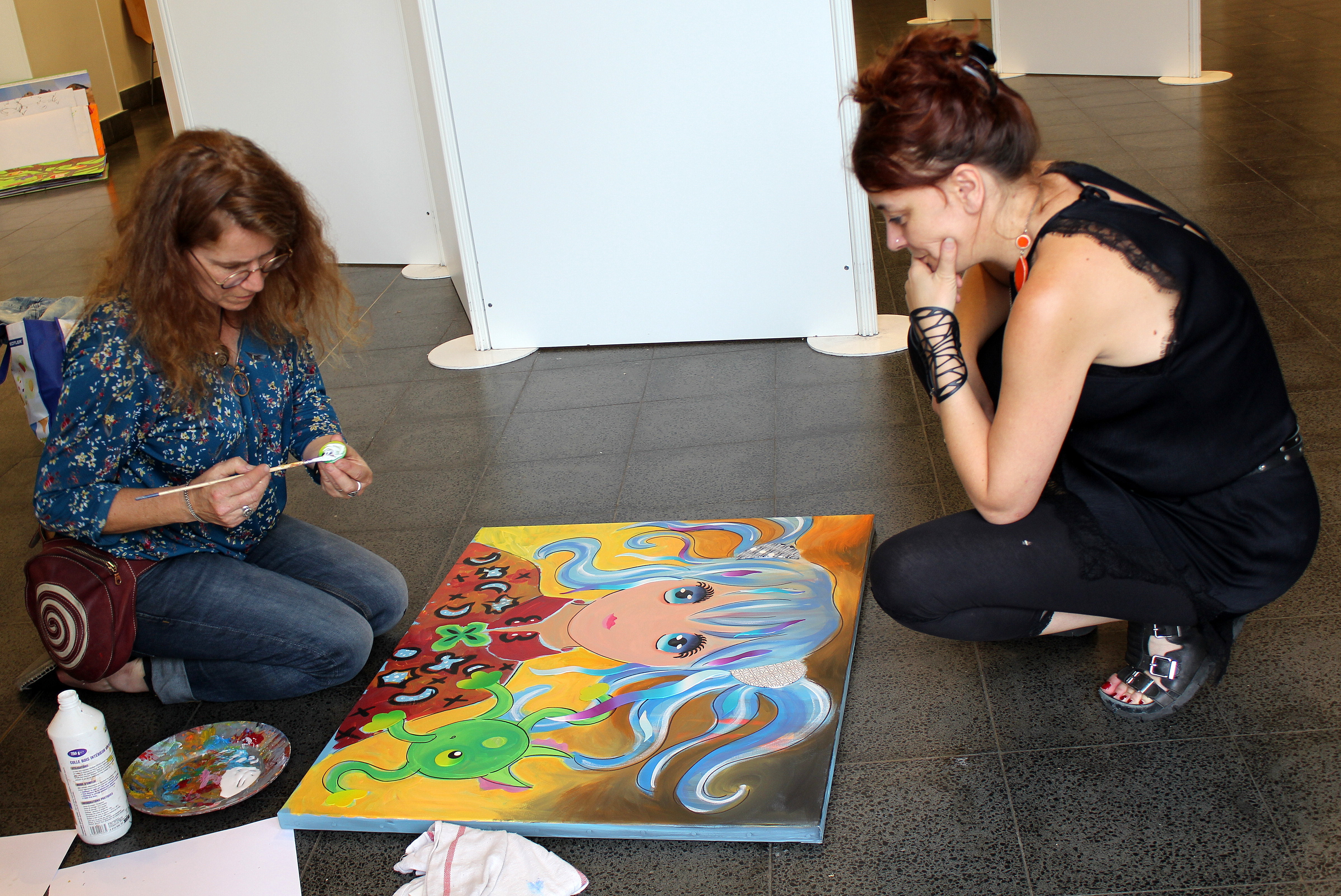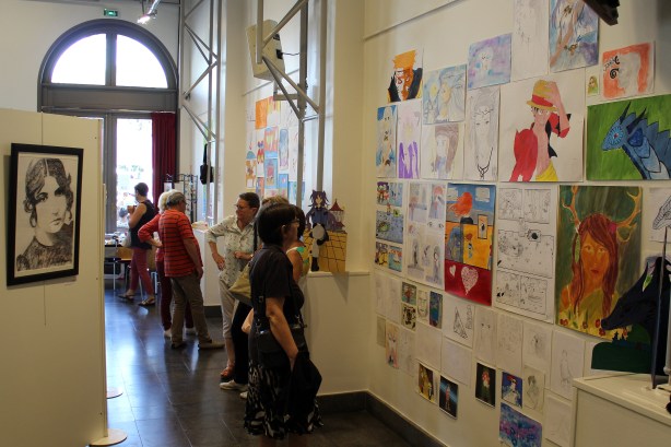 Tout d’abord, ce furent deux jours superbes ! Tant au niveau de la météo nouvellement estivale que de l’effervescence qui a régné autour de nous. Alors que le grand hall du CARCOM exposait les créations picturales que les élèves d’Urwana Debouclans ont réalisé durant toute l’année, colorant par là, l’intégralité des murs et des portants mis à notre disposition, la rue de Ronde voisine accueillait, quant à elle toute une série de peintres amateurs venus présenter leur approche personnelle de la toile.