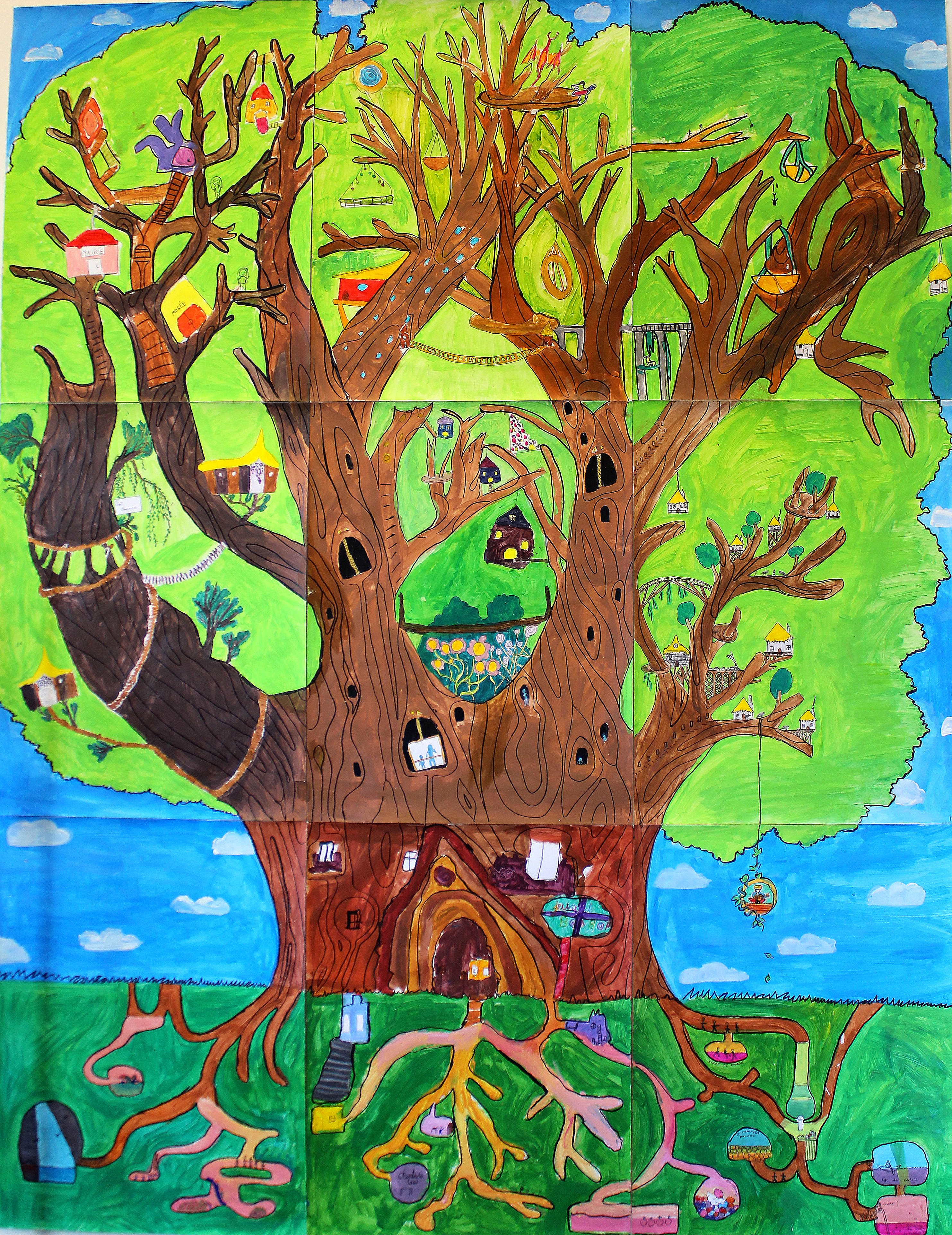 Pour ma part, j’ai particulièrement aimé les murs des plus jeunes. Entre les œuvres des enfants et des adolescents se créait un dialogue de rythmes et de couleurs qui m’a, comme vous le verrez par la suite, largement inspiré.