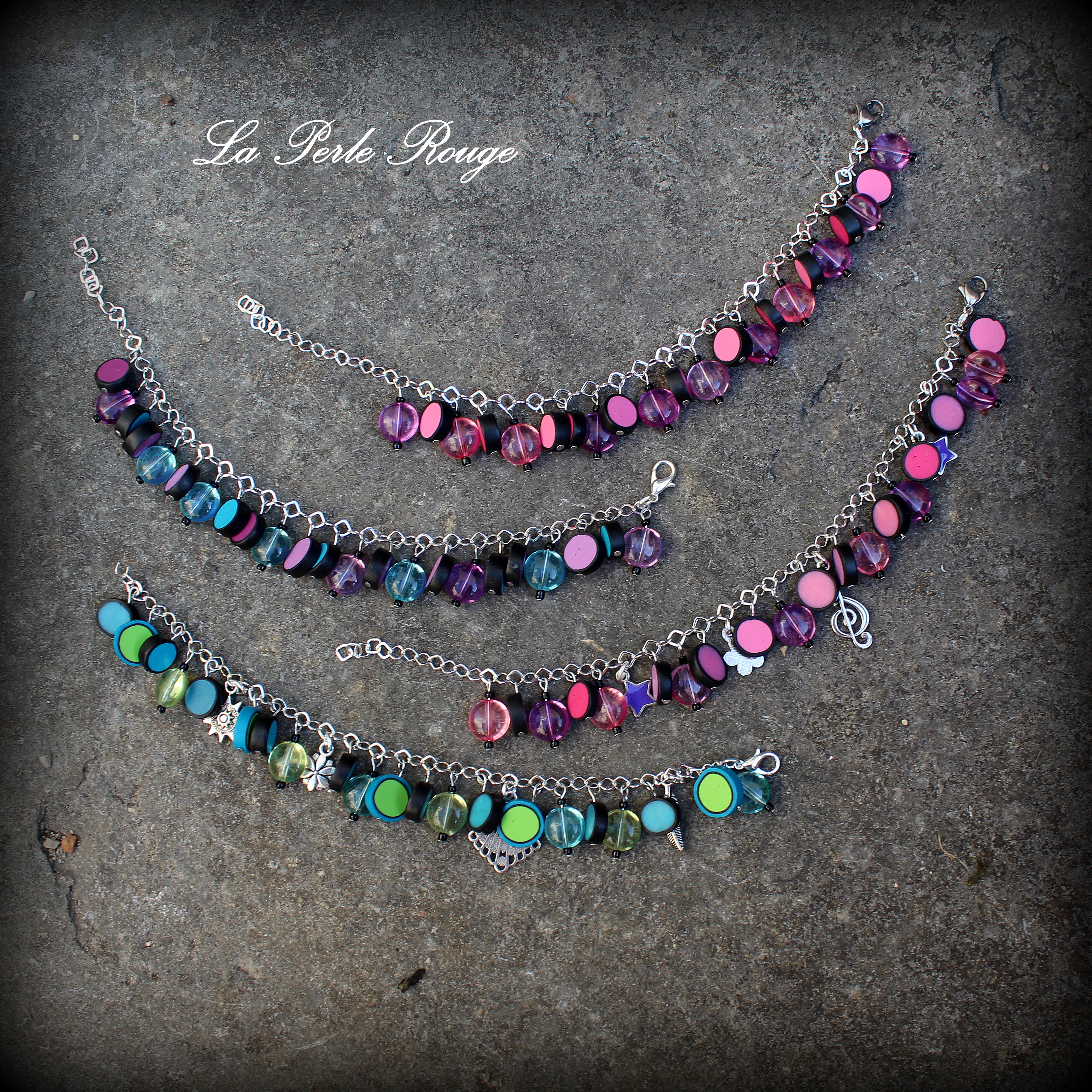 Cinq colliers sans fermoirs grâce au très pratique fil mémoire :