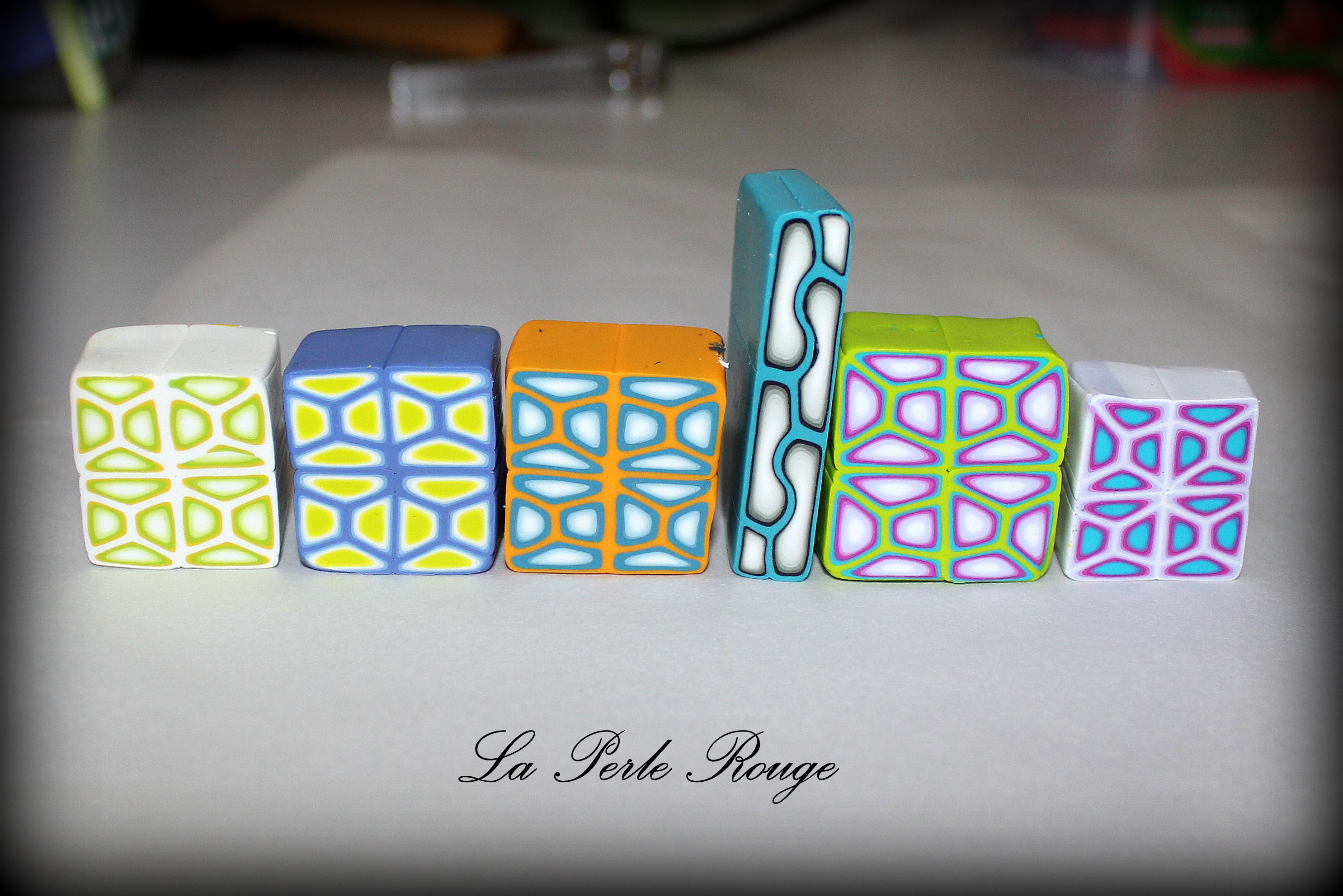 Bref, du temps, j’en avais, une machine et la pâte qui va avec, j’en avais aussi. J’ai donc déroulé mes habituelles étapes de présentation du matériau ; plaques dégradées, canes débutantes puis assemblage général pour une cane plus complexe :